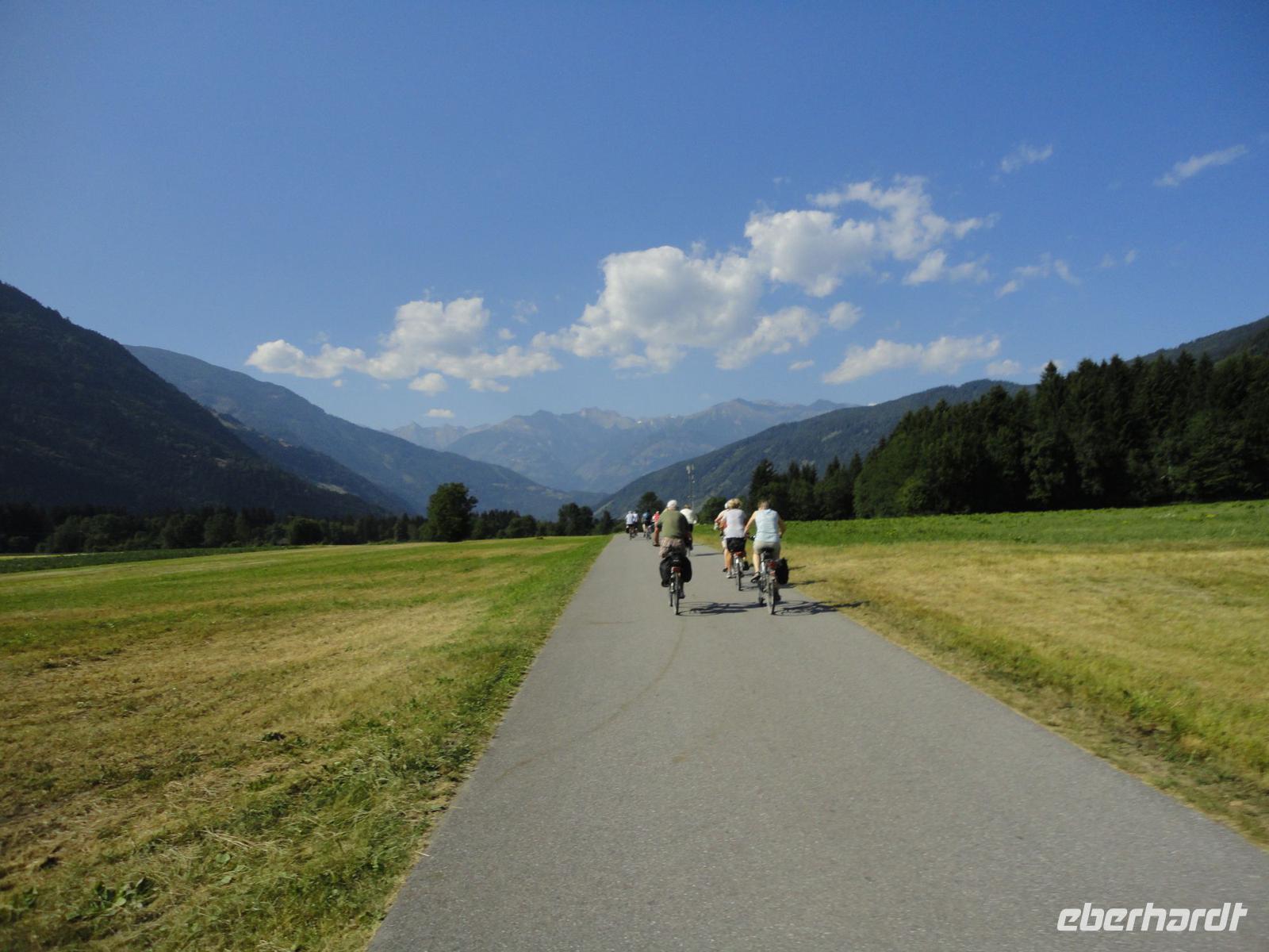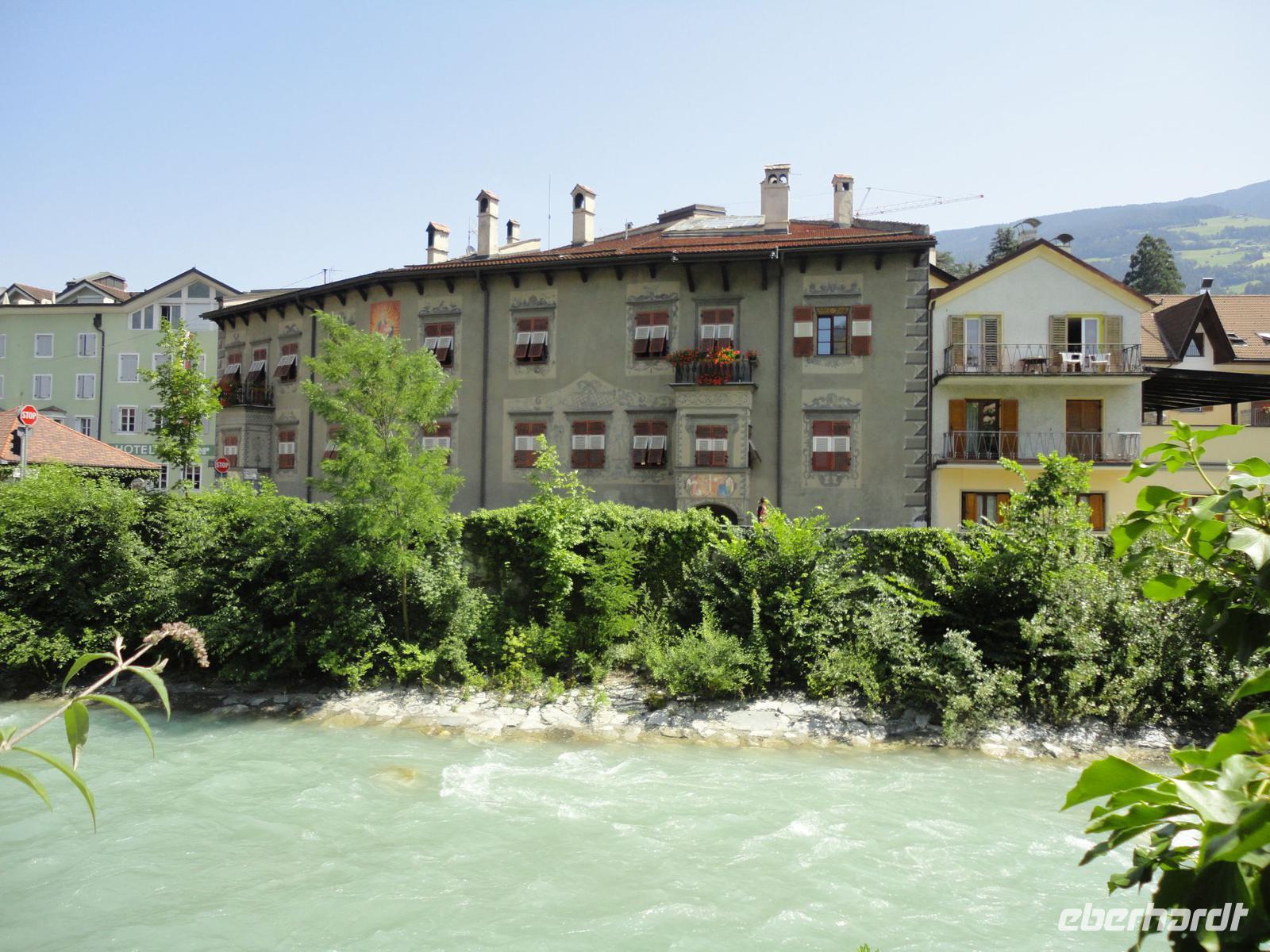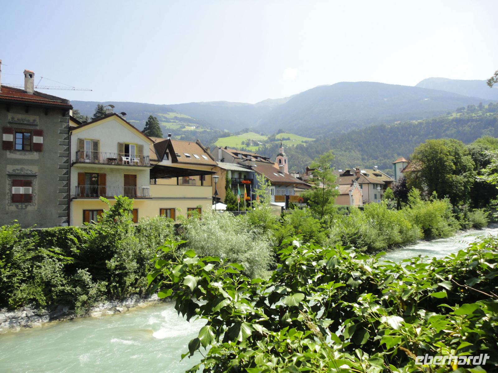 Die Strecke zwischen Mühlbach und Bruneck entlang der Rienz ist wirklich atemberaubend schön, so dass uns auch das starke Gegenradleraufkommen nicht weiter störte. Hie und Da legten wir kurze Verschnauf- und Trinkpäuschen ein und erfrischten uns an einem der zahlreichen Brunnen mit herrlich frischen Wasser. Gegen 17:15 Uhr hatten wir unsere ersten 25 Radkilometer und einen schönen ersten Urlaubstag hinter uns gebracht. Die Freizeit bis zum Abendessen haben wir individuell zum Bummeln, Entspannen, Duschen und Durst löschen genutzt. Auch an diesem Abend wurden wir mit den leckersten Speisen verwöhnt - ein wirklicher Gaumenschmaus.