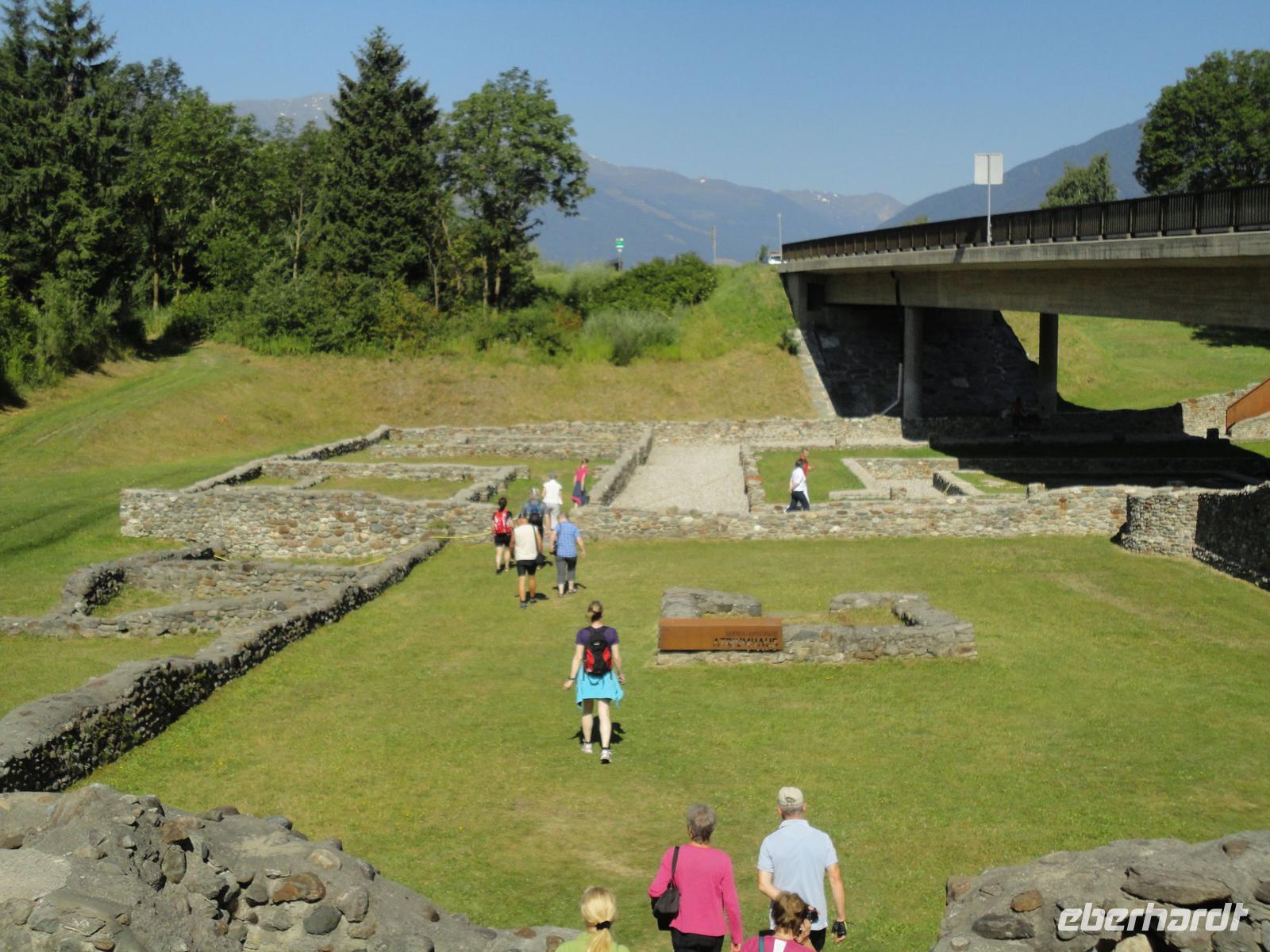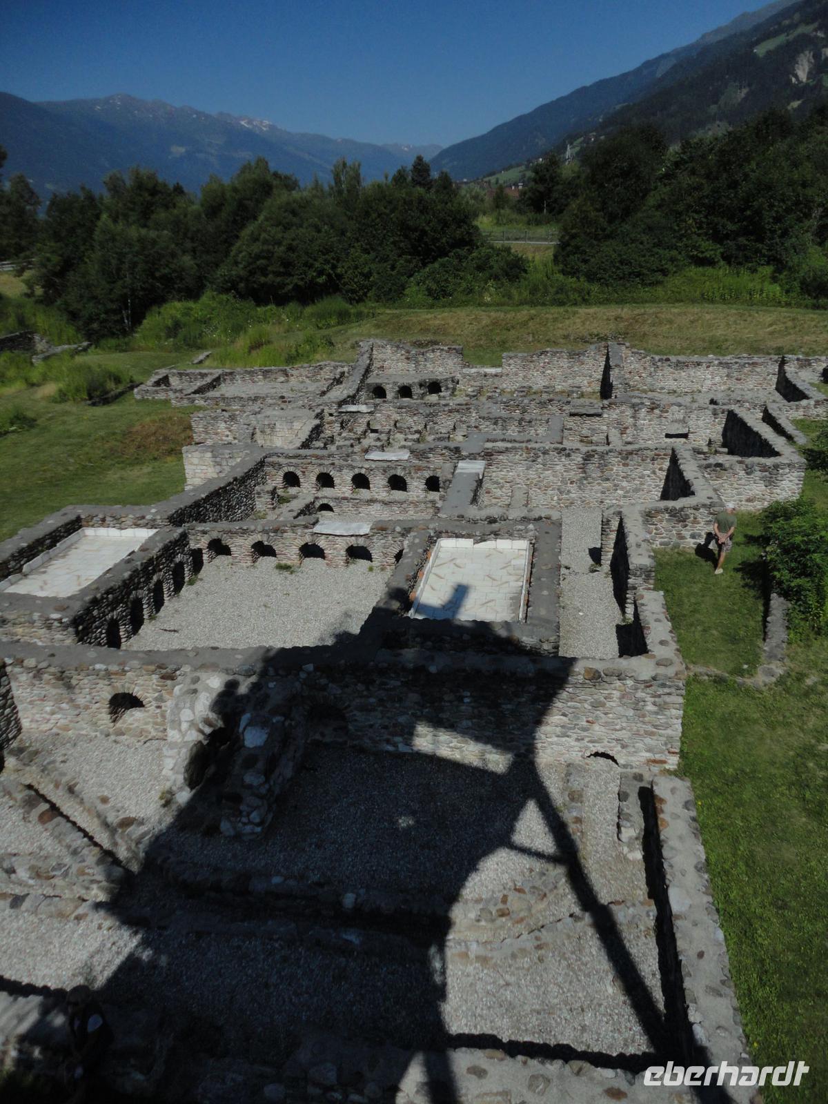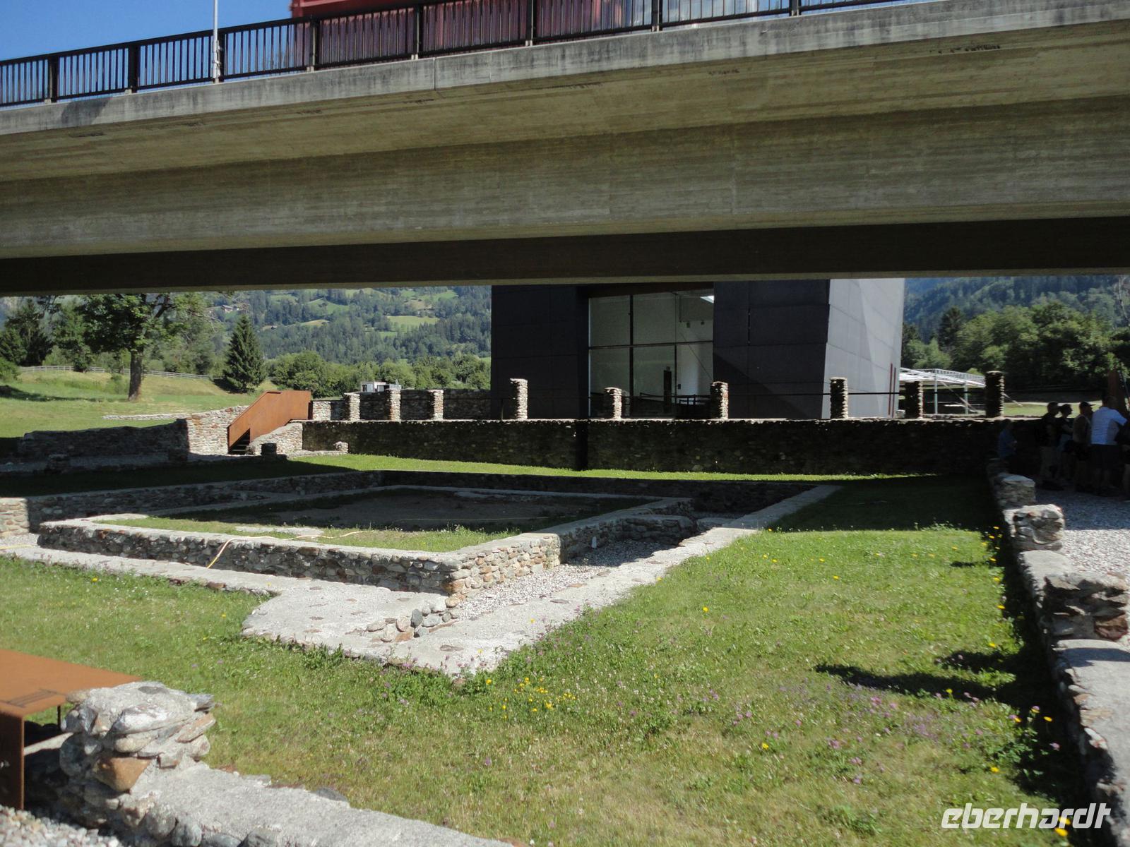 Den vierten Tag unseres Radausfluges begannen wir mit der Besichtigung der Ausgrabungsstätte Aguntum, die noch heute von einer ehemaligen römischen Siedlung zeugt. Nicht nur der animierte Kurzfilm und die geführte Tour mit dem Museumschef, sondern auch die live Ausgrabungen der Archäologen faszinierten uns. Nach knapp 2 Stunden Aufenthalt starteten wir unsere Tour de Drau. Allen war die Motivation und Dynamik anzumerken, die vor uns liegenden 80 km bis Villach zurückzulegen, ohne aufzugeben. Damit wir dieses Ziel auch erreichen konnten, stärkten wir uns zunächst in der Kneippanlage nahe Raßnig und steuerten dann einen tollen Rasthof in Berg bei Feistritz an. Fast alle Angereisten sattelten sich auf, um die kommende starke Ansteigung mit (großer) Mühe überwinden zu können. Diejenigen, dessen Pumpe nicht so konnte, wie sie wollten, ließen sich vernüftigerweise vom Lutz abholen und trafen uns am Abend im Erlebnis Hotel Post in Spittal. Unsere super Motivation brauchten wir auf dieser Etappe unserer Tour de Drau auch wirklich, denn die letzten 20 km wollte uns der Gegenwind richitg ärgern und zum Aufgeben zwingen. Aber wir ließen uns nicht unterkriegen und radelten mit den letzten Kräften direkt ins Erlebnis Hotel Post. Erst nachdem wir unsere Zimmer bezogen haben, verstanden wir, dass der Name des Hotels nicht von Ungefähr kam. Fast alle Zimmer hatten ein Motto und wurden dementsprechend gestaltet. Während Lutz das Liebeszimmer ergatterte, musste sich Ivonne in ihre Jugend versetzt mit dem Teeniezimmer arrangieren und Jacob eine heiße Nacht ohne Fenster in seiner Gefängniszelle durchstehen. Nach dem Abendessen zeigten wir uns gegenseitig unsere Zimmer und lachten über die oftmals witzige Gestaltung. Was für ein Erlebnis!