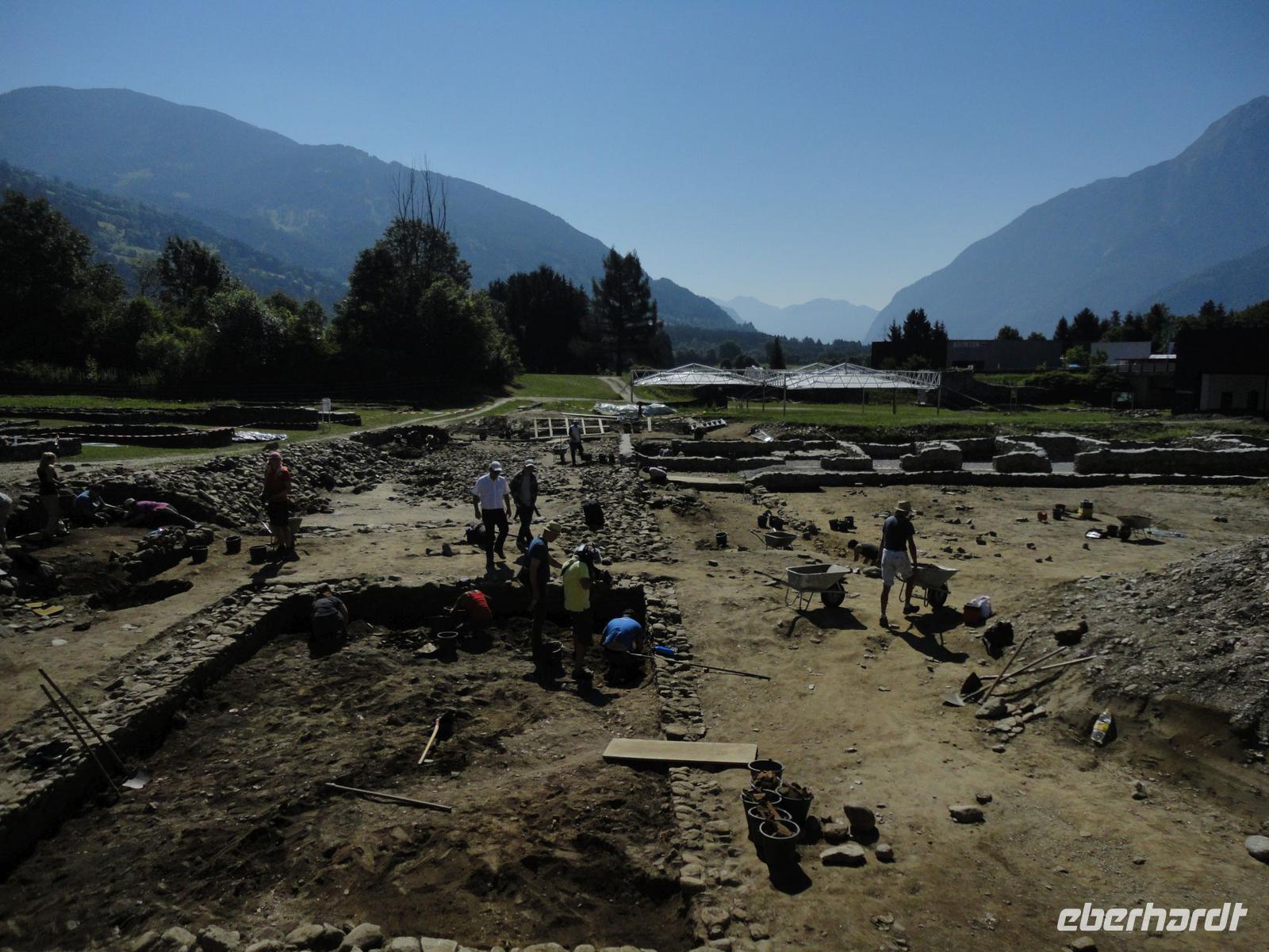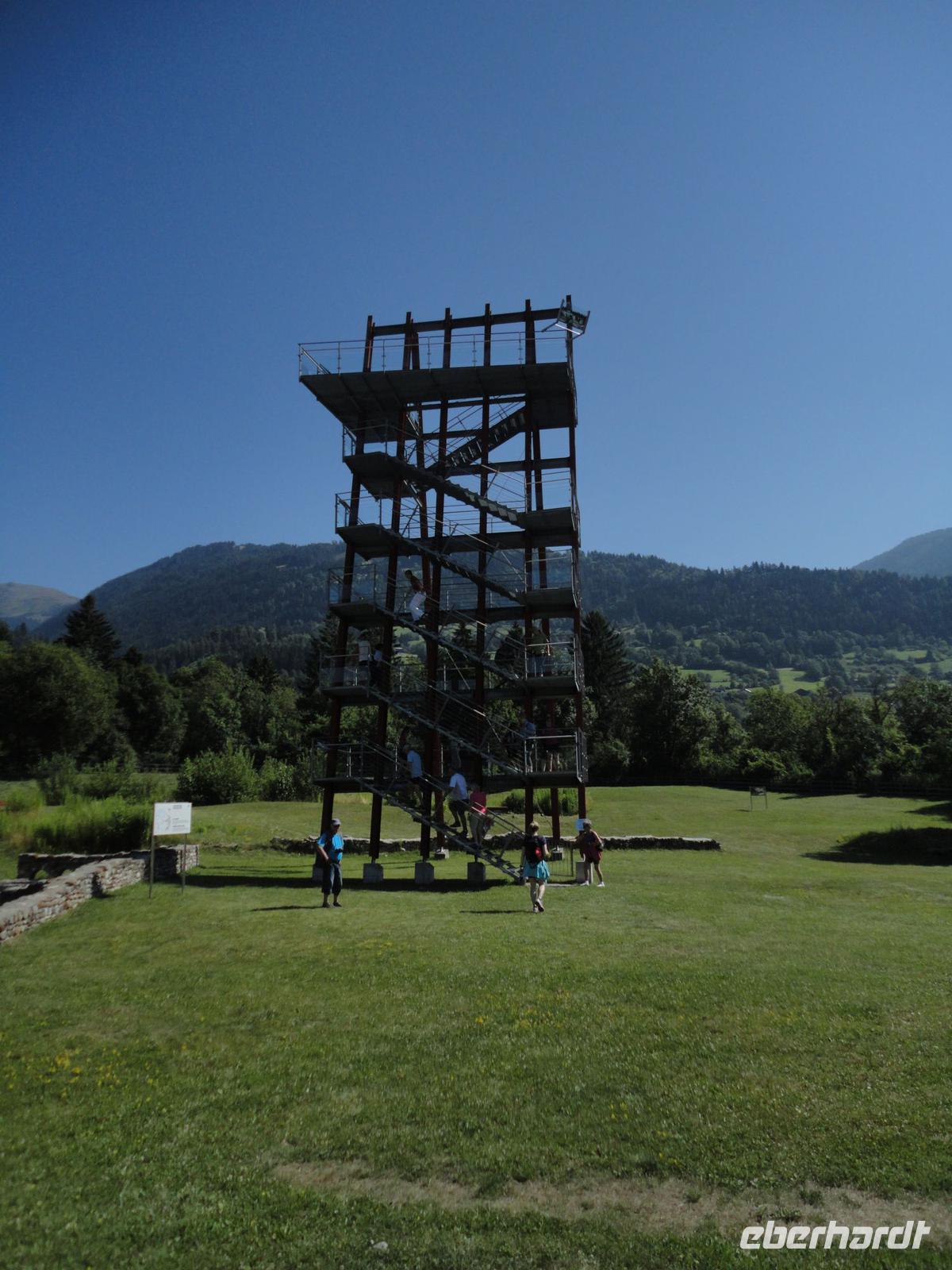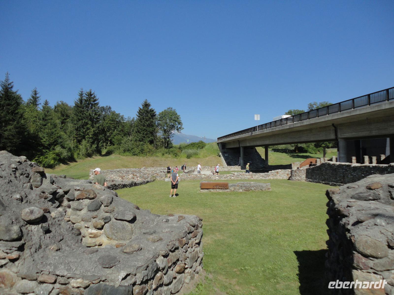 Den vierten Tag unseres Radausfluges begannen wir mit der Besichtigung der Ausgrabungsstätte Aguntum, die noch heute von einer ehemaligen römischen Siedlung zeugt. Nicht nur der animierte Kurzfilm und die geführte Tour mit dem Museumschef, sondern auch die live Ausgrabungen der Archäologen faszinierten uns. Nach knapp 2 Stunden Aufenthalt starteten wir unsere Tour de Drau. Allen war die Motivation und Dynamik anzumerken, die vor uns liegenden 80 km bis Villach zurückzulegen, ohne aufzugeben. Damit wir dieses Ziel auch erreichen konnten, stärkten wir uns zunächst in der Kneippanlage nahe Raßnig und steuerten dann einen tollen Rasthof in Berg bei Feistritz an. Fast alle Angereisten sattelten sich auf, um die kommende starke Ansteigung mit (großer) Mühe überwinden zu können. Diejenigen, dessen Pumpe nicht so konnte, wie sie wollten, ließen sich vernüftigerweise vom Lutz abholen und trafen uns am Abend im Erlebnis Hotel Post in Spittal. Unsere super Motivation brauchten wir auf dieser Etappe unserer Tour de Drau auch wirklich, denn die letzten 20 km wollte uns der Gegenwind richitg ärgern und zum Aufgeben zwingen. Aber wir ließen uns nicht unterkriegen und radelten mit den letzten Kräften direkt ins Erlebnis Hotel Post. Erst nachdem wir unsere Zimmer bezogen haben, verstanden wir, dass der Name des Hotels nicht von Ungefähr kam. Fast alle Zimmer hatten ein Motto und wurden dementsprechend gestaltet. Während Lutz das Liebeszimmer ergatterte, musste sich Ivonne in ihre Jugend versetzt mit dem Teeniezimmer arrangieren und Jacob eine heiße Nacht ohne Fenster in seiner Gefängniszelle durchstehen. Nach dem Abendessen zeigten wir uns gegenseitig unsere Zimmer und lachten über die oftmals witzige Gestaltung. Was für ein Erlebnis!
