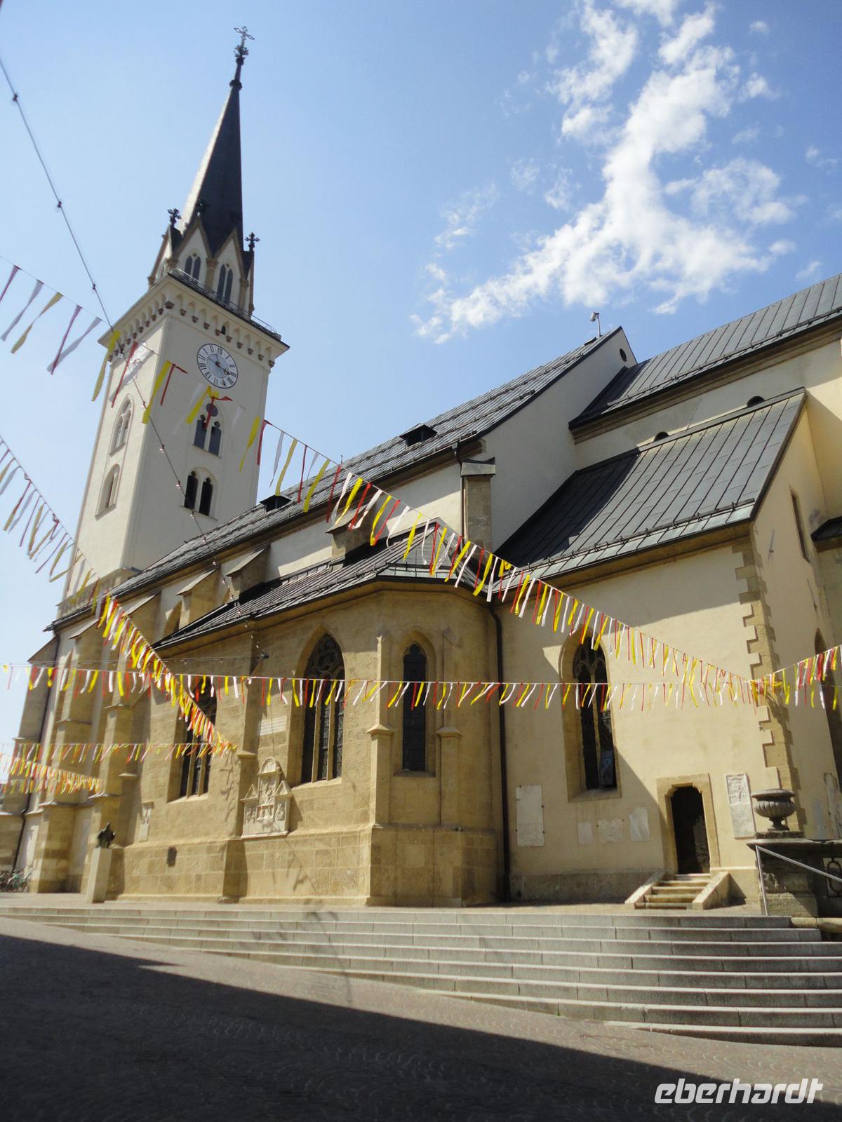 Bevor wir die nächsten Kilometer zum Klopeiner See mit gewohntem Schwung und Eifer locker zurücklegten, hielten wir noch kurz an der Kirche der "berühmten" Hildegard von Stein, deren Ehemann sie der Untreue bezichtigte und deshalb gemeinsam mit der Zofe aus dem Fenster stieß. Glücklicherweise wurden beide - wie unser radelndes Lexikon Johanna uns berichtete - von Engeln gerettet und der Ehemann vom grellen Schein der Engel mit dem Verlust des Augenlichtes bestraft. Der Versuch, seine Hildegard nach vielen Jahren zurückzuerobern, scheiterte kläglich. Sie hatte sich bereits mit dem Bau einer Kirche ein festes Standbei angeschafft.