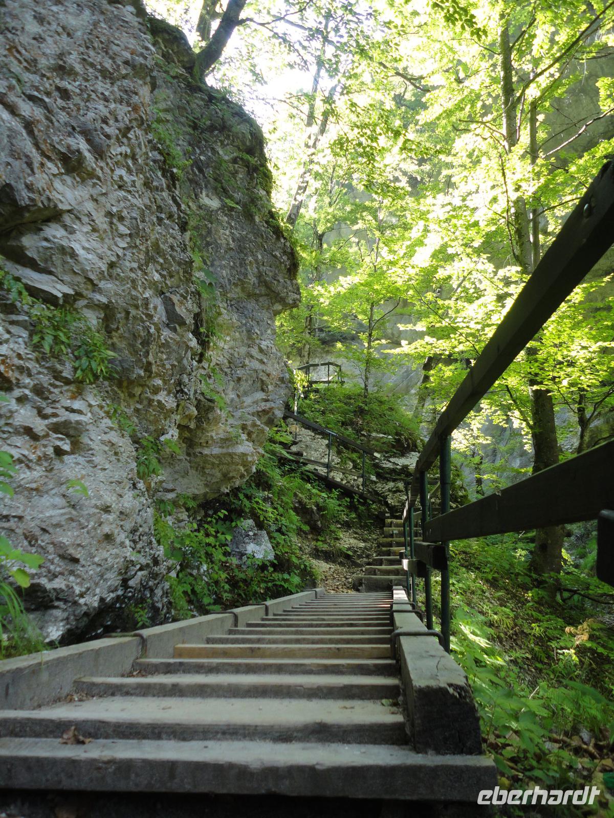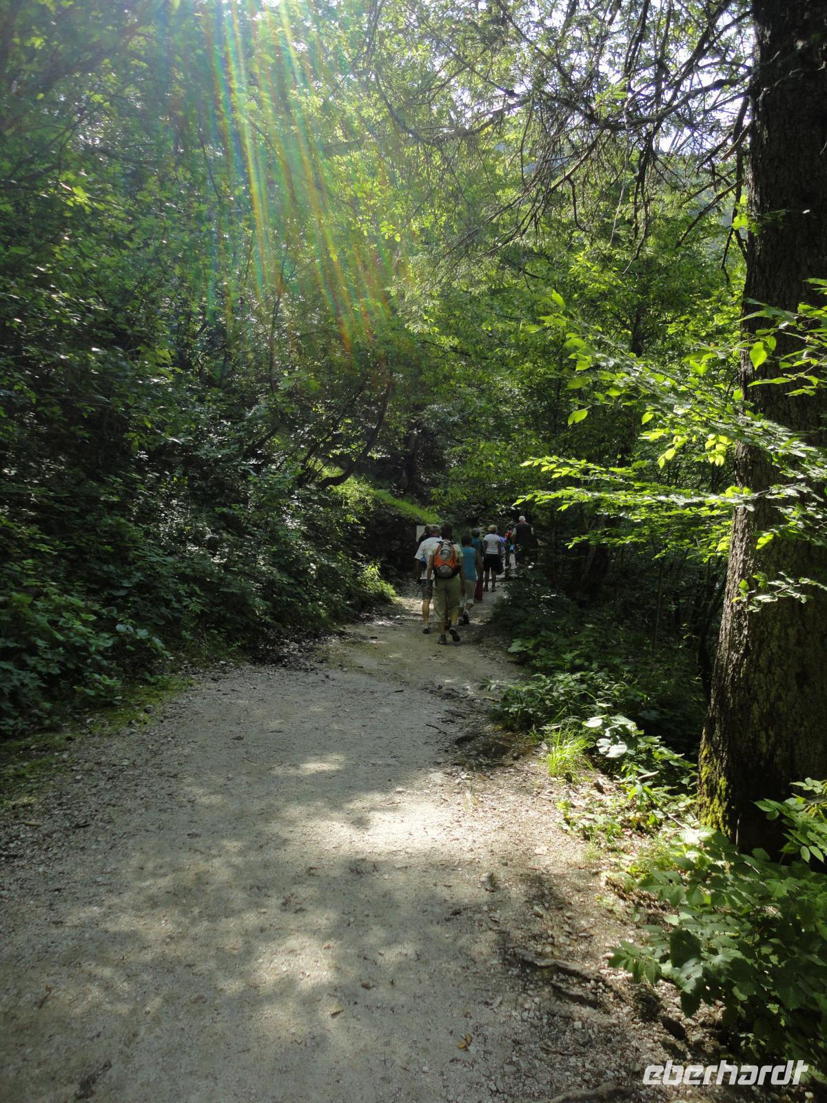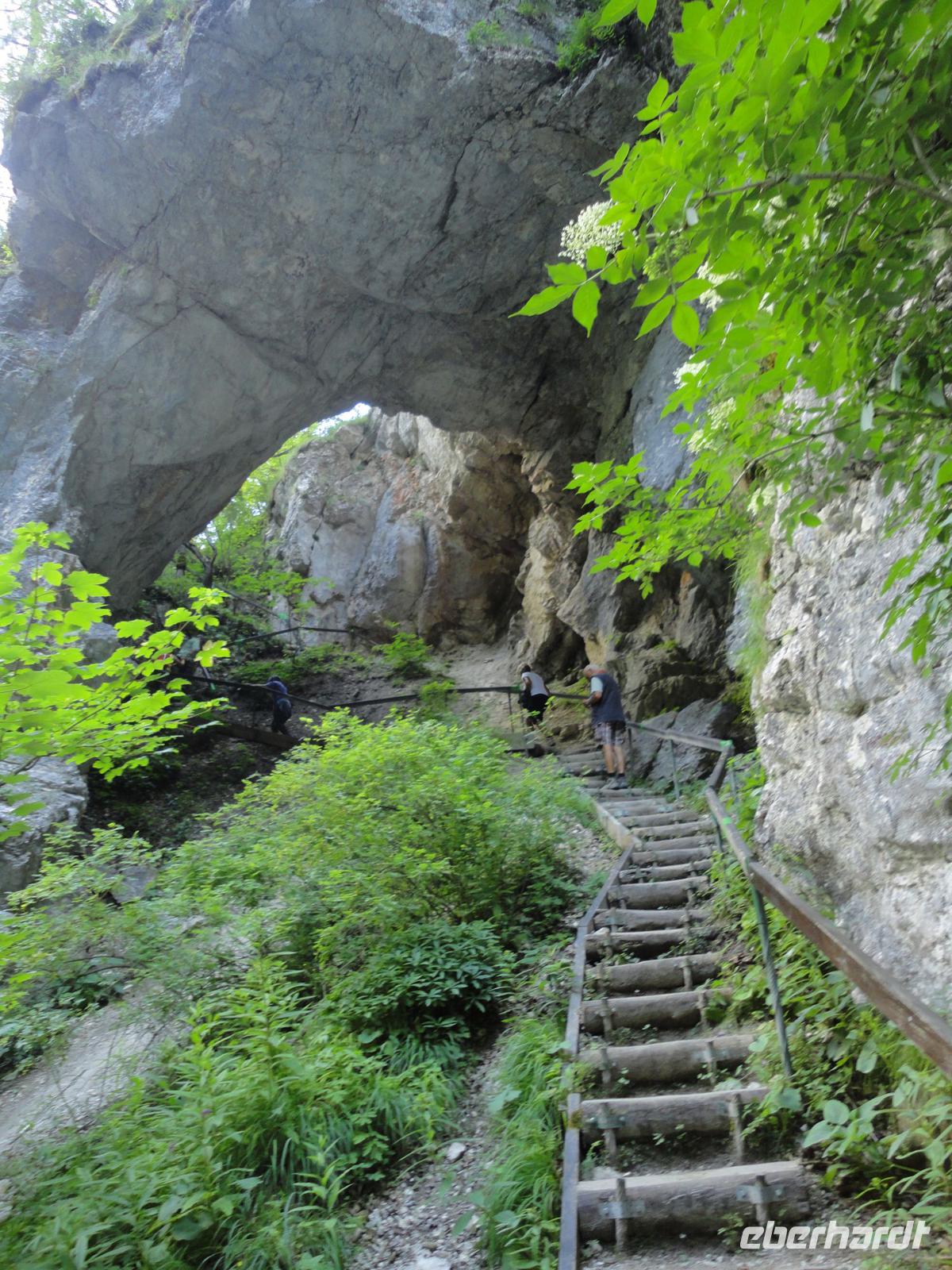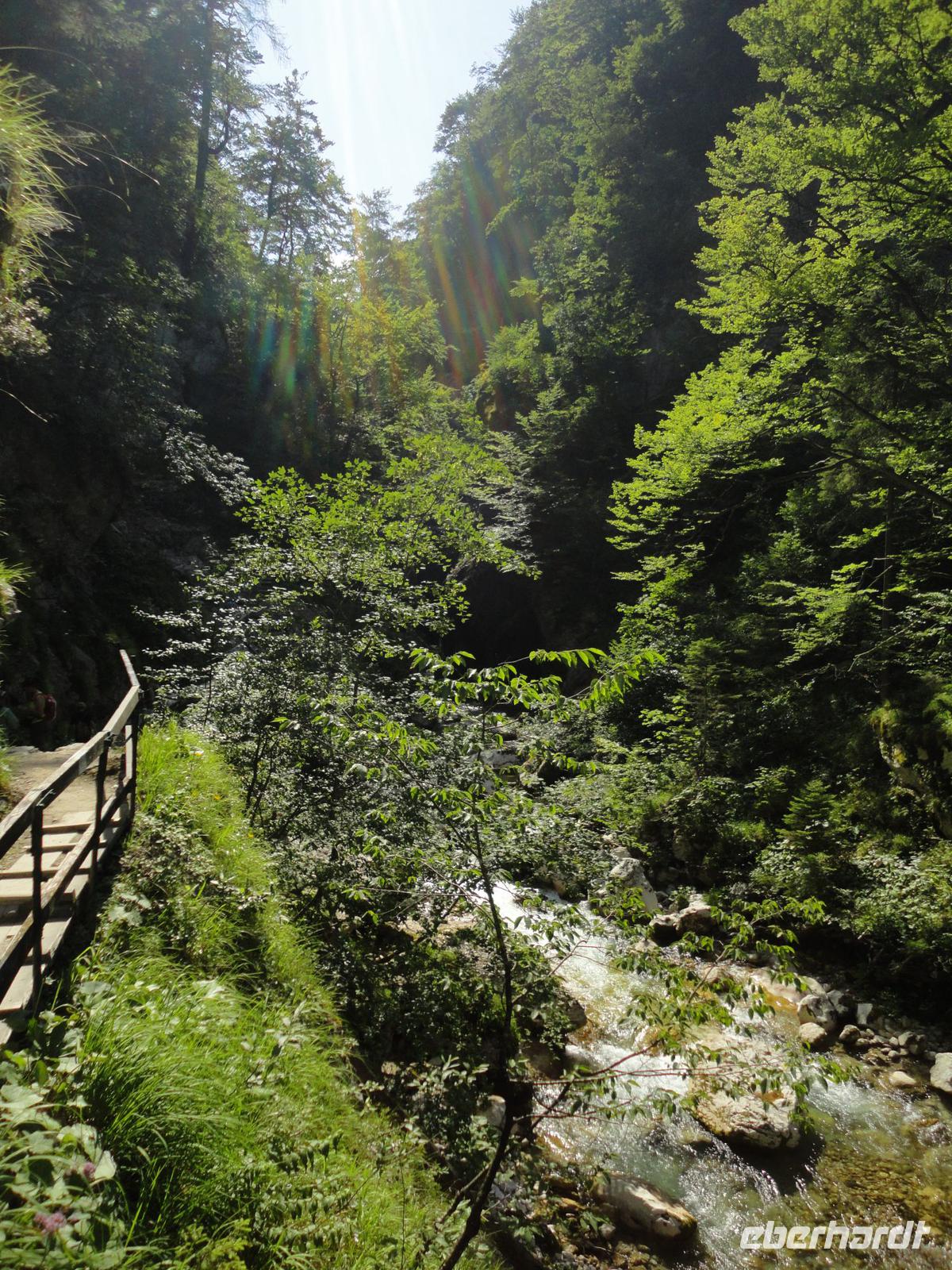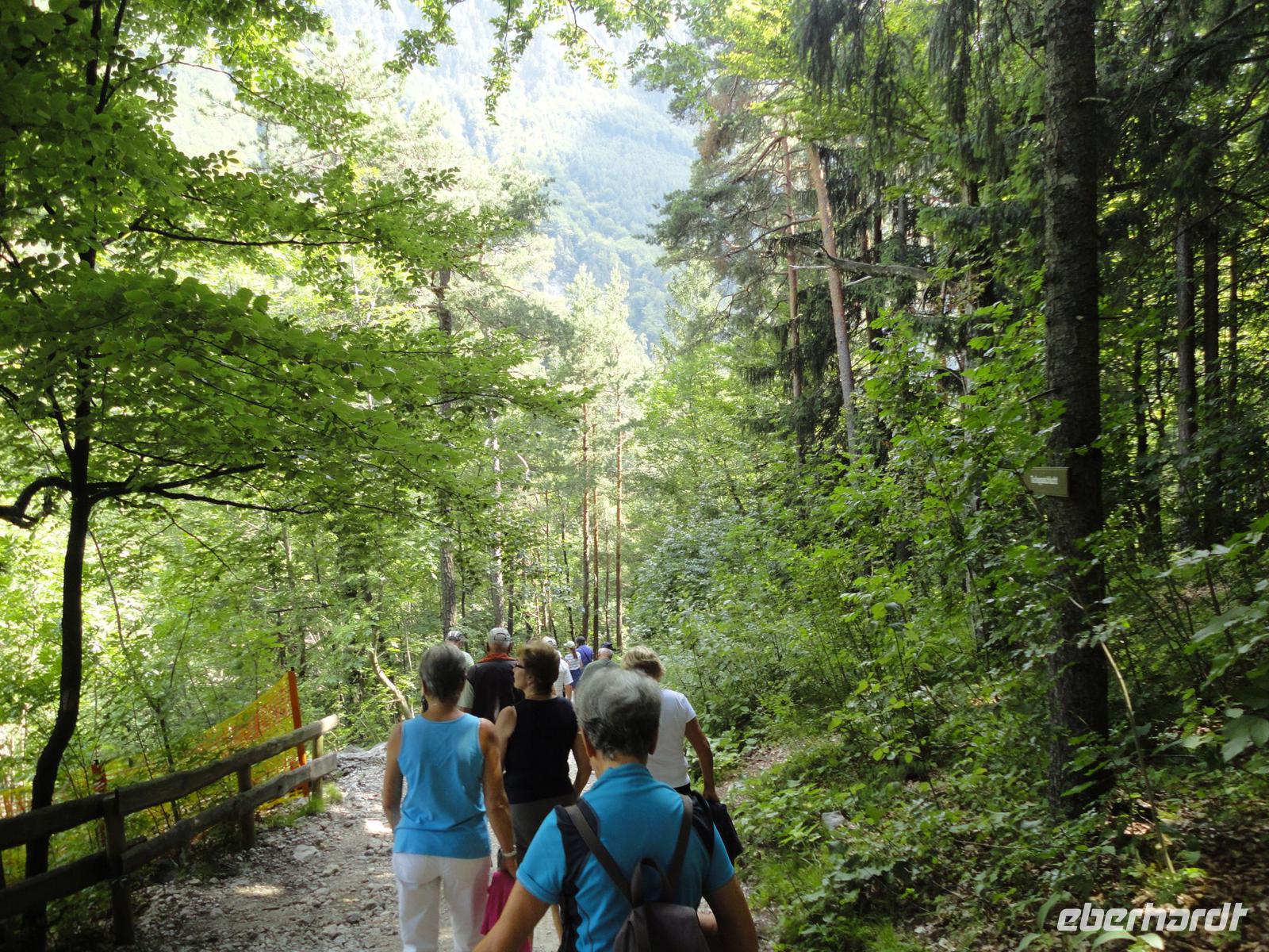 So kamen wir am Nachmittag in unserer einfachen Pension angesaust und fuhren nach einer kurzen Erfrischung mit dem Bus zur Tscheppaschlucht. Einige von uns relaxten aber lieber am direkt vor der Pension liegenden See oder laßen gemütlich und entspannt ein Buch. Die Tscheppaschlucht war ein wahnsinnig tolles Erlebnis. Endlich konnten wir mal unsere Beine in die Gerade begeben und bei der knapp 2-stündigen Wanderung diese atemberaubende Natur- und Felslandschaft genießen. Die direkt über dem Wasserfall befindliche Hängebrücke bot uns einen wunderbaren Anblick und die Möglichkeit für einen lustigen Schnappschuss. Wir sind gespannt, wie er geworden ist! Kurz vor Ende unserer Tscheppaschlucht-Wanderung beauftragten wir unseren Ingolf mit einer Panoramafotografie fürs Fotoalbum. Trotz verständlicher und klarer Anweisungen ließ die ordnungsgemäße Umsetzung ein Weilchen auf sich warten. Aber nach dem dritten Foto hatten wir zumindest alle einen Kopf.