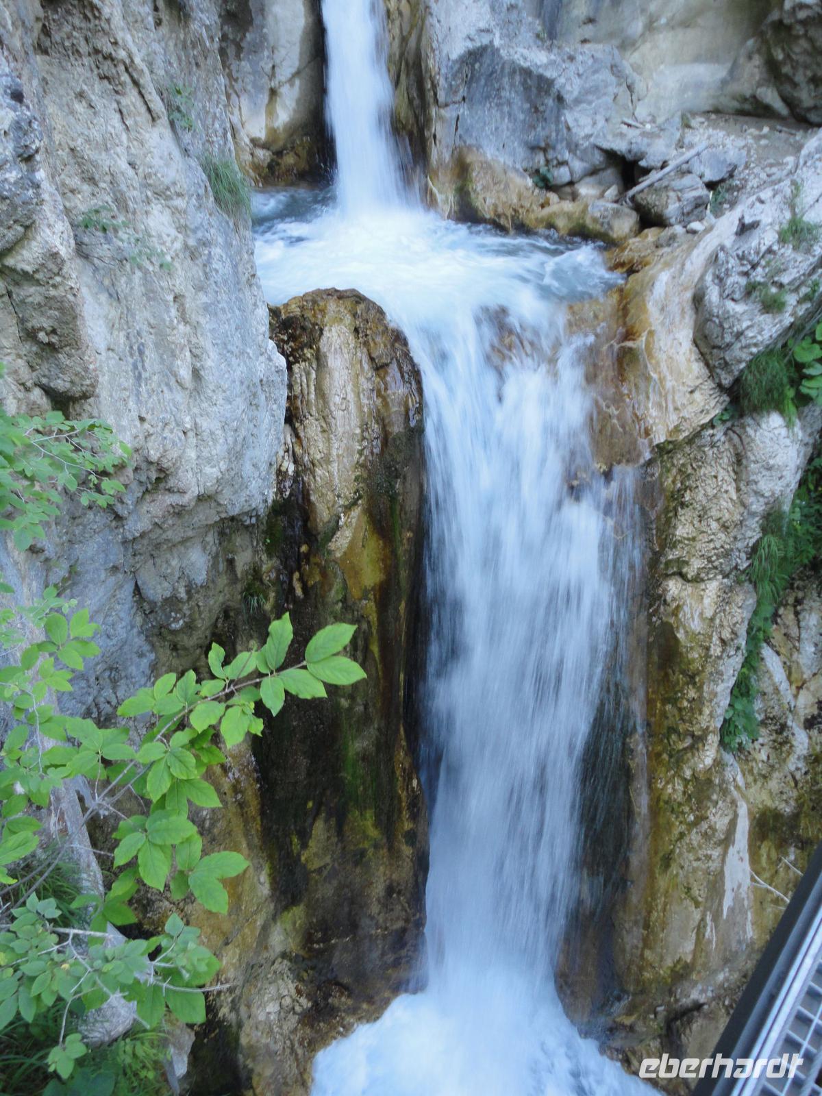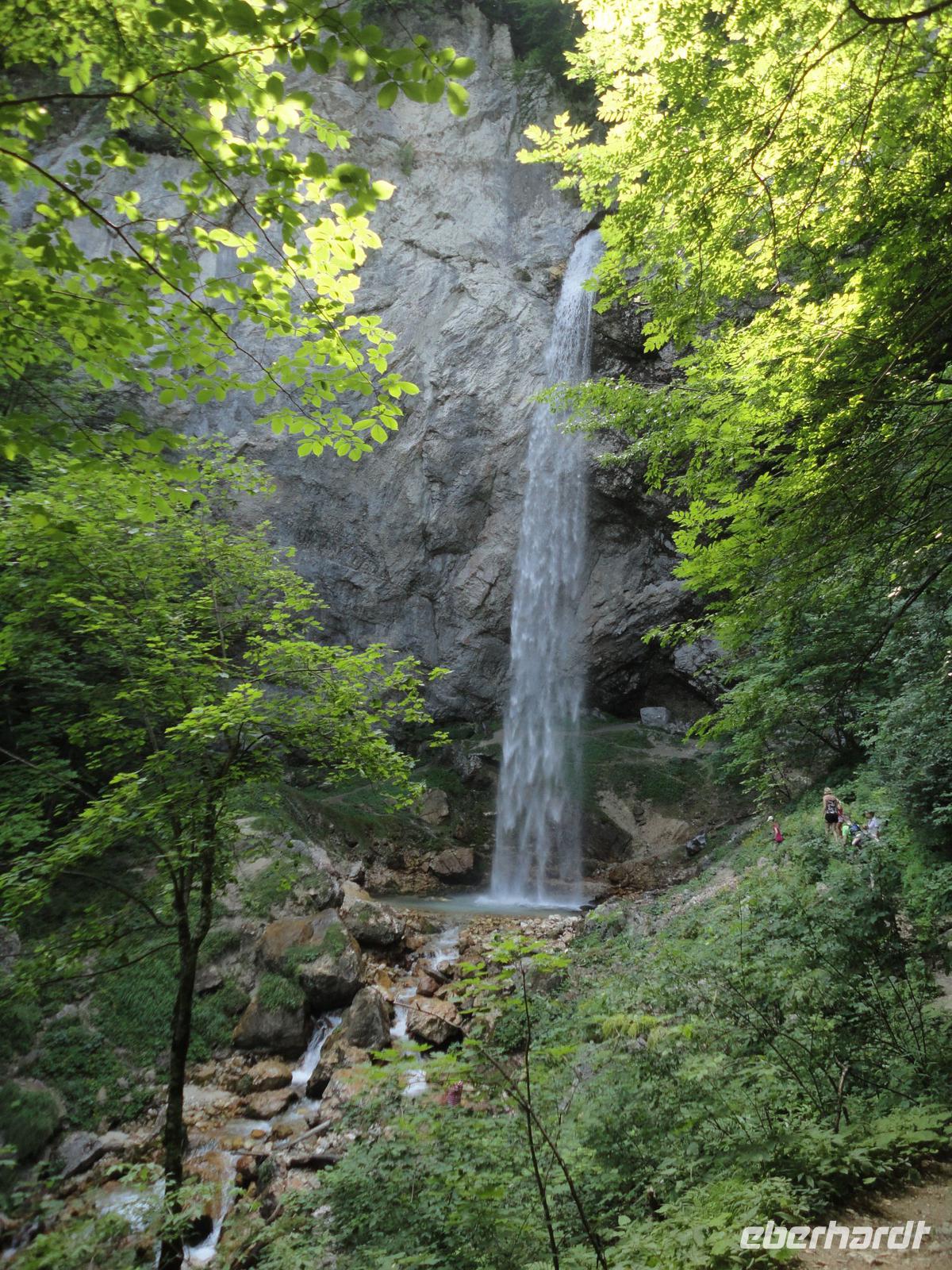 Die Nacht brachten wir alle mehr oder weniger gut vorüber. Nach unserem übersichtlichen Frühstück vom Buffet schwungen wir uns wie immer gut gelaunt der Sonne entgegen auf unsere Räder in den 7. Urlaubstag. Über die kleine Balisto-Aufmerksamkeit von Eberhardt freuten wir uns sehr. Auch am heutigen Tag bescherte uns die Sonne allerbestes Wetter, worüber wir uns immer wieder freuen konnten. Seit 7 Tagen purer Sonnenschein tut unser Seele so gut und lässt uns den Urlaub wirklich jede Sekunde genießen. Nach 2-stündiger Fahrt Richtung Völkermarkt erreichten wir am Vormittag den Wildensteiner Wasserfall, wo wir eine Rast einschlagen oder direkt zum Wasserfall stiefeln konnten. Der Anblick dieses größten Wasserfalls, der im freien Fall 54 Meter beträgt, war wirklich den anstrengenden Aufgang bei praller Hitze wert. Gestärkt von unseren "leckeren" Schnitzeln vom Vortag oder kleinen Müsliriegeln sausten wir den zuvor erklommenen "Berg" wieder hinab und genossen dabei den kühlen Fahrtwind, der so heftig wehte, dass unser Ingolf sein sportliches Shirt verlor. Zum Glück hat unsere "Lumpensammlerin" Ivonne blitzschnell reagiert und das Shirt vorm sicheren Tod durch darüber fahrende Autos gerettet.