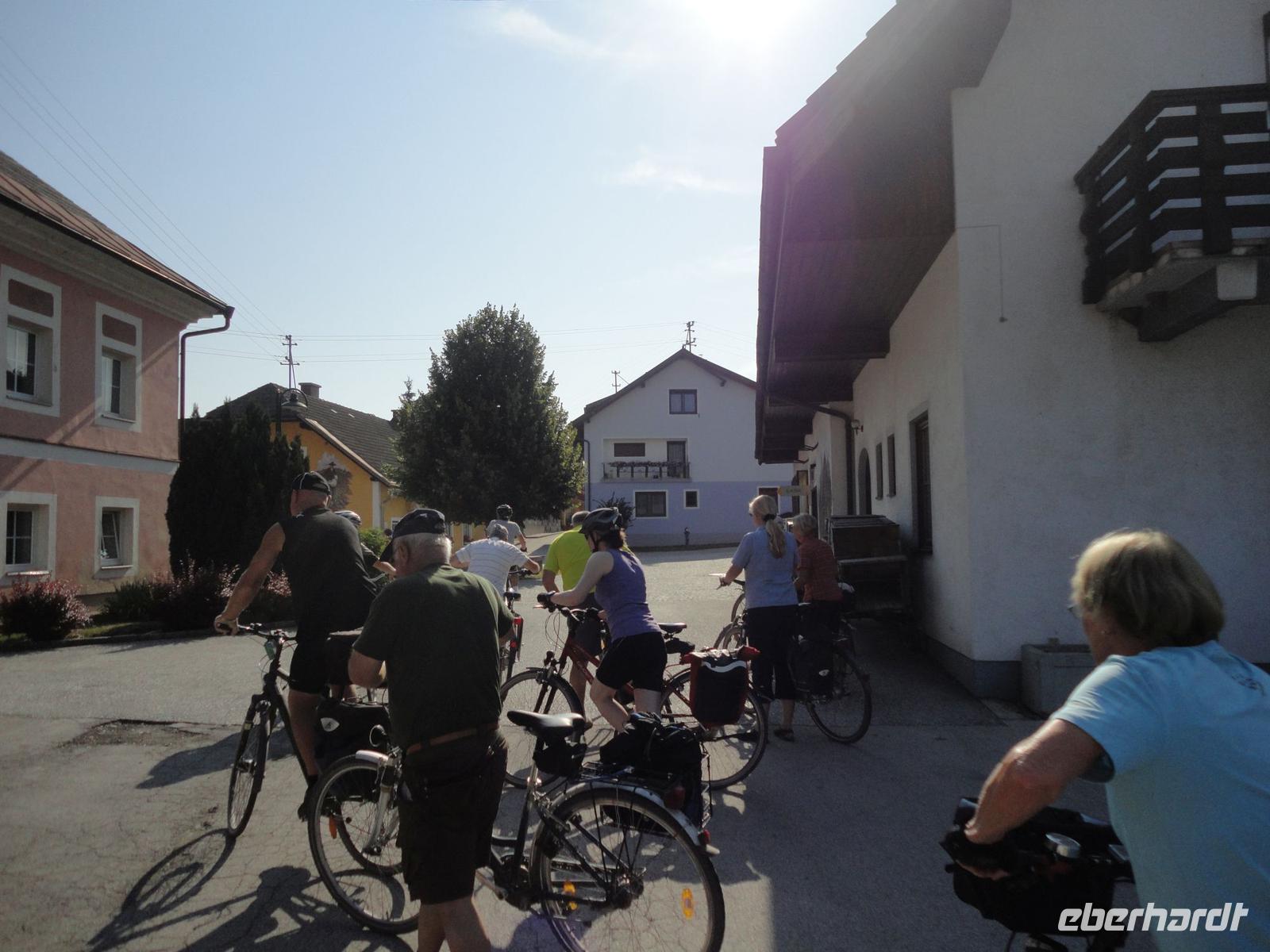 Der Donnerstag, unser 6. Tourtag, startete schon etwas zeitiger als üblich. Nach einem köstlichen Frühstück und den Glückwünschen für unser letztes Geburtstagskind der Reise, Helga, starten wir unsere Etappe durch Villachs Altstadt auf 500 Meter überm Meeresspiegel. Nach mehreren kleinen Wasser- und Ruhpäuschen verbrachten wir unsere Mittagspause im Rosenthaler Stübl in St. Oswald. Dieses Jausenstübl bot uns leckere Brote, Nudelgerichte, Suppen, Kuchen und natürlich herrliche Erfrischung. Den schwierigen Anstieg hinterm Rasthof packten wir mehr oder weniger erfolgreich mit dem Rad. Aber, wo´s auf geht, folgt auch immer ein Hinab.
