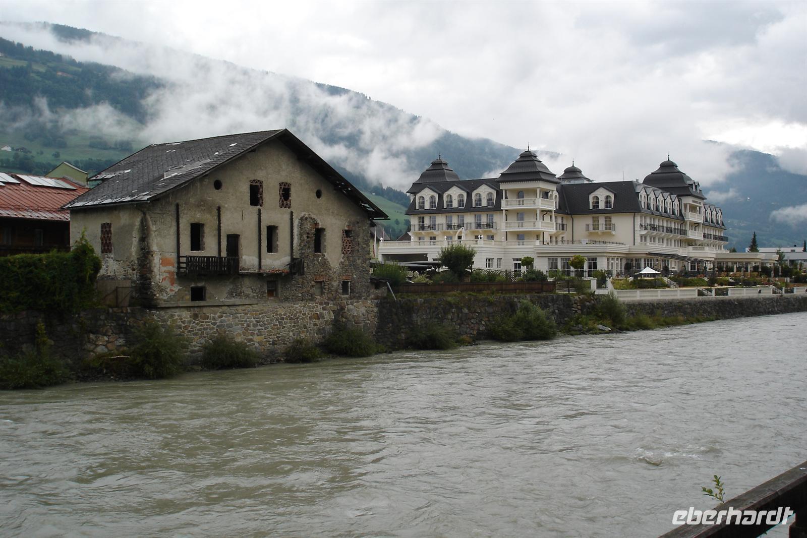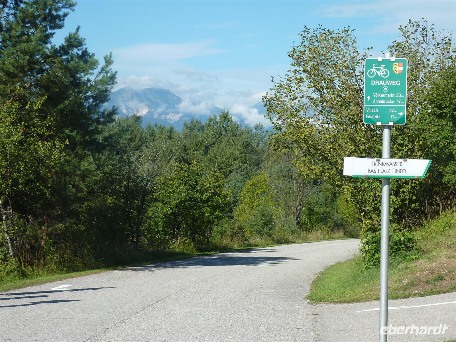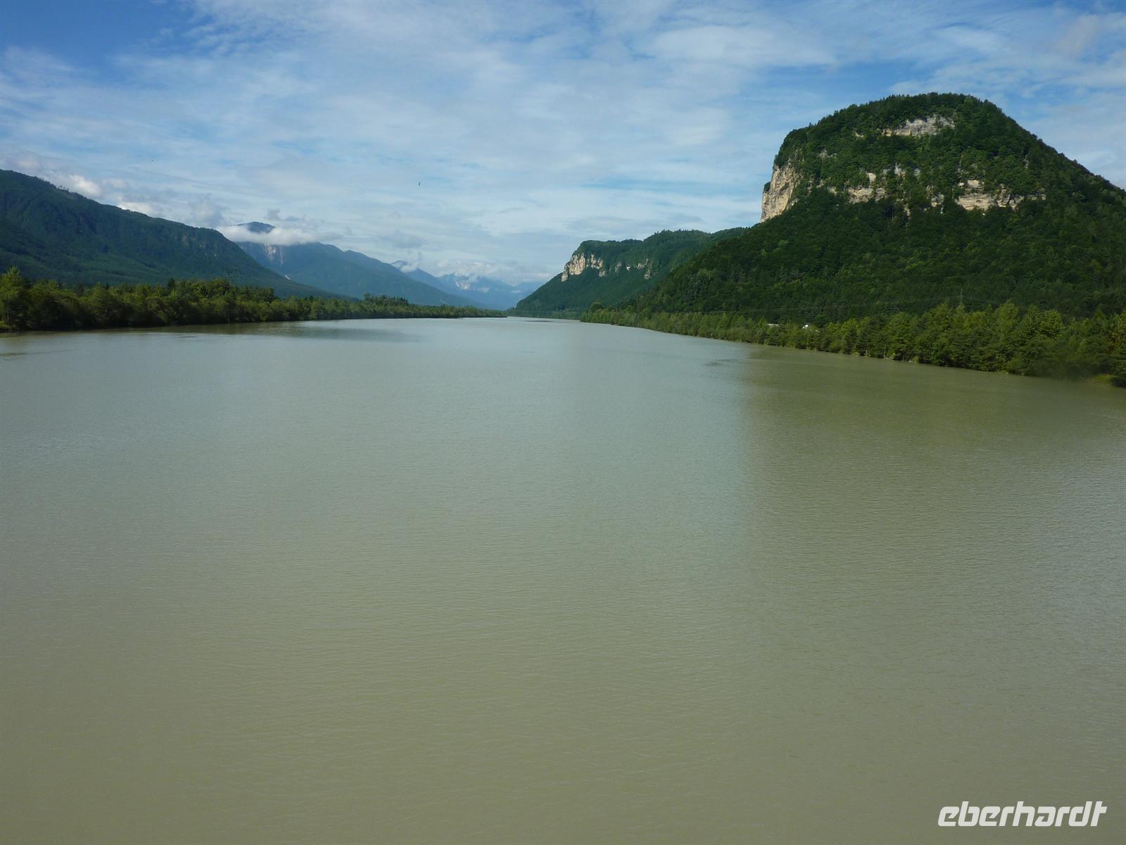 Gleich hinter Toblach machen wir wieder halt - zum Glück hatte uns unsere örtliche Reiseleiterin auf die kleine Brücke aufmerksam gemacht, über welche wir den nur wenige hundert Meter alten „Bach Namens Drau“ überquerten. Nicht mal eine Stunde später führte uns die Radstrecke dann wieder an den Fluss, welcher uns die kommenden Tage immer begleiten sollte: die Drau. Bis nach Silian konnten wir bei Fotostopp immer wieder die schöne Landschaft und die nun schon 3-Meter-breitere Drau festhalten.
