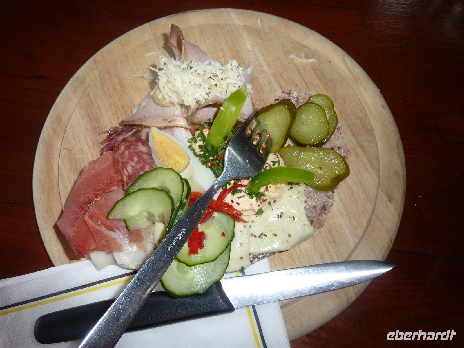 Wallner wurden uns traditionell belegte Brote serviert, von denen eines größer und reichlicher belegt war als das andere. Aber lecker haben sie alle geschmeckt, genauso wie die Hausgemachten Apfelsäfte und -moste.