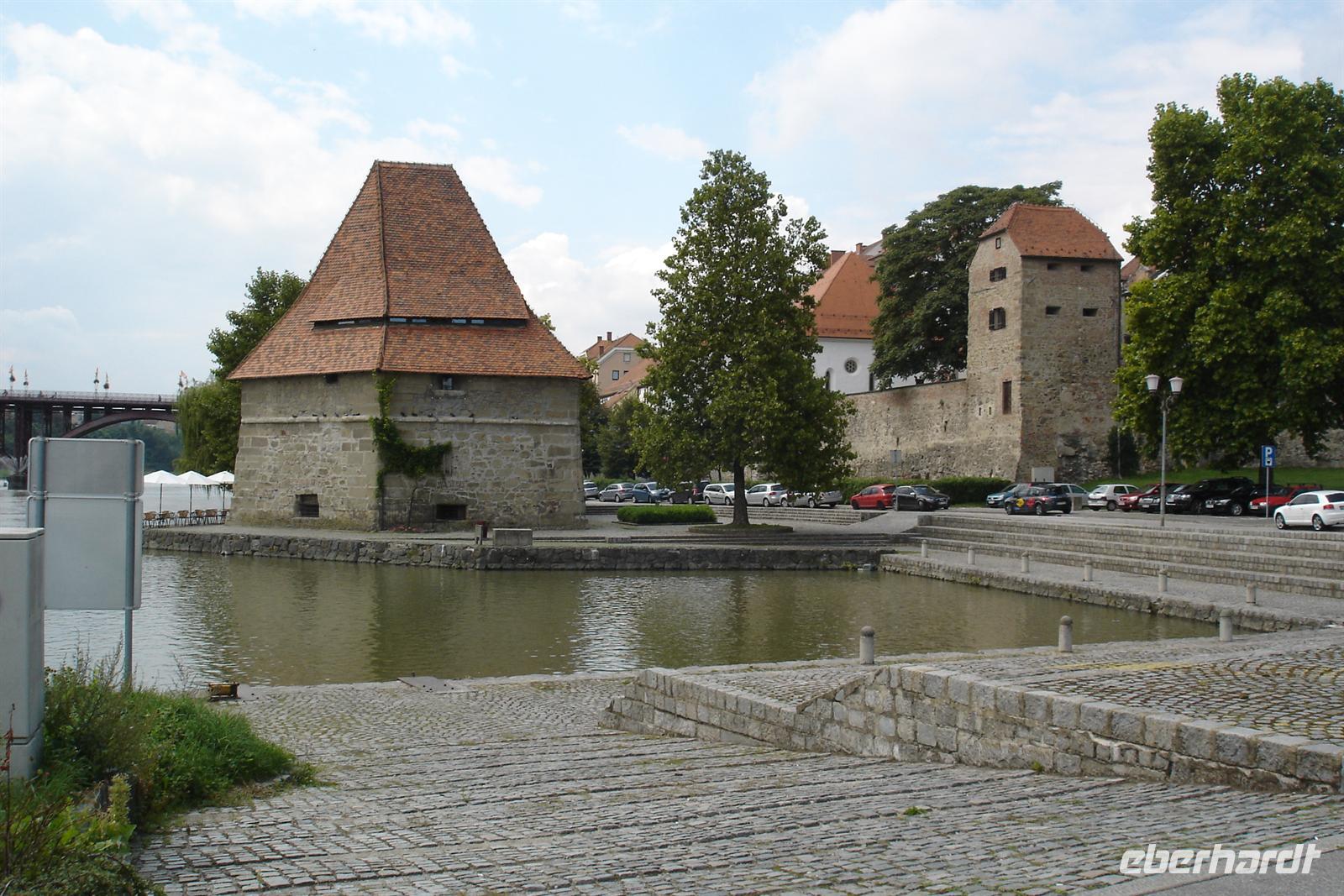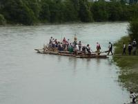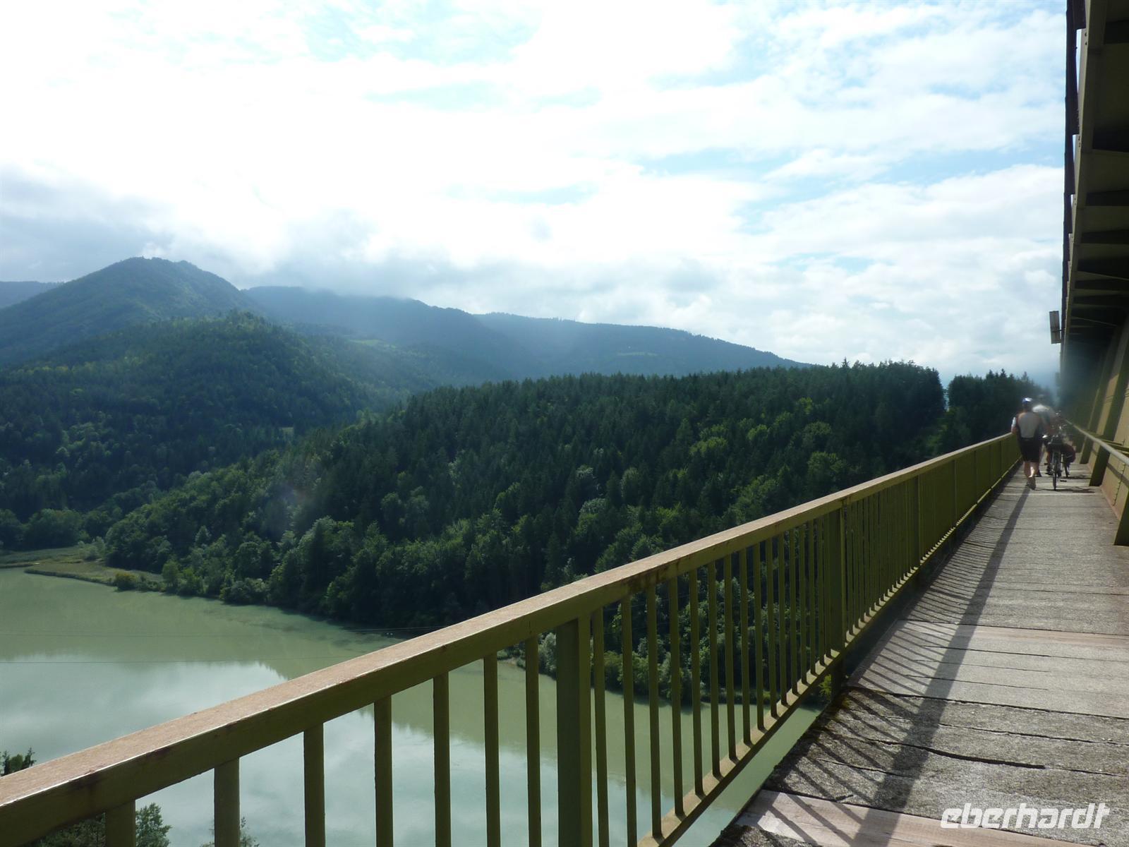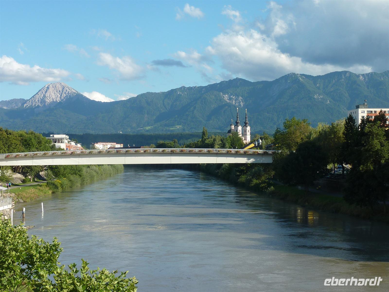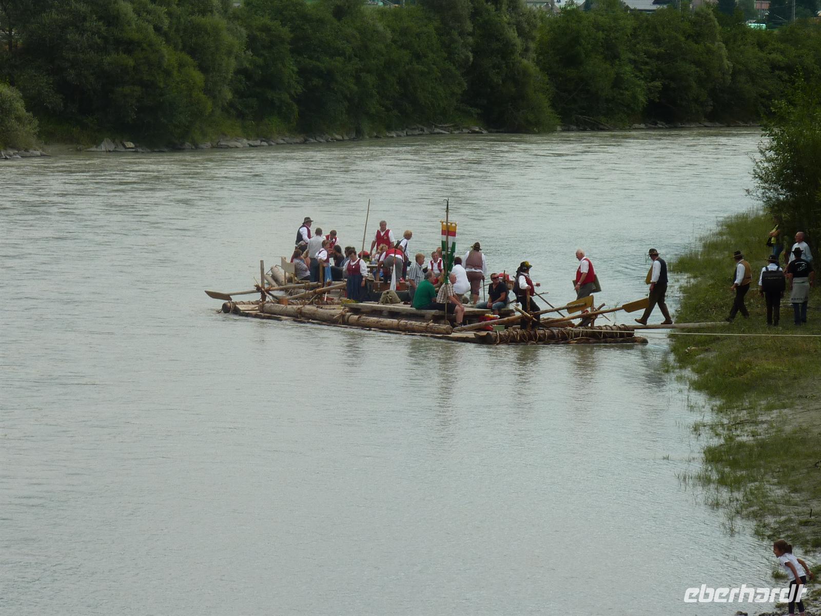 Weiter ging es immer entlang der Drau und über deren viele Brücken. Auf einer entdeckten wir sogar eine Gruppe Flößer, welche am Flößerfest teilgenommen hatten und sich auf Holzstämmen, mit Speis, Trank und Akkordeonmusik auf der Drau dahin treiben ließen.