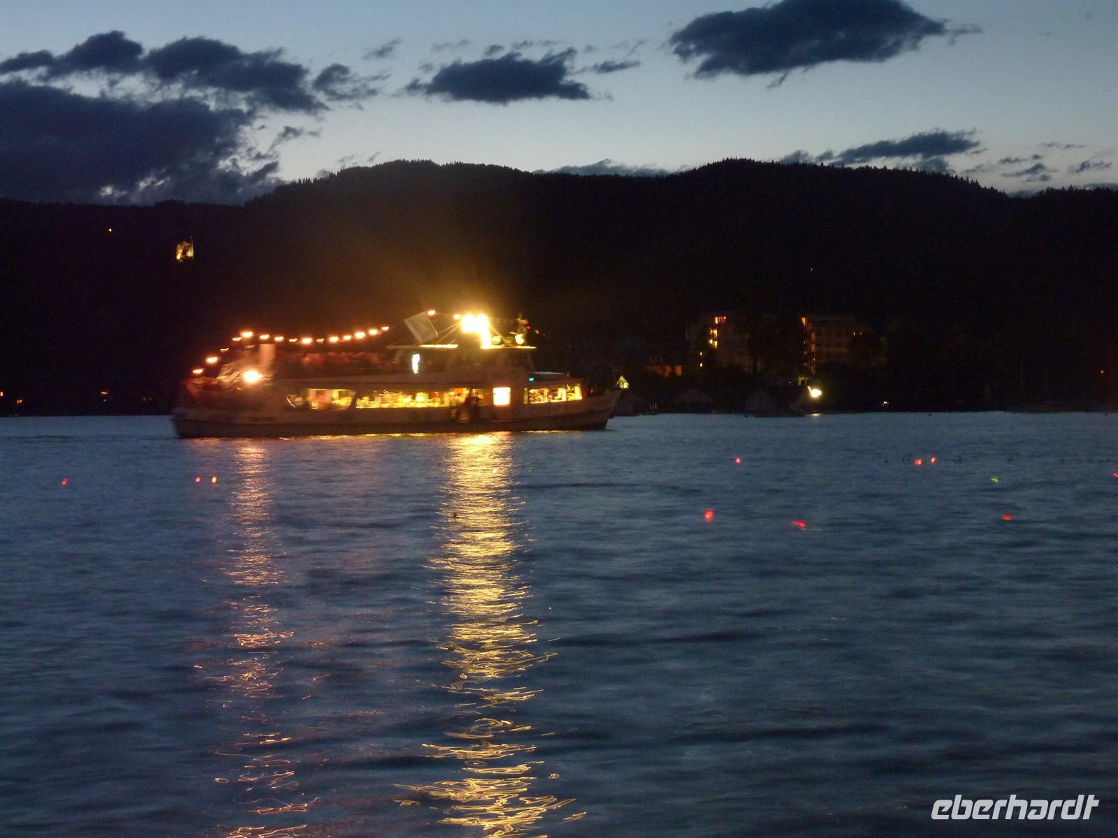 Am Abend wartete eine Überraschung auf uns: nach dem Abendessen lud uns Johanna ein, mit ihr zum Wörtersee zu fahren, wo jedes Jahr am 15. August eine abendliche Schiffsprozession stattfindet. Der Gesang und die vielen bunten Lichter aus dem berühmten österreichischen See waren ein toller Ausklang für den vierten Radeltag und unser Bergfest.