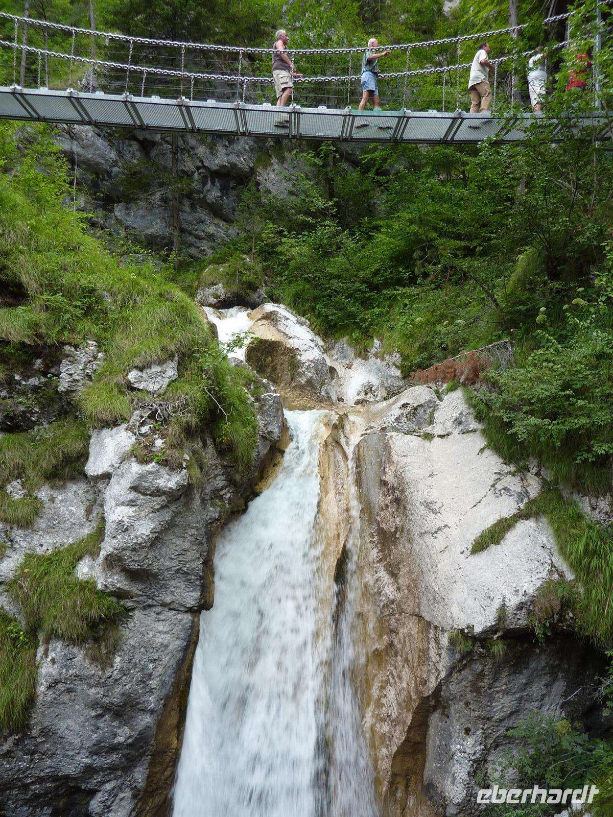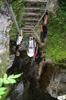 Der sechste Tag führte uns nach Ferlach Kirchentheuer. Die Radtour war zwar bergig, aber der schwierigste Anstieg vor dem Essen wurde sofort mit einer tollen Aussicht auf das Drautal belohnt. Da wir vor unserer Mittagsrast alle Berge erklommen hatten, konnten wir uns gut gestärkt ins Tal zum Radgasthof Schütz rollen lassen. Nach einer kurzen Erfrischung im Pool erkundeten wir am Nachmittag die Tscheppaschlucht: sportlich wie wir alle waren, wanderten wir (bzw. kletterten wir teilweise auch) zum Tschaukowasserfall und ließen uns auf der Hängebrücke fürs Internet fotografieren - soll ja schließlich jeder wissen, dass wir auch dieses Naturschauspiel hautnah kennengelernt haben.
