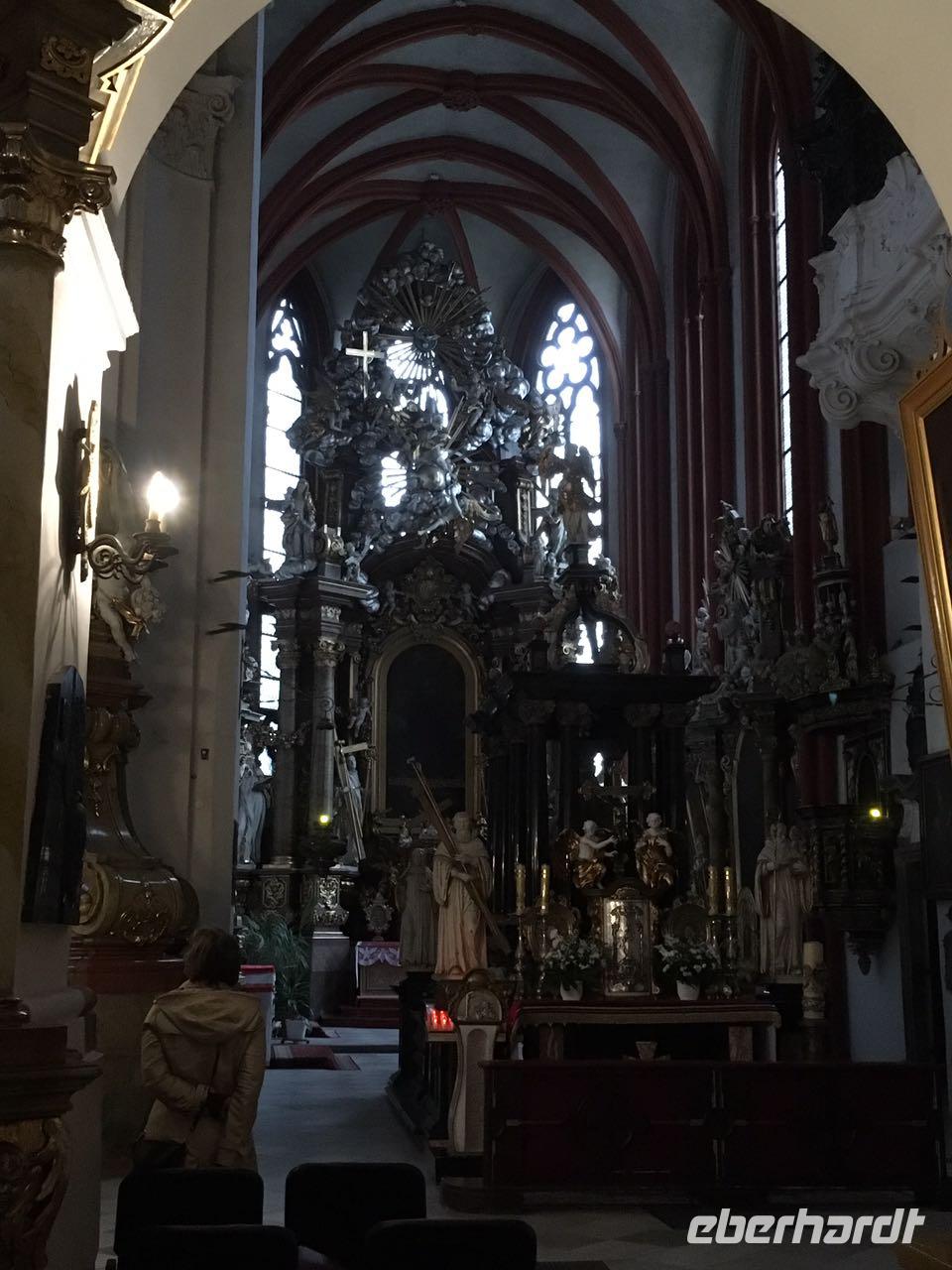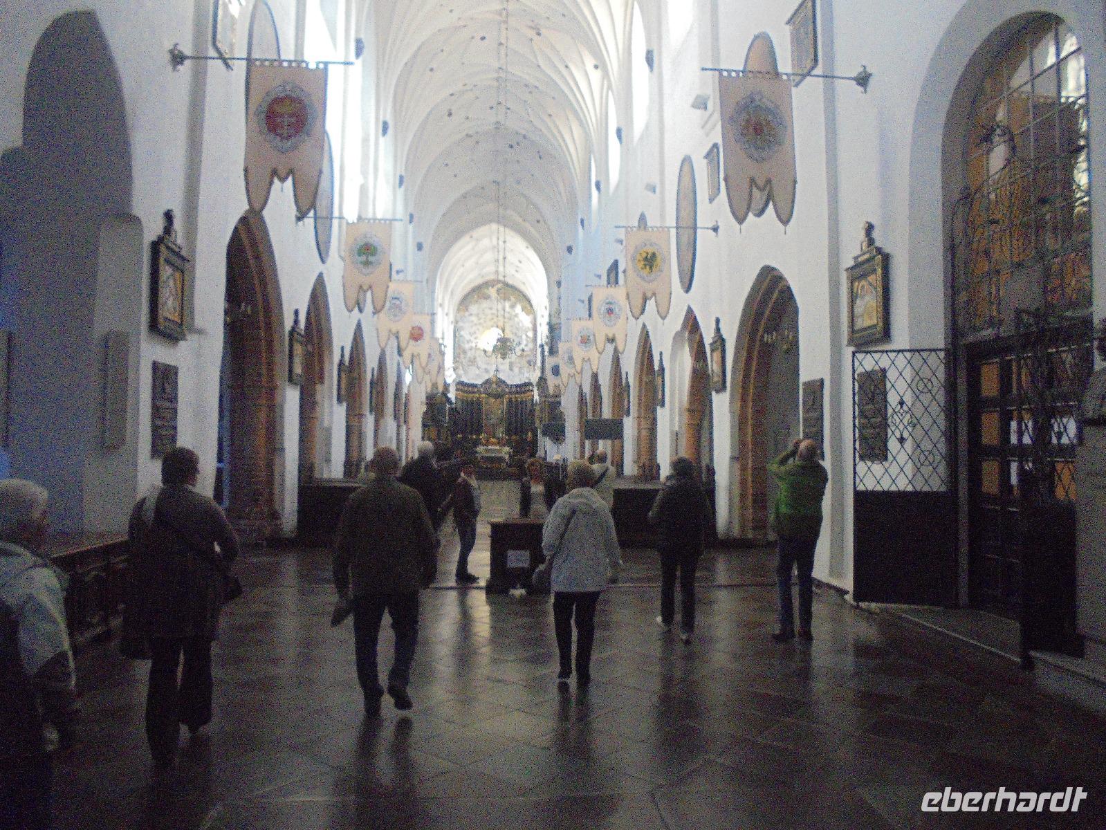 Die Gebeine der schon im 13. Jahrhundert Heiliggesprochenen ruhen im von ihr gestifteten Kloster Trebnitz (Trzebnica). Wir suchten dieses Kloster, von dem nur noch die inzwischen barockisierte Kirche mit dem Hedwigsgrab steht, das die Reliquien der Heiligen enthält, auf, waren allerdings durch den dort gerade stattfindenden Gottesdienst etwas eingeschränkt.