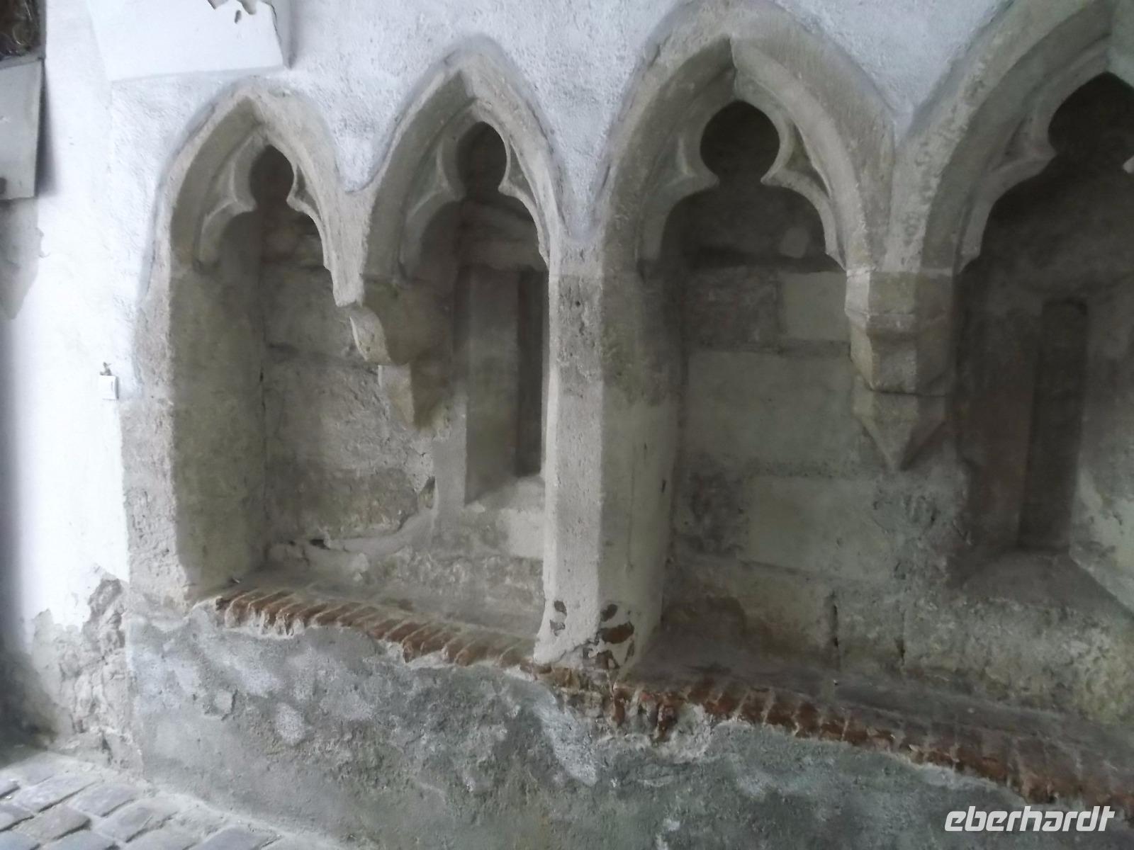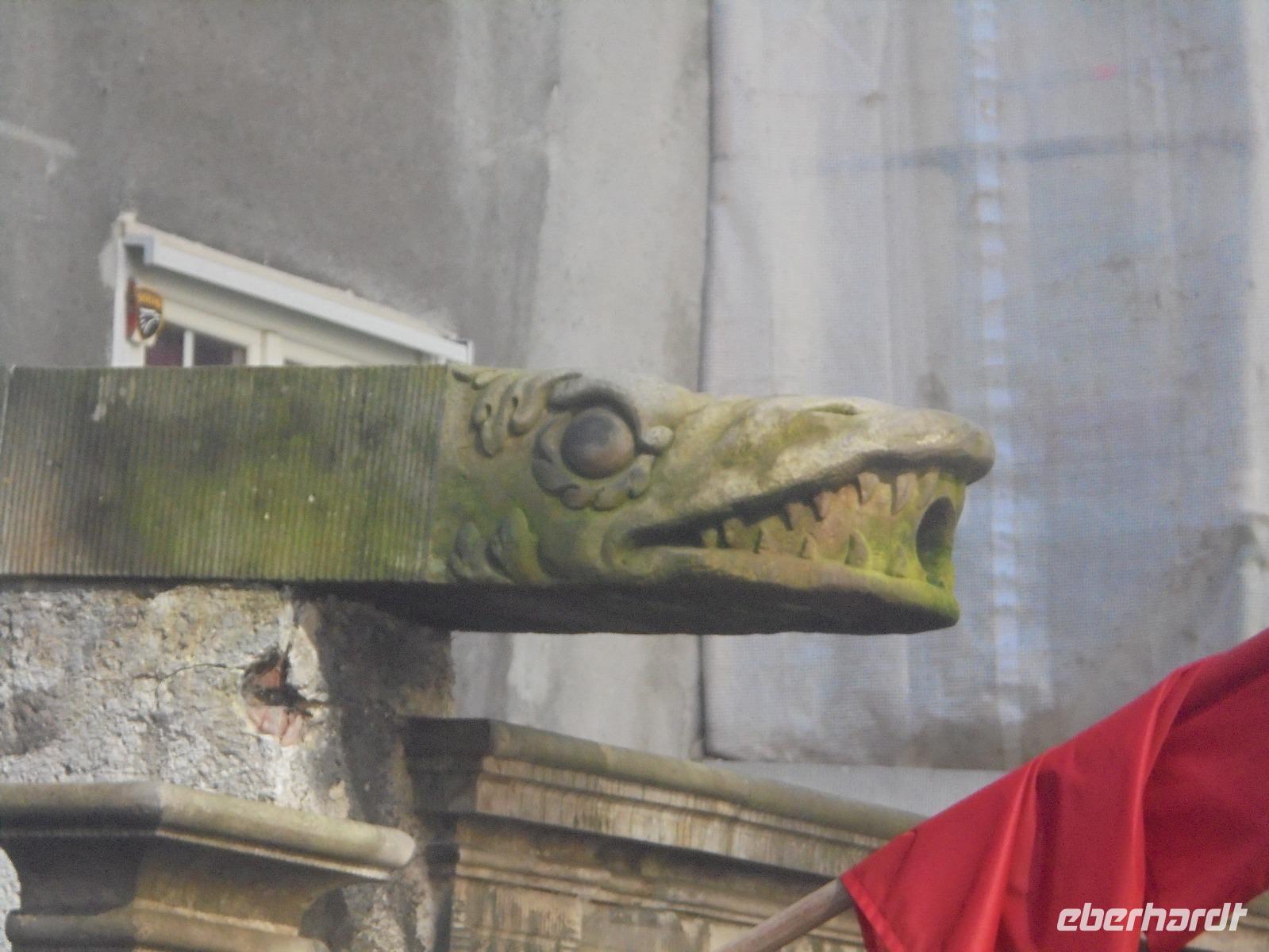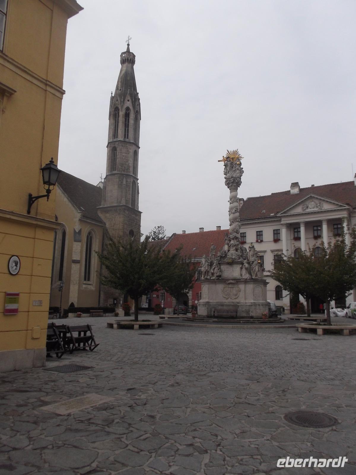 Den Vormittag verbrachten wir in Ungarn, wo uns eine Stadtführung die Stadt Ödenburg, auf Ungarisch Sopron, näherbrachte, die einst die Römer als Siedlung Scarbantia gründeten, einen befestigten Handelsplatz an der antiken Bernsteinstraße. Ein Teil des römischen Grundrisses ist hier bis heute erkennbar, denn auf den Resten der römischen Befestigung entstanden im Mittelalter die Stadtmauern da, wo der heutige Marktplatz zu finden ist, war schon zu Römerzeiten das Forum. Heute steht hier die Pestsäule, das Rathaus und daneben das Stadttor mit Feuerturm und auf der anderen Seite des Marktplatzes die Geißkirche, jene romanisch-gotisch-barocke Kirche, in der im 17. Jh. die ungarischen Vizekönige gekrönt wurden. Ihren ungewöhnlichen Namen hat sie von der Ziege auf dem Stifterwappen der Patrizierfamilie Gaissel, das die Fassade über dem Hauptportal der Kirche ziert.