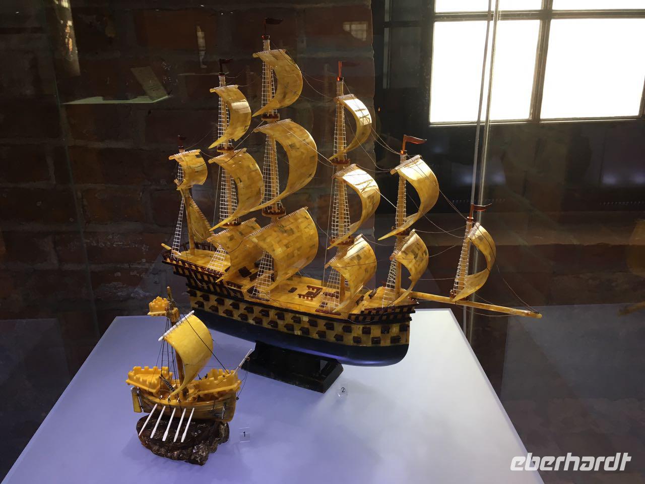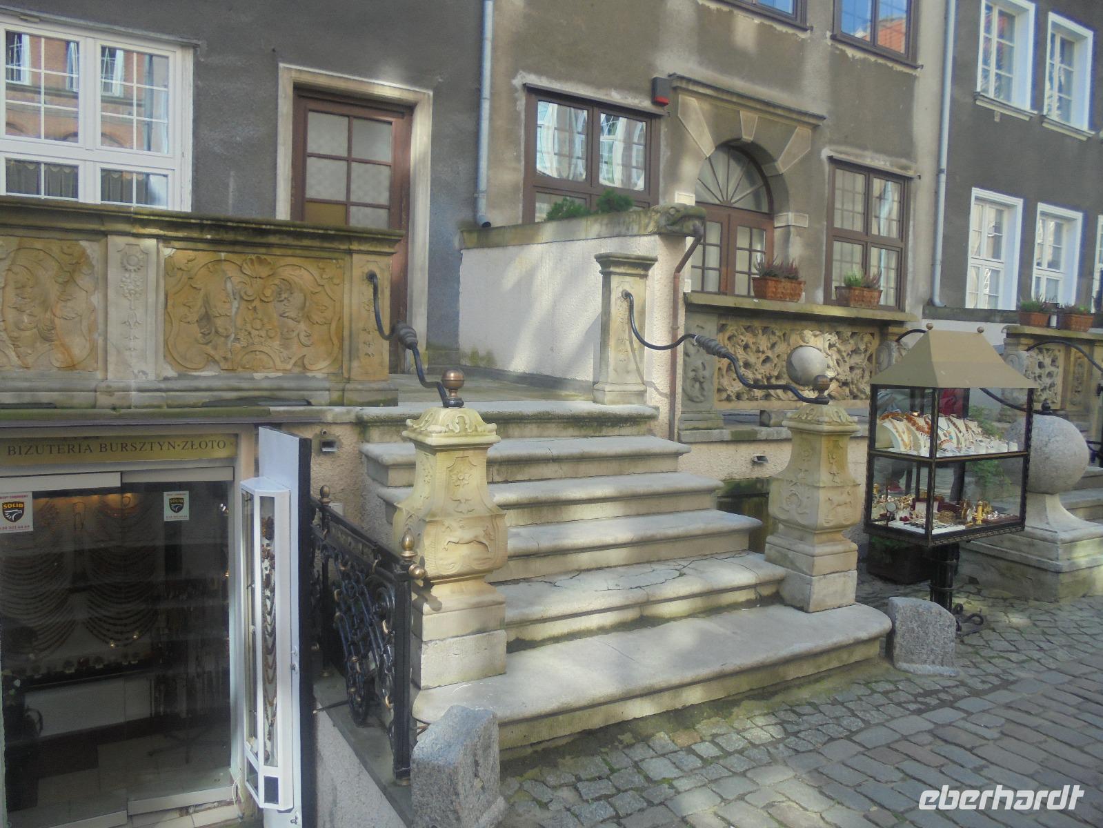 Nach unserem Stadtspaziergang gab es Freizeit, nach der wir uns erneut trafen, um das Bernsteinmuseum zu besuchen. Untergebracht im Stockturm, dem einstigen Stadtgefängnis, zeigt es heute mit herrlichen Exponaten Wissenswertes über die Entstehung, die Arten und die Gewinnung von Bernstein, über seine Bearbeitung und wartet mit prachtvollen Zeugnissen der Kunstfertigkeit Danziger Bernsteinbearbeitung auf. Schmuckstücke, Belag von Kleinmöbeln und Gebrauchsgegenstände aus Bernstein waren zu sehen.