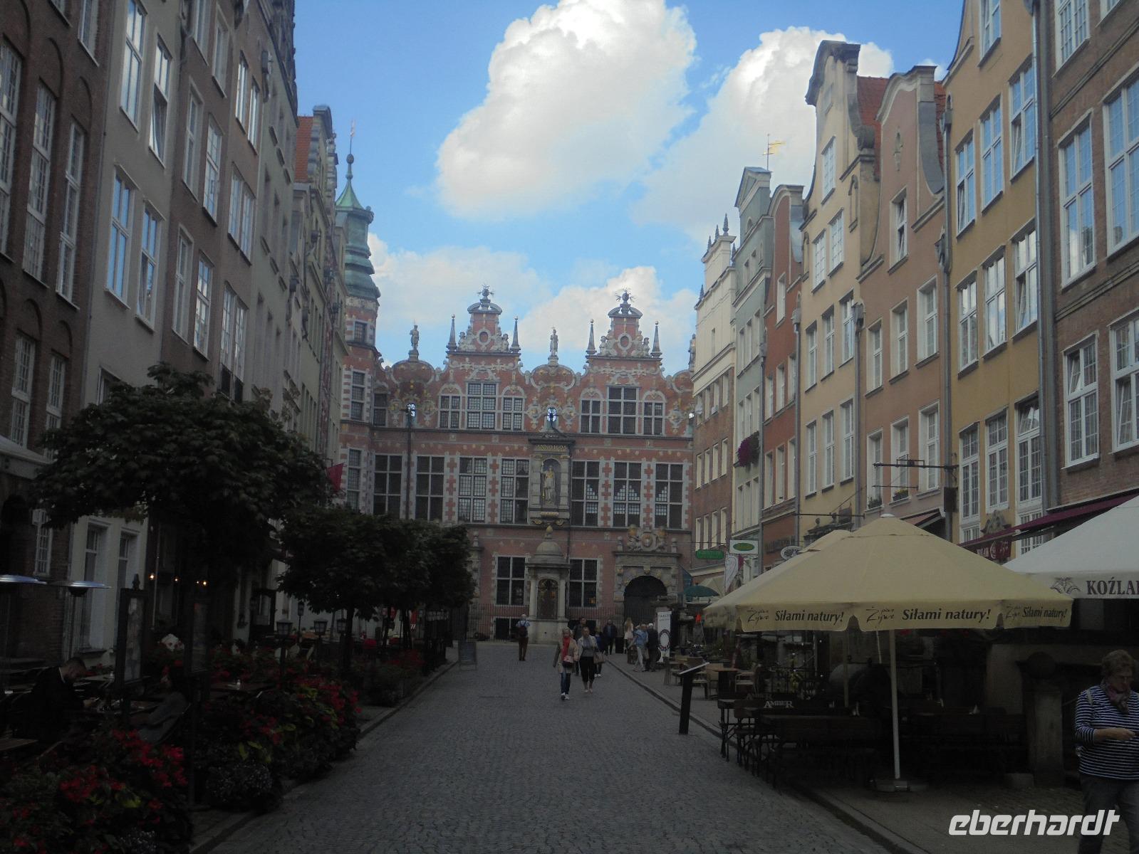 Hier finden sich berühmte Gebäude wie das Rathaus, das im 14. Jh. eigentlich als Hansekontor erbaut worden war, das Grüne Tor, das im Stil prachtvoller flämischer Spätrenaissance erscheint oder der eigentlich gotische Artushof, in der Spätrenaissance umgestaltet und ab dem 18. Jh. Sitz der Danziger Börse.