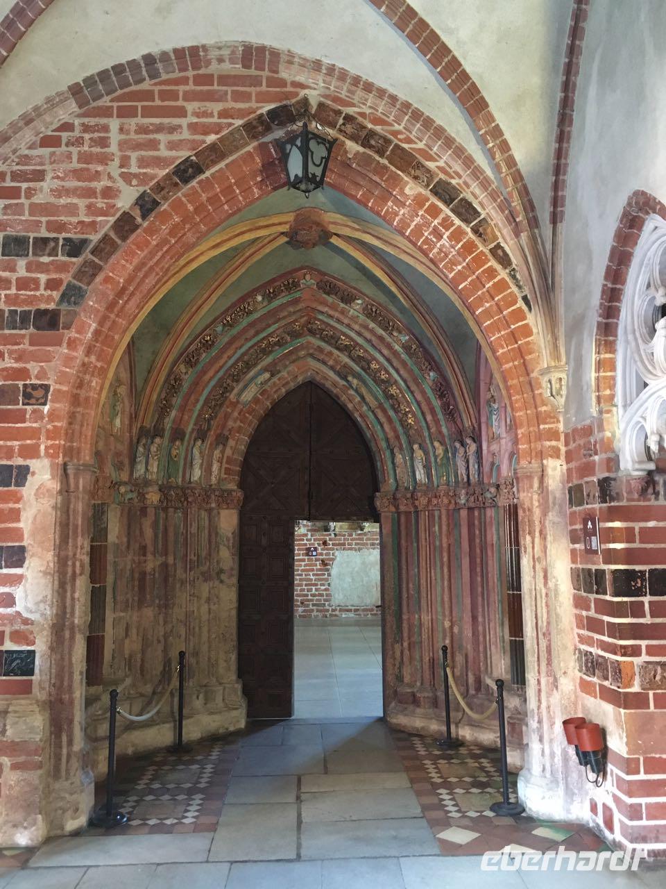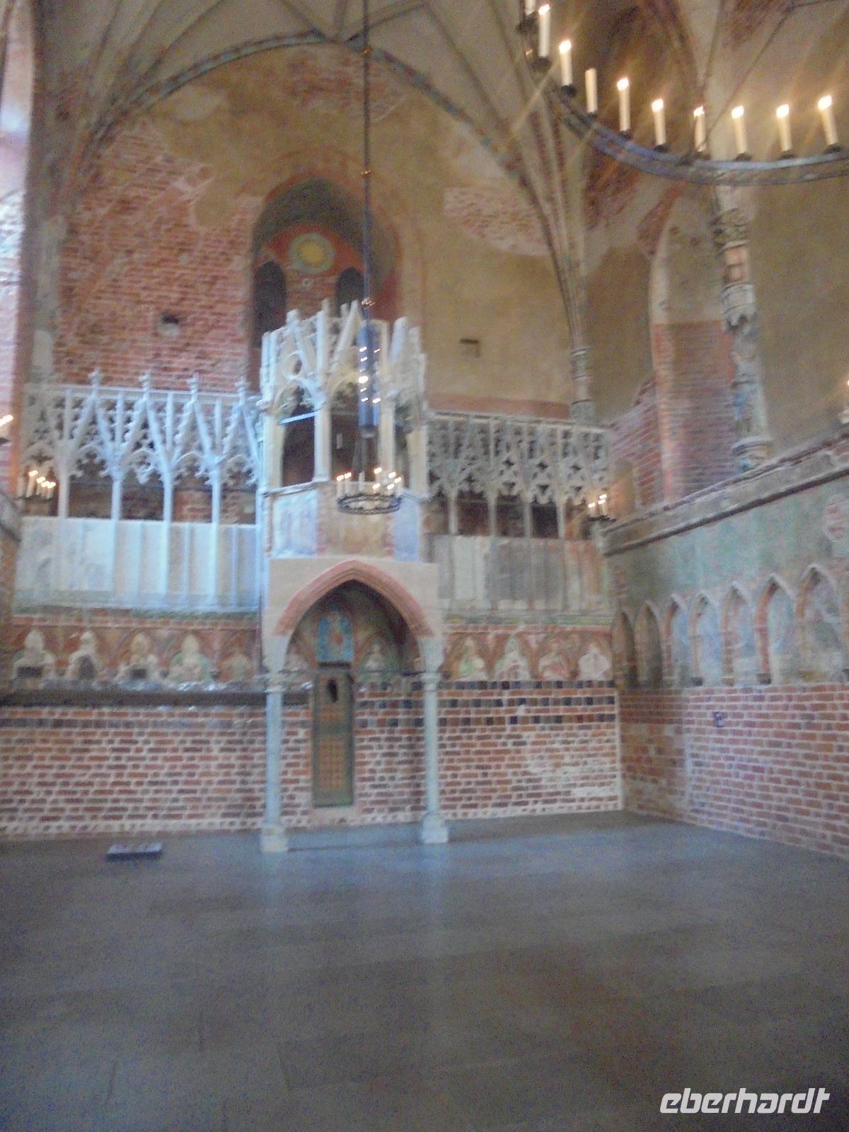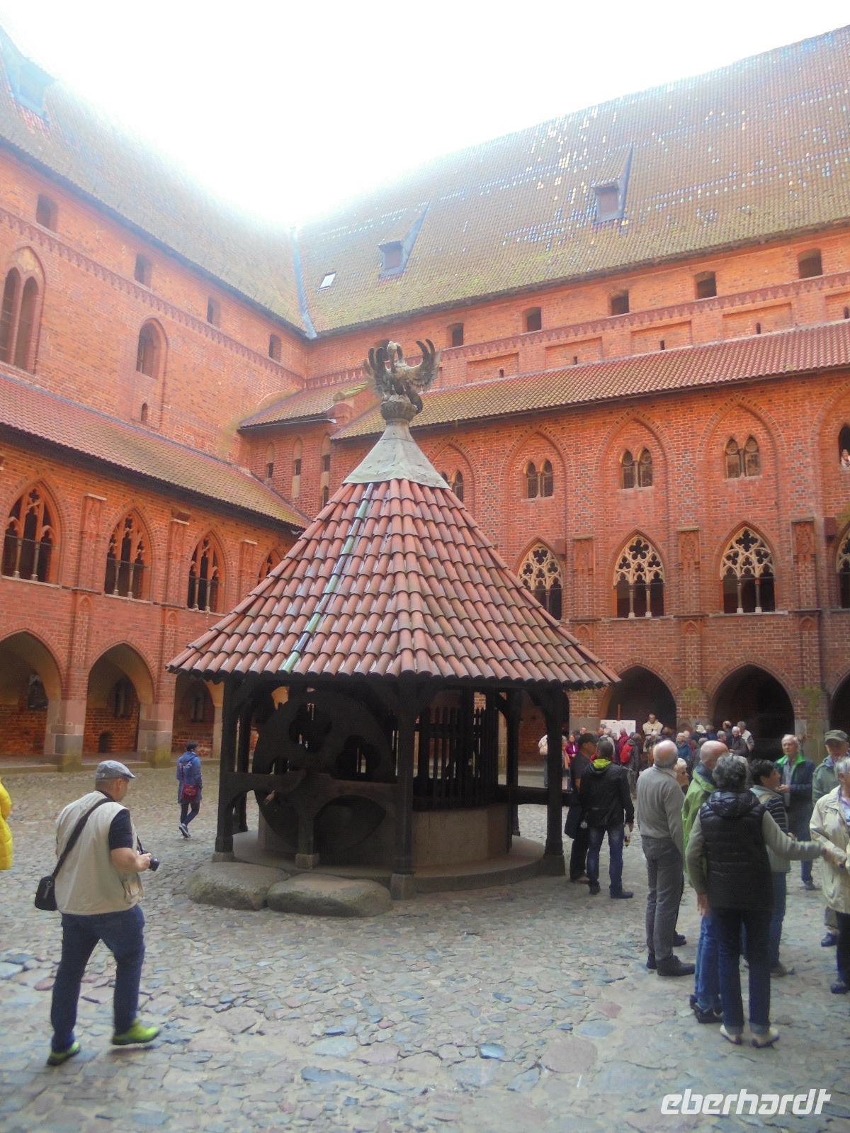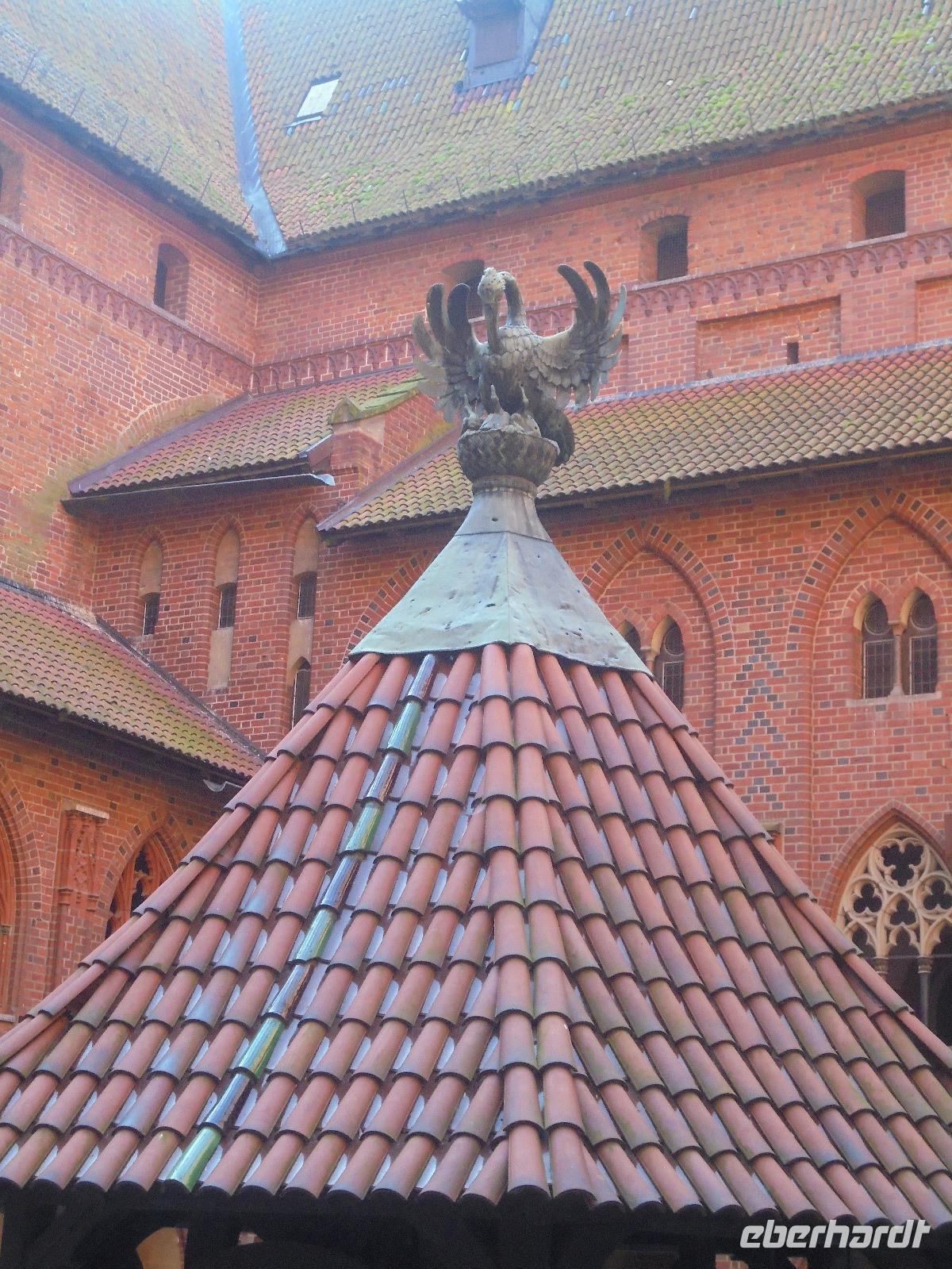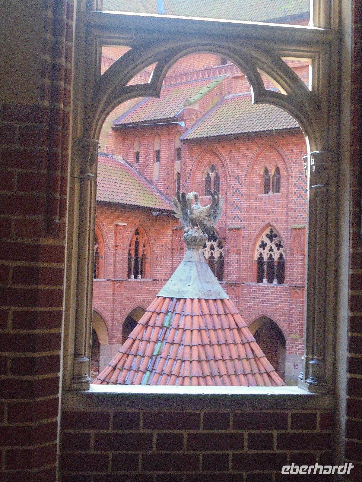 Auf Polnisch heißt sie Malbork und liegt am Fluss Nogat, einem Mündungsarm der Weichsel. Der Deutschen Orden wollte mit dem Bau der riesigen Burg seine Eroberungen im Gebiet der Pruzzen sichern und gleichzeitig die Herrscher umliegender Staaten abschrecken. Ende des 13. Jh. wurde der gewaltige Bau in Backsteingotik errichtet und gilt heute als größtes Backsteingebäude Europas Der älteste Teil der Burganlage heißt Hochschloss und beherbergte als Kernbau ursprünglich Kapelle, Versammlungsraum und Schlafsaal der Mönchskrieger, denn als Kreuzritterorden war der Deutsche Orden Ende des 12. Jh. im Heiligen Land gegründet worden. Beim späteren Ausbau wurde die Kapelle zu einer großen Kirche erweitert die heute die anderen umfangreichen Gebäudeteile überragt. Seit 1309 war die Burg das Zentrum des Ordensstaates, blieb bis zu ihrer Verpfändung 1454 Sitz der Hochmeister des Deutschen Ordens.