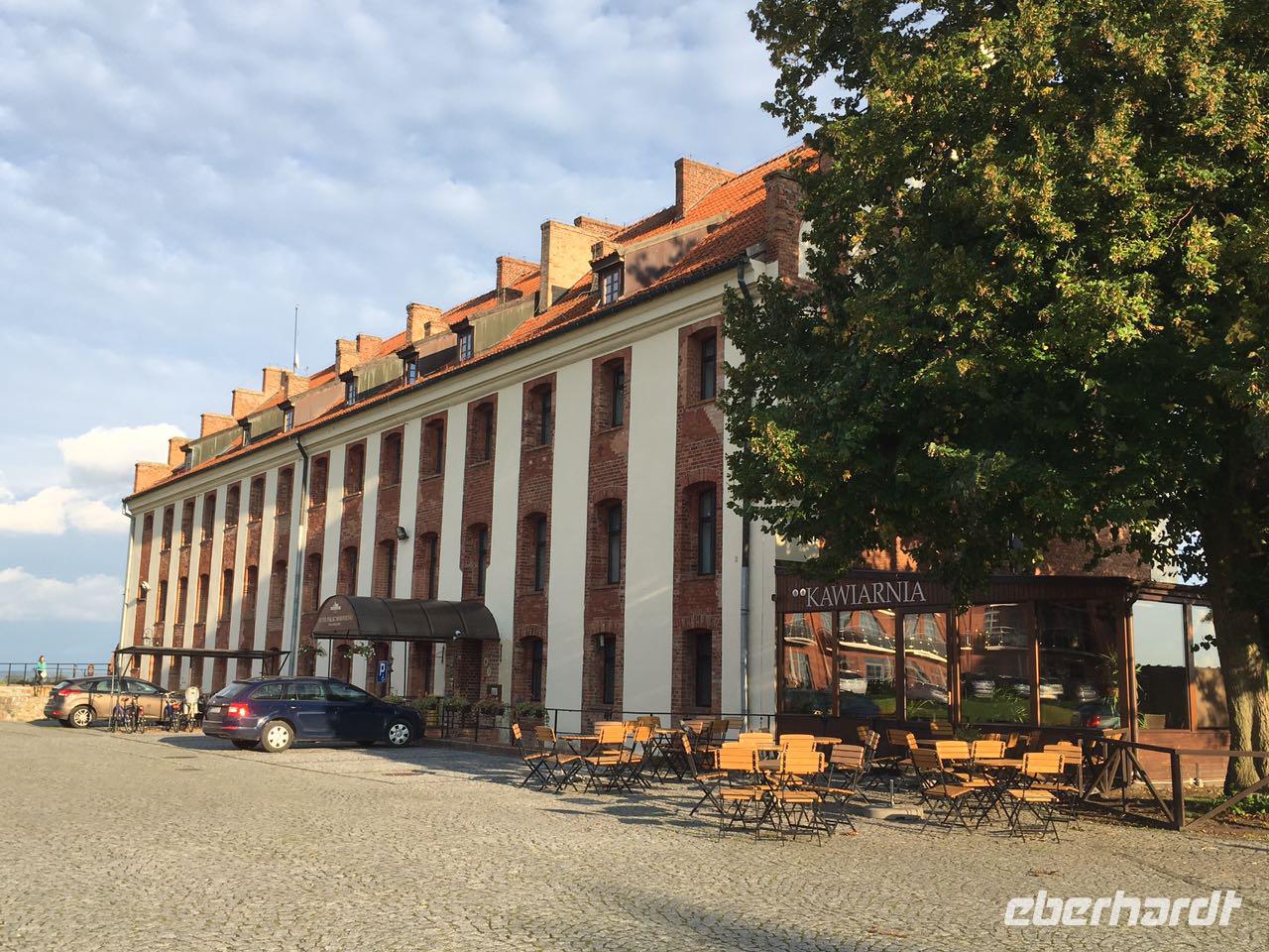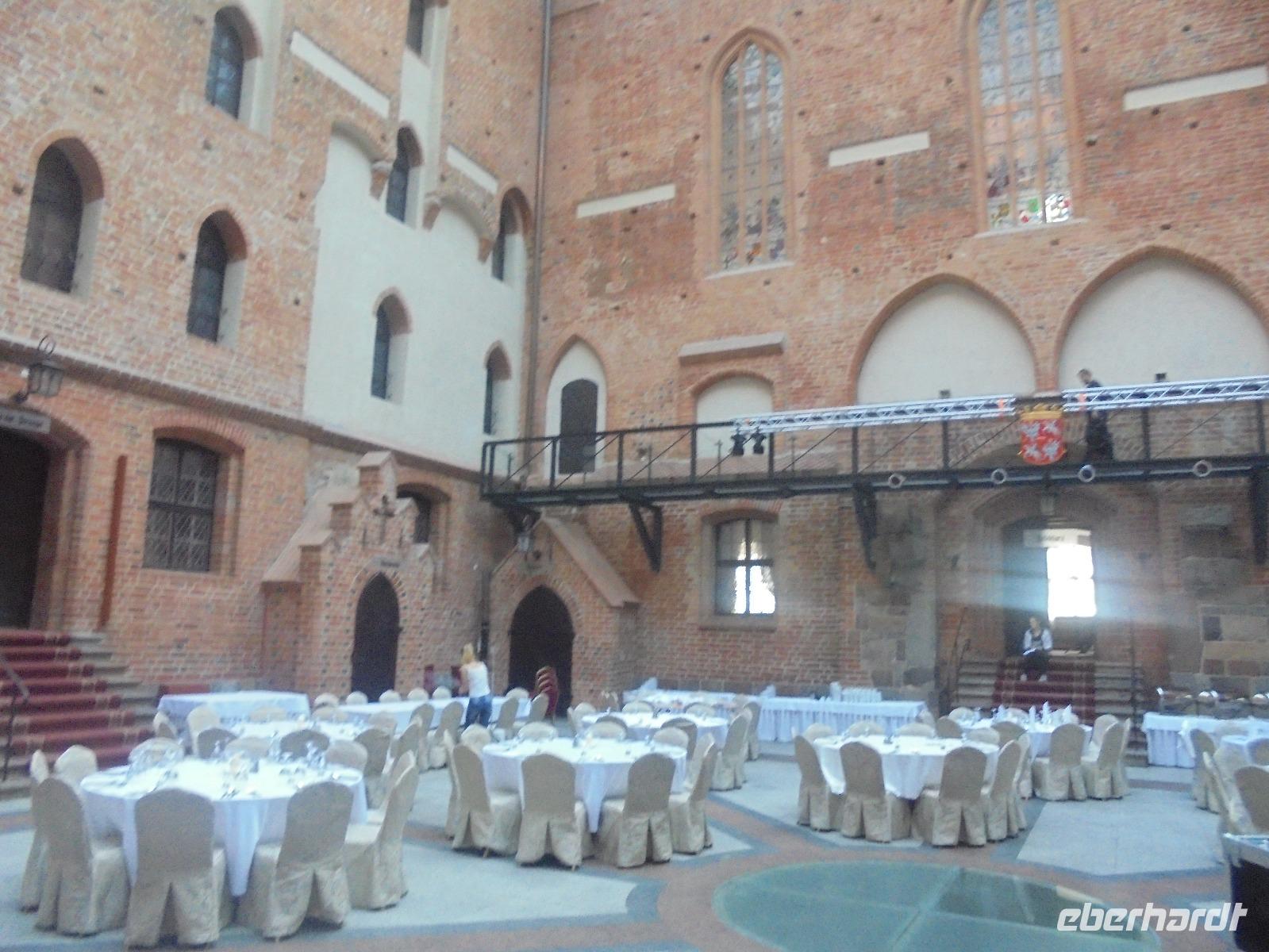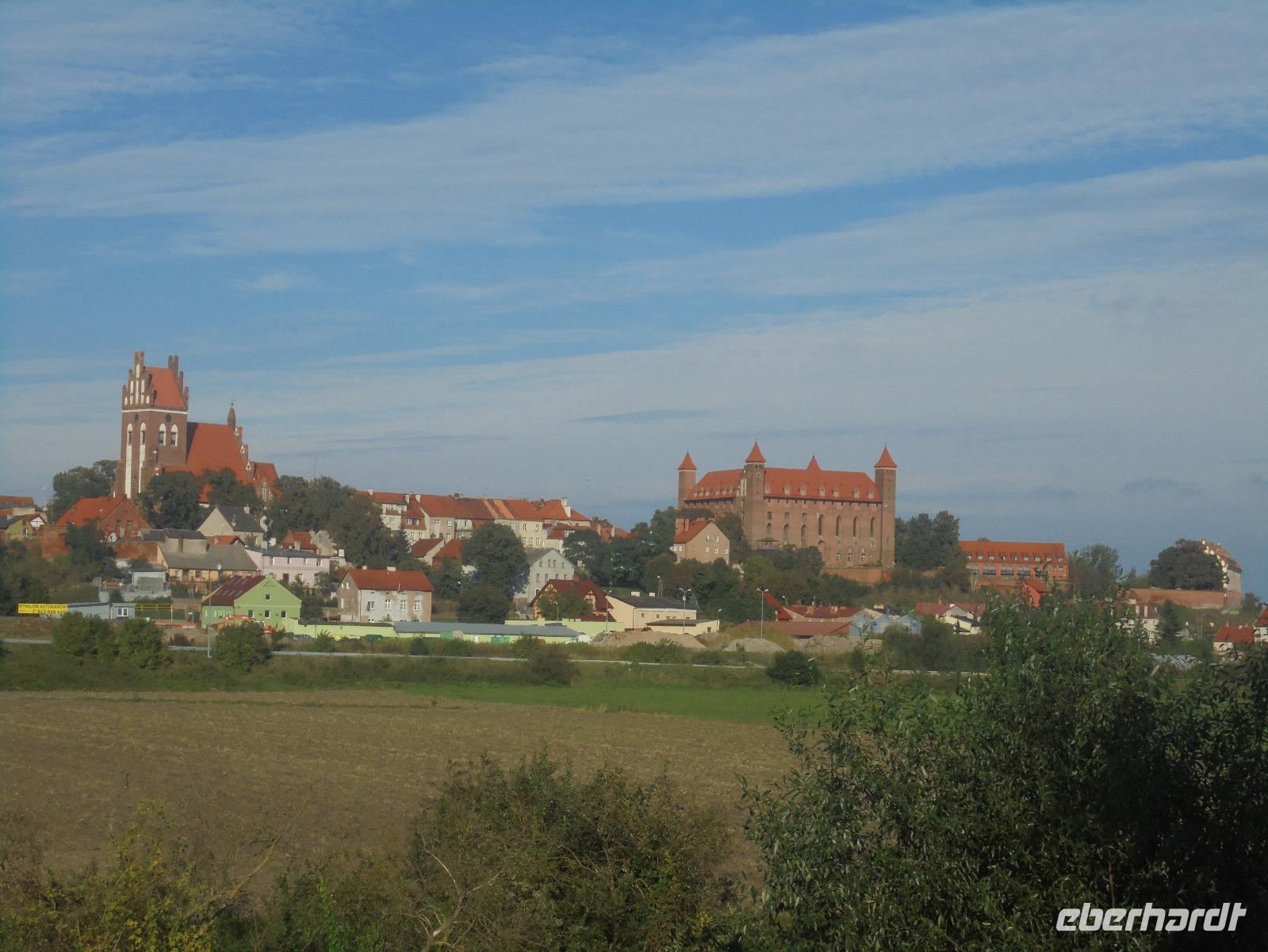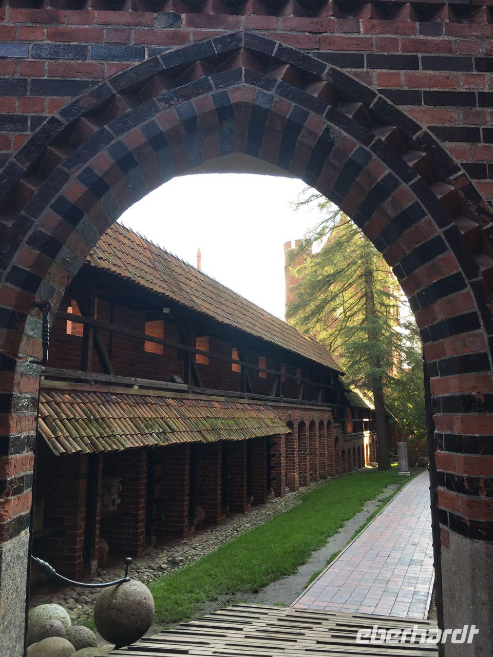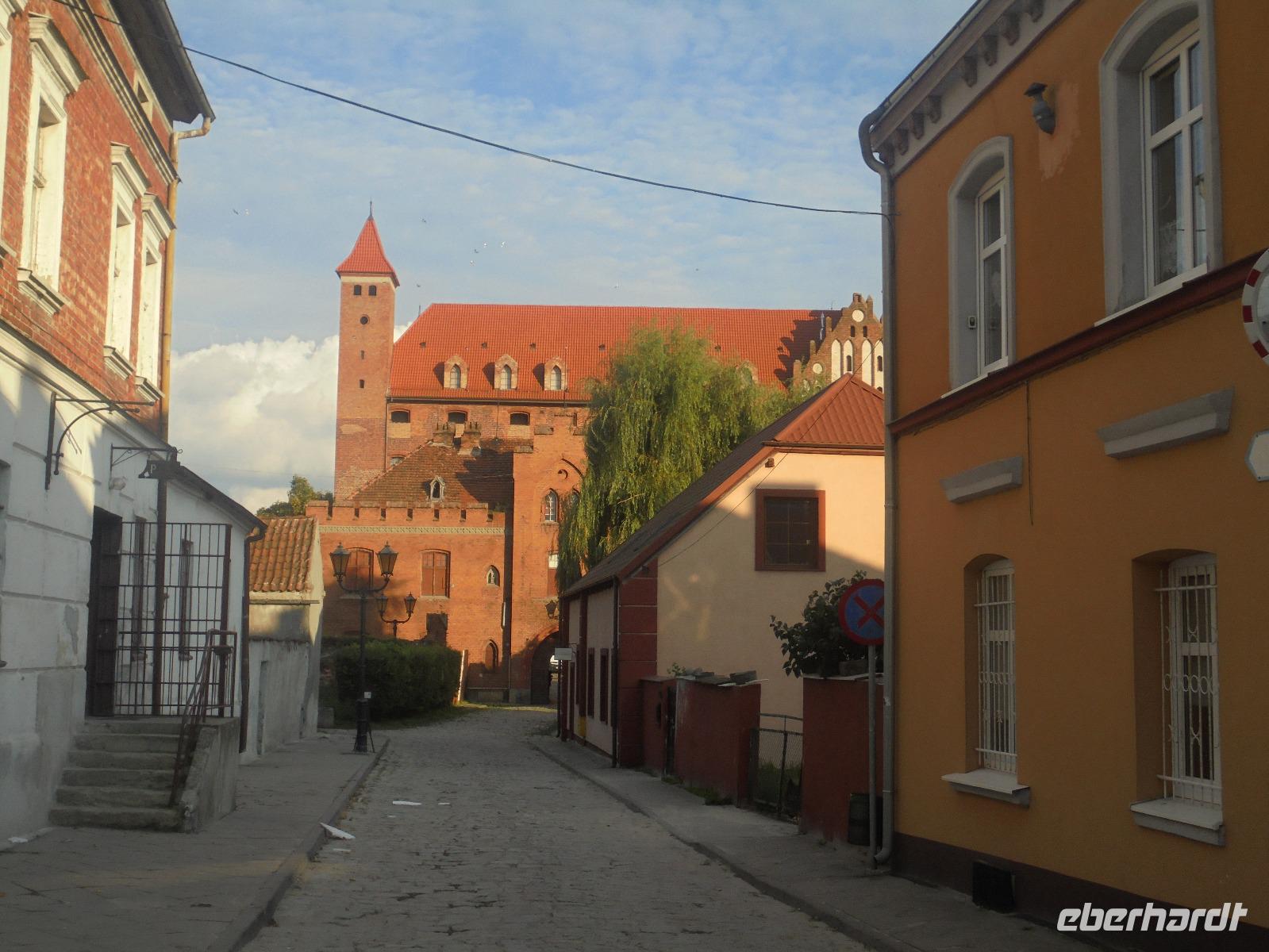Direkt daneben liegt die kastellartige Deutschordensburg, die als größte Burg der Kreuzritter westlich der Weichsel schon Ende des 13. Jh. erbaut wurde. Charakteristisch sind die den Zentralbau weit überragenden vier Ecktürme des annähernd auf quadratischem Grundriß errichteten riesigen Baues. Wir hatten vor dem Abendessen noch Zeit, die uns zum Hotelgelände gehörende Burg anzusehen oder in die danebenliegende recht kleine Altstadt zu gehen.
