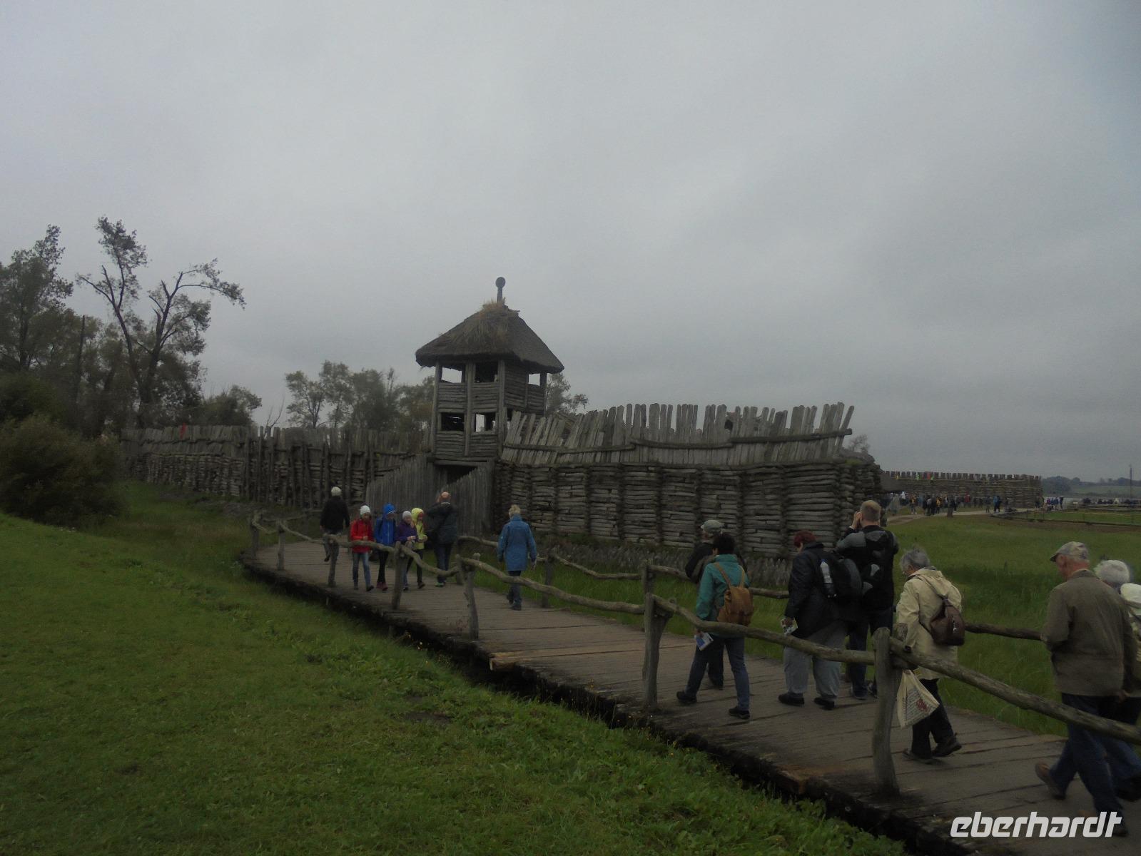 Heute war unser erstes Ziel ein prähistorisches Dorf. Biskupin gilt als eines der interessantesten Freilichtmuseen in Europa und befindet sch an einer der ehemals größten Ausgrabungsstätten PolensHier wurden anhand der Funde gleich mehrere Siedlungen rekonstruiert. Das älteste Biskupin kann man heute auf etwa 700-400 v. Chr. datieren und befindet sich damit in der letzten Stufe der Bronze- und der ersten Stufe der älteren Eisenzeit, die man meist Hallstattzeit. Nennt. Oft allerdings liest man, Biskupin gehöre stilistisch in die spätbronzezeitliche Lausitzer Kultur. Seit den 30er Jahren des 20. Jh. wurde dieses ehemals befestigte Dorf systematisch untersucht und gilt heute als eines der Paradebeispiele eisenzeitlicher Dörfer und ihrer Rekonstrulktion.