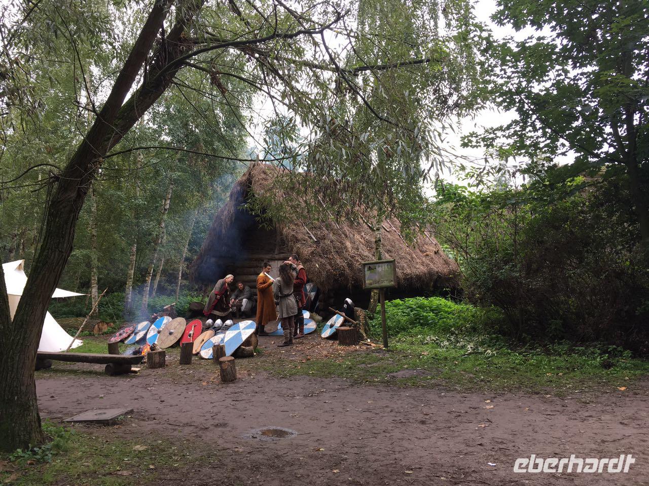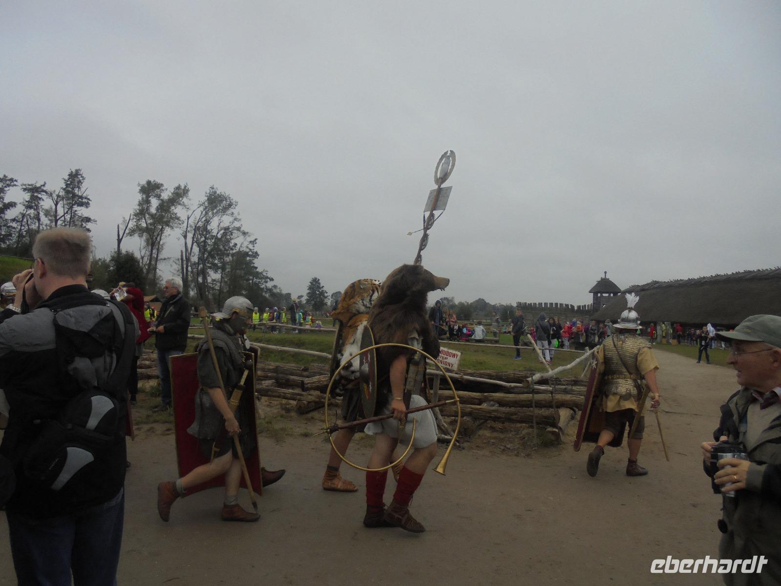 Wir kamen gerade recht zum archäologischen Festival, das mit vielen Schülergruppen und nach verschiedenen Stilepochen kostümierten Darstellern die rekonstruierten Siedlungen der Eisenzeit und des Mittelalters belebten. So marschierten an uns eisenzeitlich und in Felle gekleidete Krieger ebenso vorbei wie römische Soldaten...