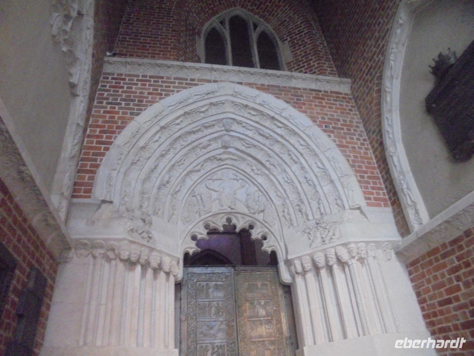 Daneben ist die Gnesener Bronzetür, eine romanische Tür im Südportal der Erzkathedrale, die bedeutendste Sehenswürdigkeit des Domes. Die zweiflügelige Tür vom Ende des 12. Jh. stell in 18 Reliefs das Martyrium Wojciechs (Adalbert von Prag) dar und illustrieren in bemerkenswerter Weise die Legenden um Leben, Tod und Wirkung des ersten Heiligen Polens.