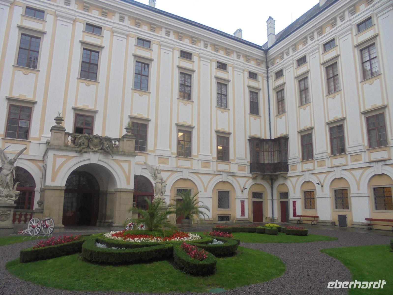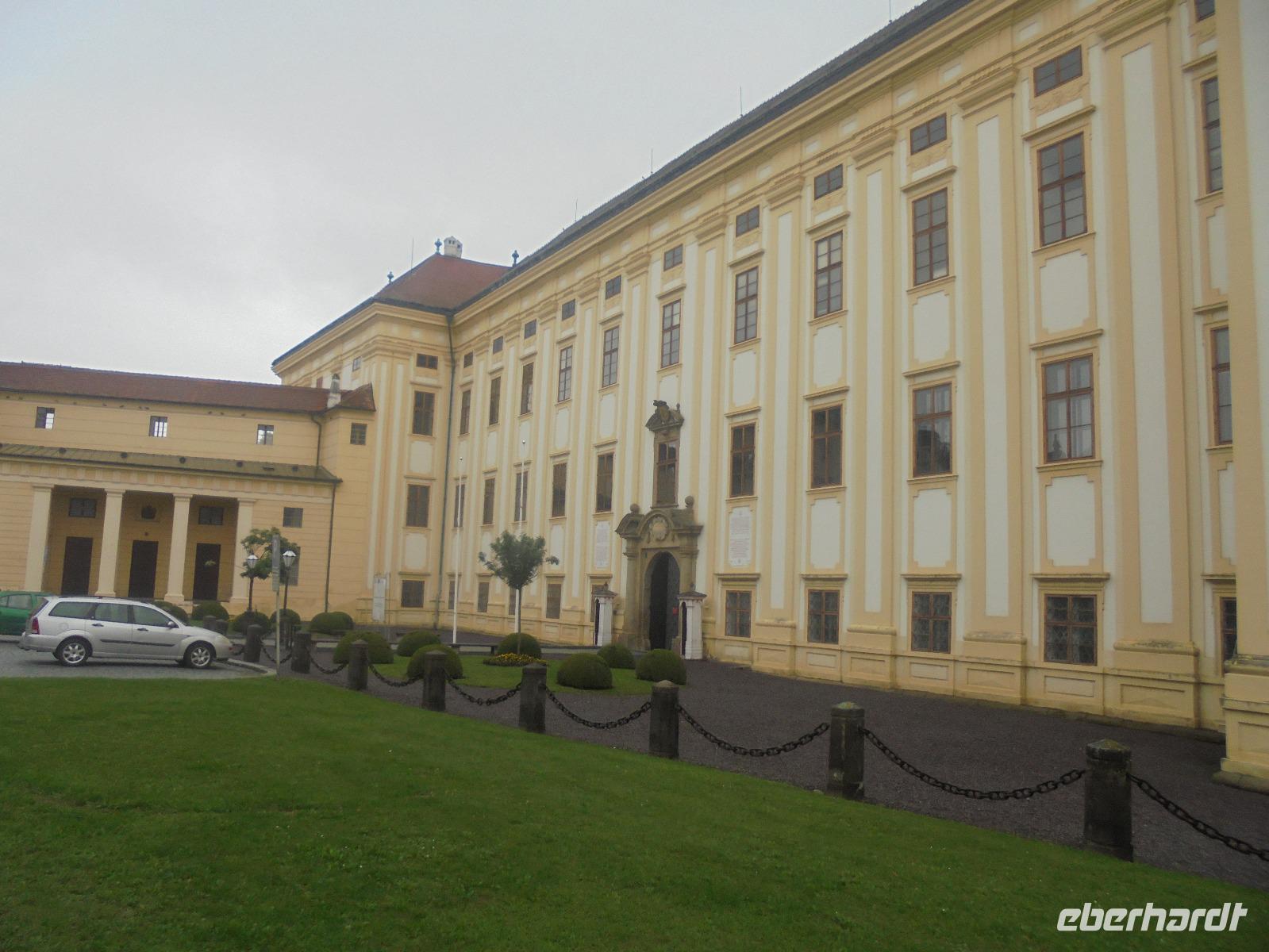 Nachmittags ging es dann in das hübsche Städtchen Kromeriž, jenen 30.000-Einwohner-Ort, der auf Deutsch „Kremsier" genannt wird. Er ist in die Geschichte eingegangen als Hauptresidenz der Olmützer Bischöfe und wurde nur vor ein paar Jahren zur schönsten Stadt Tschechiens gewählt. Schon seit 1998 zählt auch dieser Ort - d.h. sein Erzbischöfliches Schloss und der dazugehörige Park zum UNESCO-Weltkulturerbe. Bei einer Führung wurde uns die Bischofsresidenz etwas nähergebracht - wir sahen nicht nur den gewaltigen „Großen Stadtplatz", sondern das danebenliegende gewaltige Schloss - einen barocken Um- und Ausbau der im 30jährigen Krieg zerstörten alten Burg - mit seinem hübschen Innenhof. Bei einem Spaziergang verschafften wir uns auch einen Überblick über den nach französischem Vorbild angelegten gartenähnlichen Teil des Schlossparks. Später ging es dann in den heutigen Hauptort Mährens, nach Brünn, wo am Stadtrand unser Hotel für Übernachtung und Abendessen lag.
