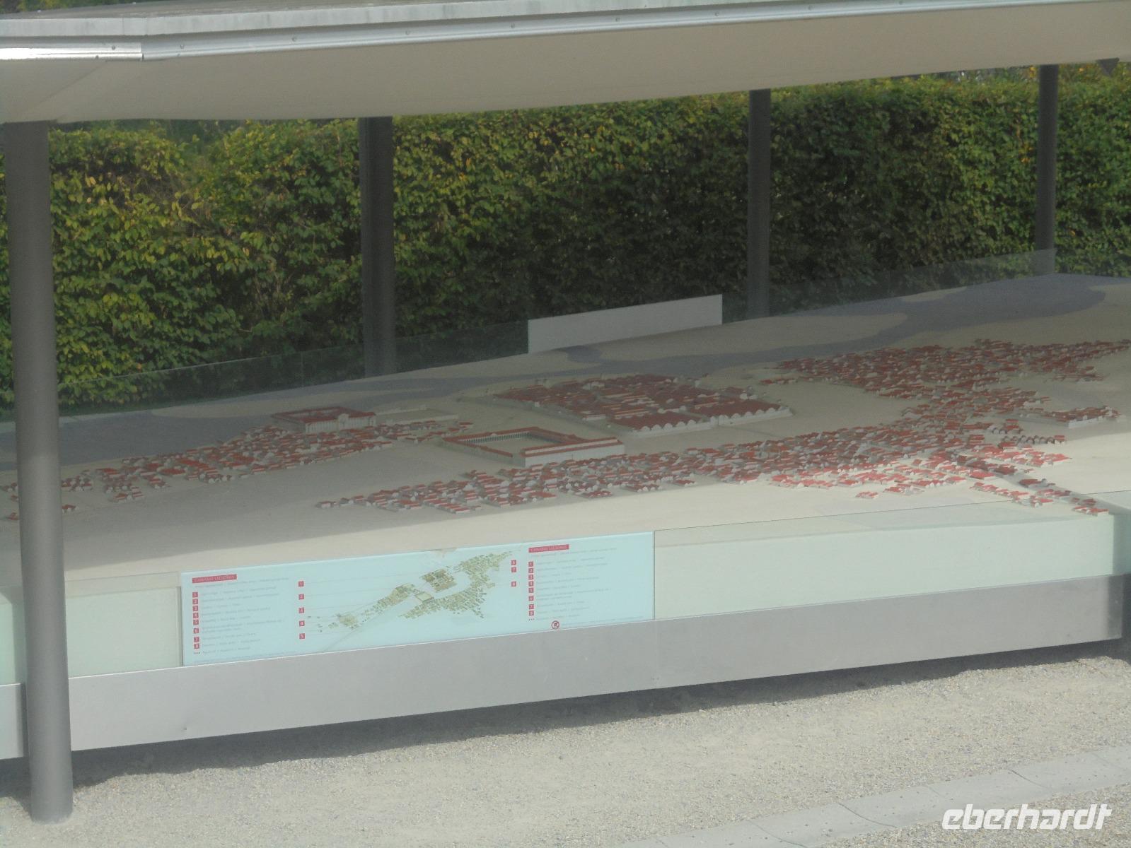 Nach kurzer Weiterfahrt erreichten wir den Archäologischen Park der Römerstadt Carnuntum. Eine der bedeutendsten römischen Siedlungen im Norden des antiken Reiches wurde hier ausgegraben und auf den gefundenen Resten wurde eine Anzahl der Gebäude nahezu originalgetreu rekonstruiert. Diese Römersiedlung konnten wir während einer sachkundigen Führung genauer unter die Lupe nehmen. Eine Therme - eine öffentliche römische Badeanstalt - dann eine historische Toilettenanlage, eine prunkvolle Villa und ein bescheideneres Wohnhaus konnten wir besichtigen und so einen Eindruck von der Lebensweise in einer römischen Stadt an der Bernsteinstraße gewinnen.