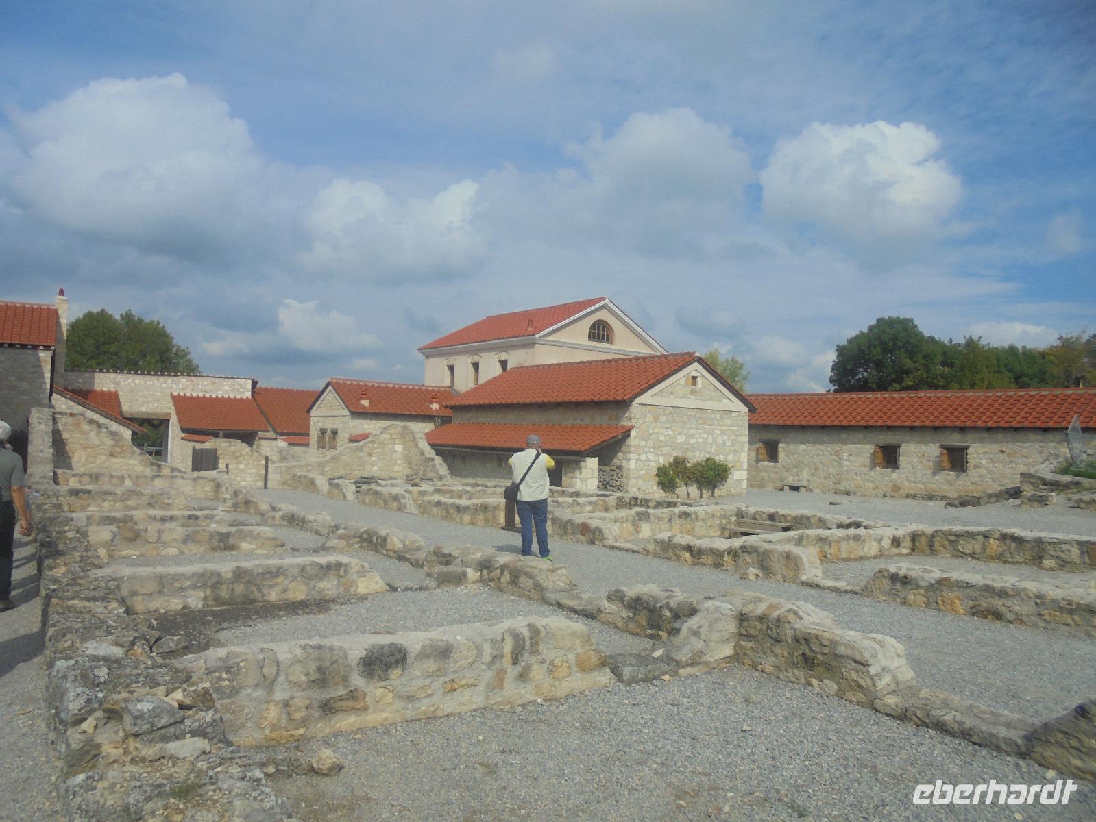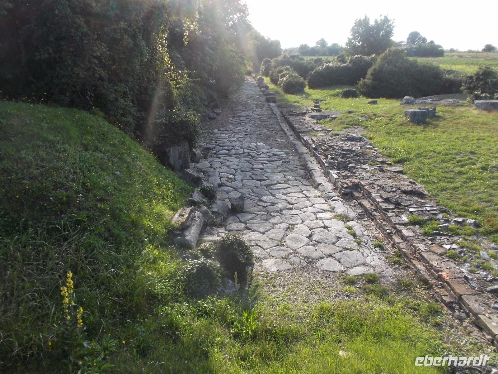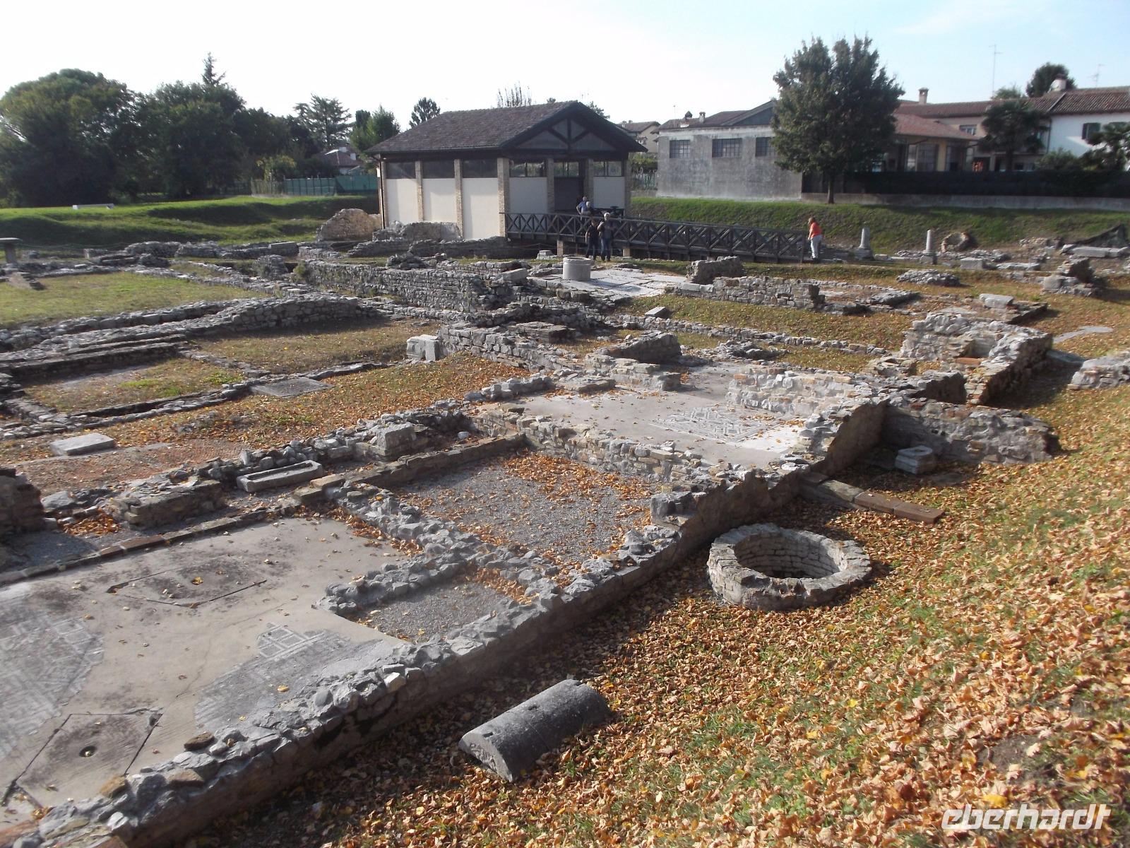 Nach dem Besuch der Basilika und ihrer grandiosen Mosaike hatten wir Zeit, noch an den Ausgrabungen und den Resten der antiken Stadt und des römischen Forums vorbeizuschlendern, die die Bedeutung des vorchristlichen Handelsplatzes und Verkehrszentrums Aquileia verdeutlichten: ursprünglicher Endpunkt der Handelsrouten wie Bernsteinstraße am Mittelmeer bis mindestens zur Völkerwanderungszeit, vor dem Aufstieg Venedigs zur Handelsmetropole an der Adria und bedeutender Anknüpfungspunkt an den Asienhandel und die weltweit bekannte Seidenstraße.