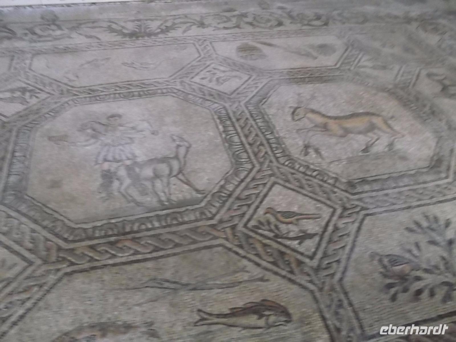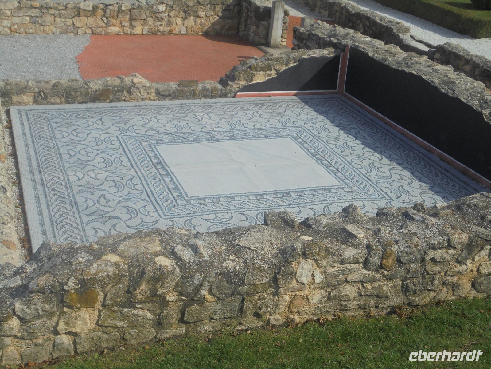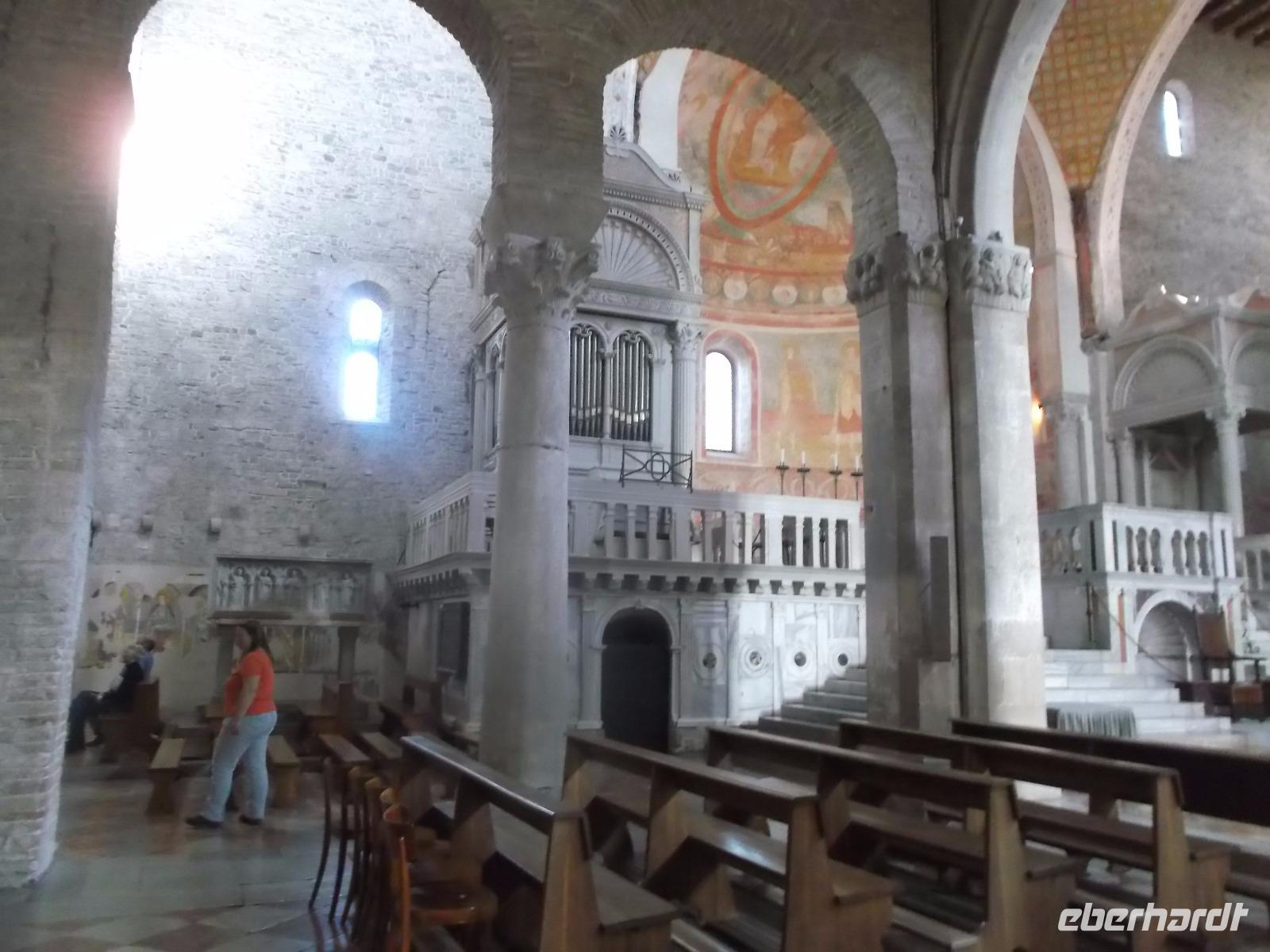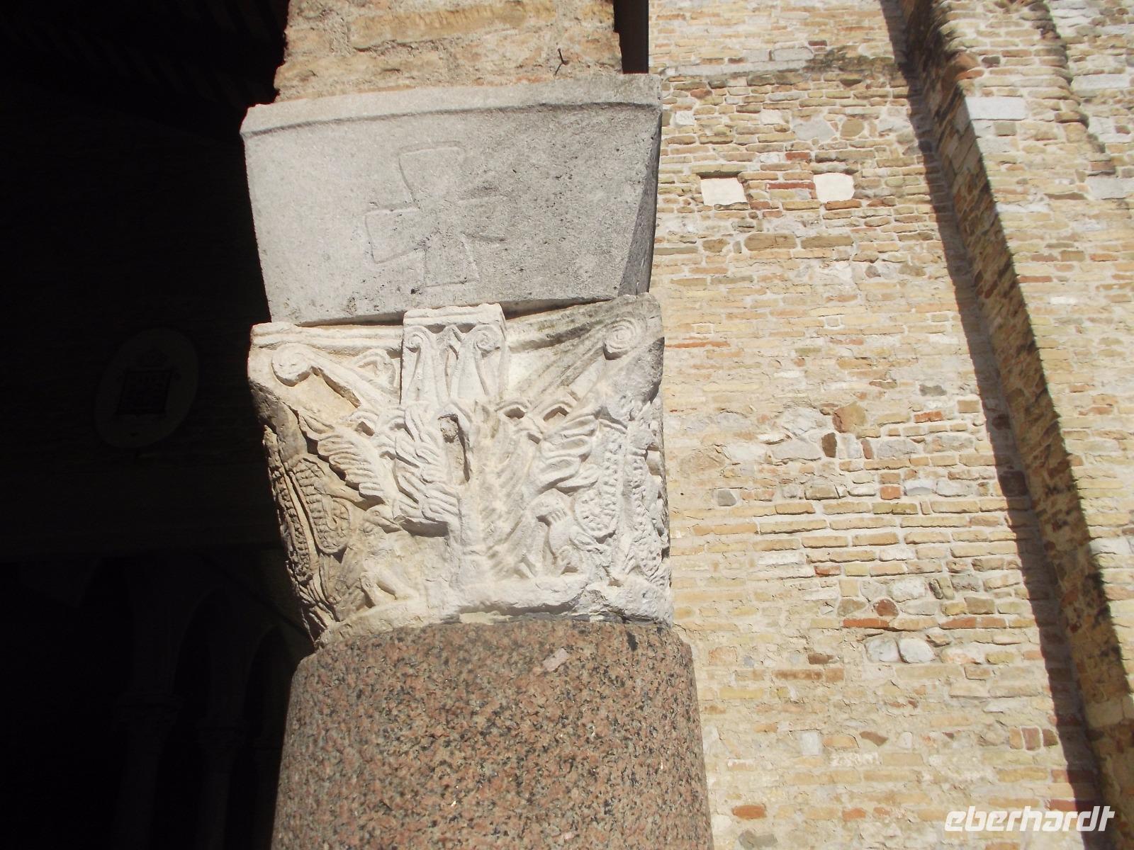 Unser nächstes Ziel war das nicht allzuweit entfernte Aquileia. In römischer, spätantiker und der Völkerwanderungszeit endeten hier zahlreiche Römerstraßen, wohl auch die Bernsteinstraße. Das war noch bevor sich die Stadt Venedig entwickelte. Aquileia war ein äußerst wichtiger Verkehrsknotenpunkt und hatte in der Kirchengeschichte immense Bedeutung, denn das Patriarchat von Aquileia, das erst im 18. Jh. aufgelöst wurde, als Aquileia schon seit Jahrhunderten kaum noch Bedetung besaß, soll von keinem Geringeren als dem heiligen Evangelisten Markus im Auftrag von Petrus eingerichtet worden sein. Dies erklärt die gewaltige, großartige frühchristliche Basilika hier, die schon lange zum Weltkulturerbe gehört. Hauptgrund dafür und Usprung der Berühmtheit des Ortes sind vor allem seine Mosaikböden. Sie stammen aus verschiedenen Zeitepochen, liegen teilweise in mehreren Schichten übereinander und bilden die größten frühchristlichen Mosaikflächen Italiens Aus der Zeit des Bischofs Theodorus um 300 n.Chr stammen die „theodorischen Mosaiken", über die spätere Bauten des 11. Jahrhunderts gesetzt wurde. Zum Teil auf Glasstegen laufend konnten wir die gewaltigen Ausdehnungen qualitätvoller Mosaiken bewundern, von denen allein nahe dem Glockenturm fast 650 m² zu besichtigen sind. Sie zeigen vor allem geometrische Formen und Tiere. Im Gegensatz zu den kämpferischen und Jagdszenen römischer Mosaike haben hier die Tieren betont ruhige Haltung - sollen sie doch den Charakter des friedlichen Zusammenlebens der neuen christlichen Religion versinnbildlichen.