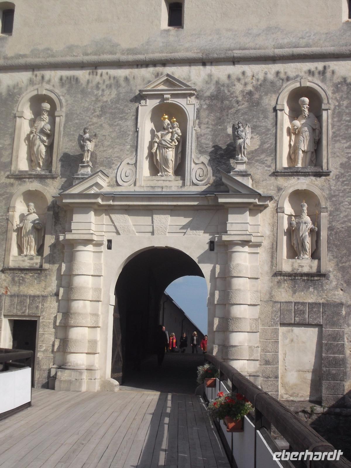 Mittags verabschiedeten wir uns von Sopron und fuhren wieder ins Österreichische, wo wir schon recht bald die Burg Forchtenstein erreichten, die seit dem 17. Jh. im Besitz der unvorstellbar reichen Adelsfamilie Eszterhazy war. Diese bauten die Burg repräsentativ aus und nutzen sie zunächst als Festung und später als Schatz- und Waffenkammer. Auf einer exklusiven Führung durften wir dann dieses Kleinod und viele seiner Geheimnisse entdecken.