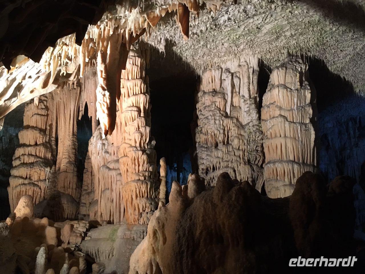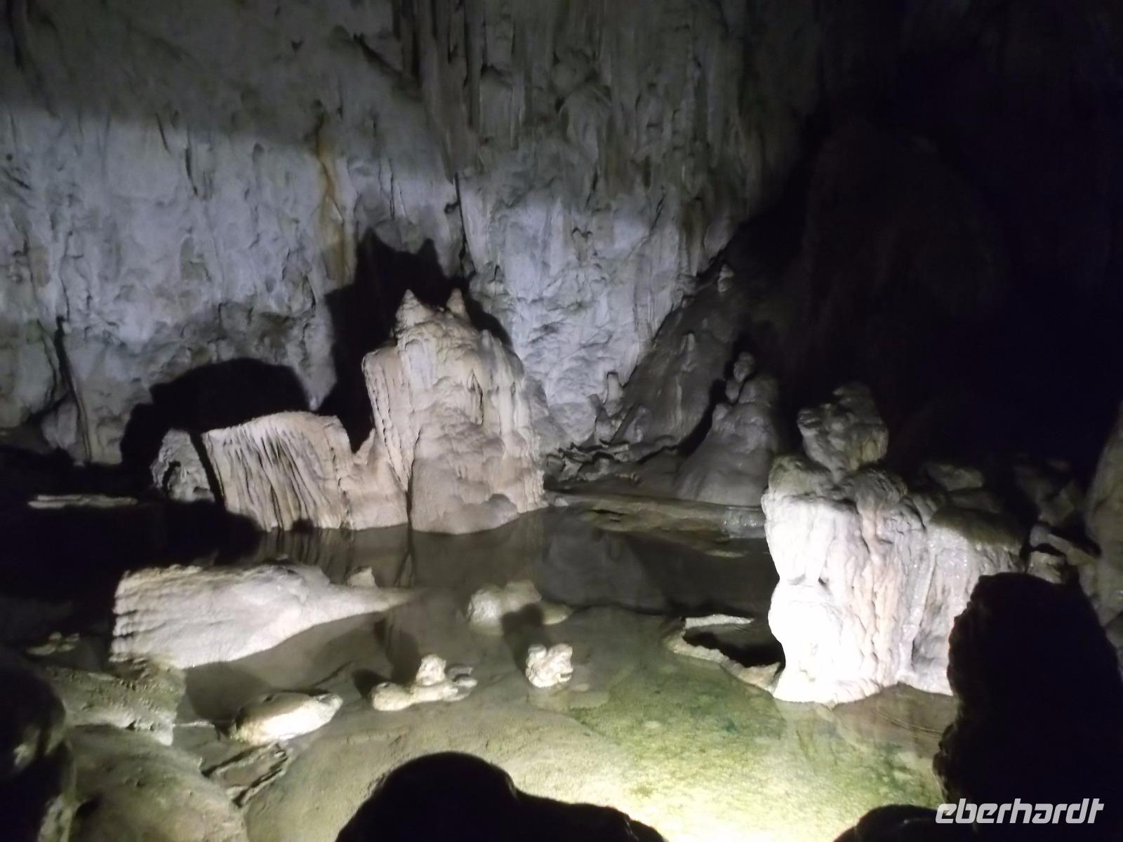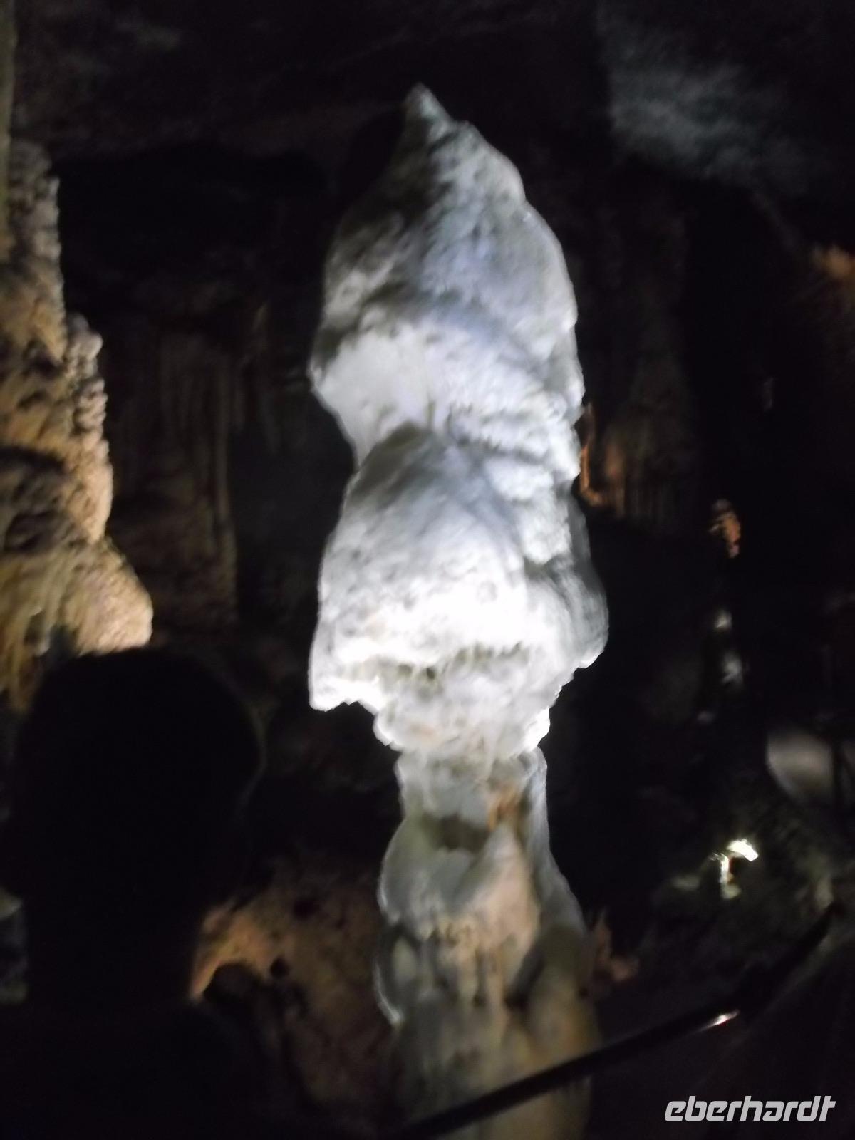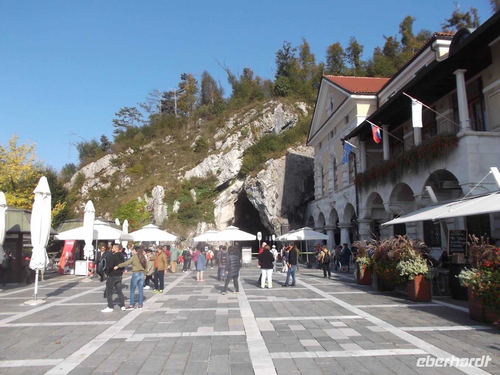 Heute Morgen waren wir schon unterwegs nach Italien, unterbrachen unsere Fahrt aber an einer weltbekannten Sehenswürdigkeit: den Adelsberger Grotten (Postojna Jama). Die unterirdischen Grotten- und Tropfsteinwelten würden wir bei einer Führung kennenlernen. Im Karstgebiet des riesigen Kalksteinplateaus um die slowenische Stadt Postojna gibt es das zweitgrößte für Touristen erschlossenen Tropfsteinhöhlensystem der Welt, denn der inzwischen erschlossene und ganzjährig geöffnete Teil der Grotten umfasst mehr als 20 km Höhlengänge. Um bis zum interessantesten Teil zu gelangen, wird die Höhle zum Teil mit einem Zug befahren. Das System der Adelsberger Grotten weist viele Höhenunterschiede auf und besteht im Wesentlichen aus drei Hauptebenen, auf deren unterster noch heute der Fluss Pivka fließt, der diese gewaltige Karsterscheinung im Laufe von Jahrzehntausenden geschaffen hat. In einer knappen Milion Jahre hat der Fluss den löslichen Kalkstein erodiert und damit eine Art Zauberwelt aus Tropfsteinen geschaffen. Über eine Stunde wanderten wir staunend durch die mit teilweise skurrilen Tropfsteinformen angefüllten Gänge, Kammern und Höhlungen, bevor wir - wie anfangs kilometerweit eingefahren - uns eine kleine Bahn wieder nach draußen ans Sonnenlicht brachte.