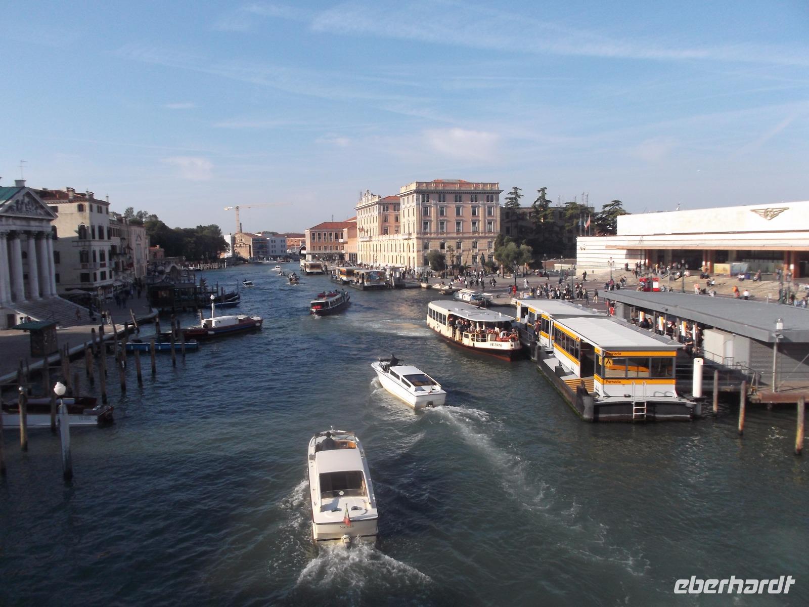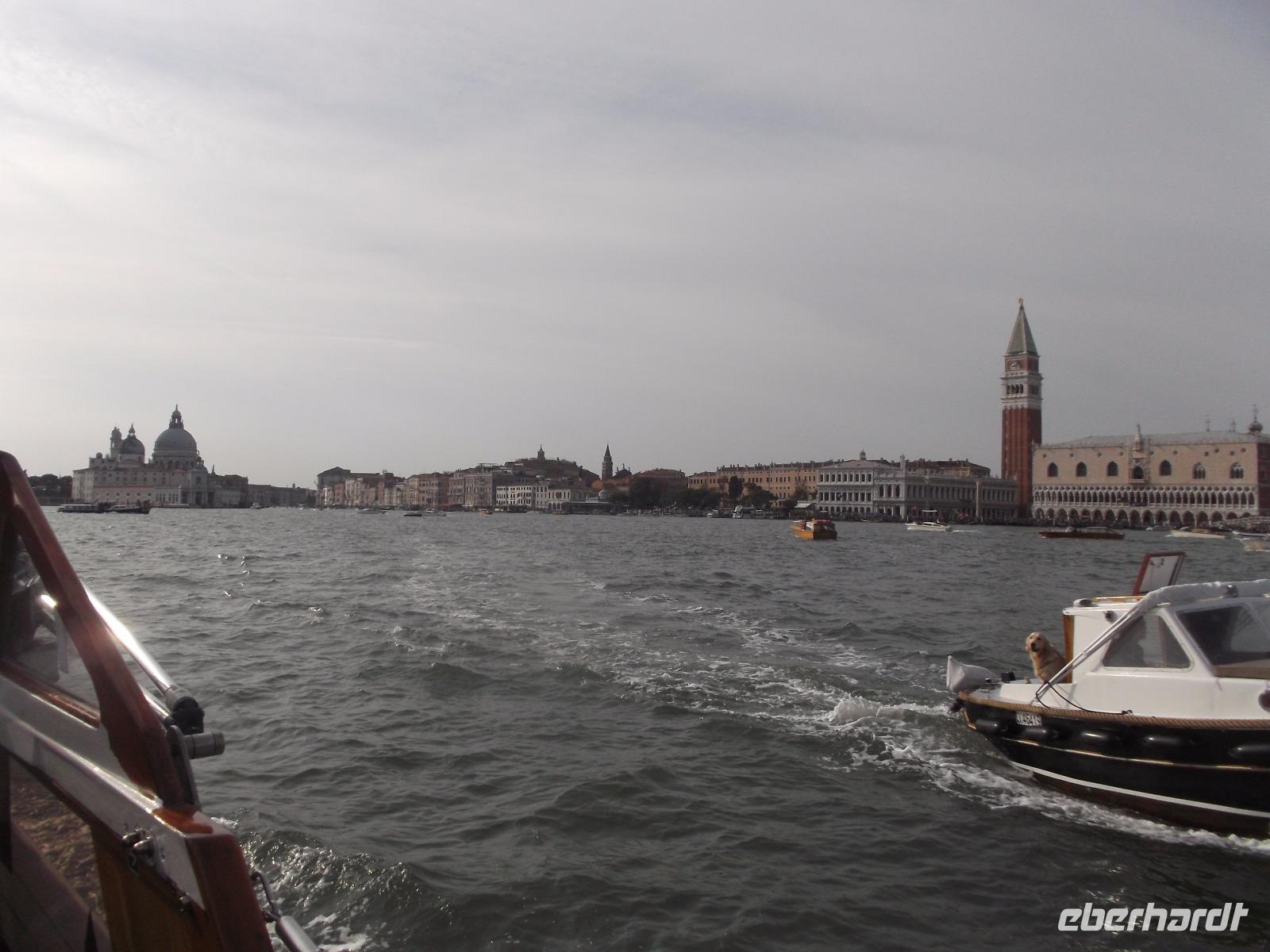 Nachmittags trafen wir uns dann wieder am Campanile und gingen gemeinsam zu einer Anlegestelle an der Lagune, wo uns ein gemietetes Boot erwartete, mit dem wir auf einer Bootsfahrt entlang des Canale Grande zum Bahnhof zurückkehrten. Hier ging es per Zug zum Bahnhof in Hotelnähe, wo uns Chauffeur Harald mit dem Bus ins Hotel zurückbrachte.