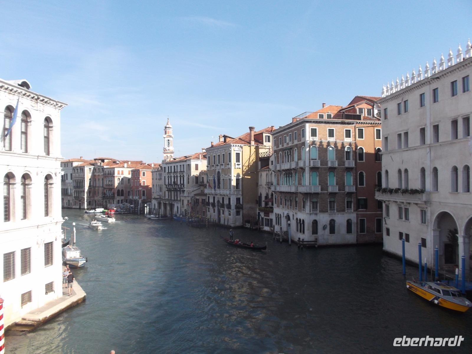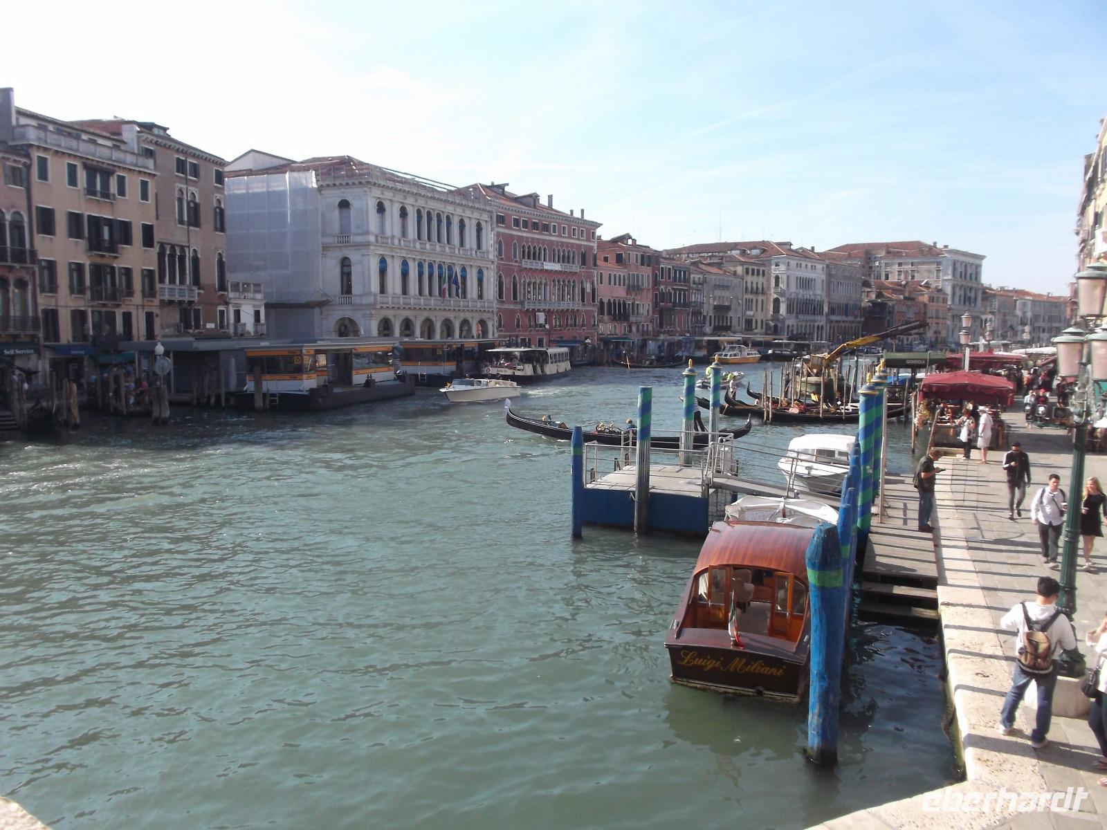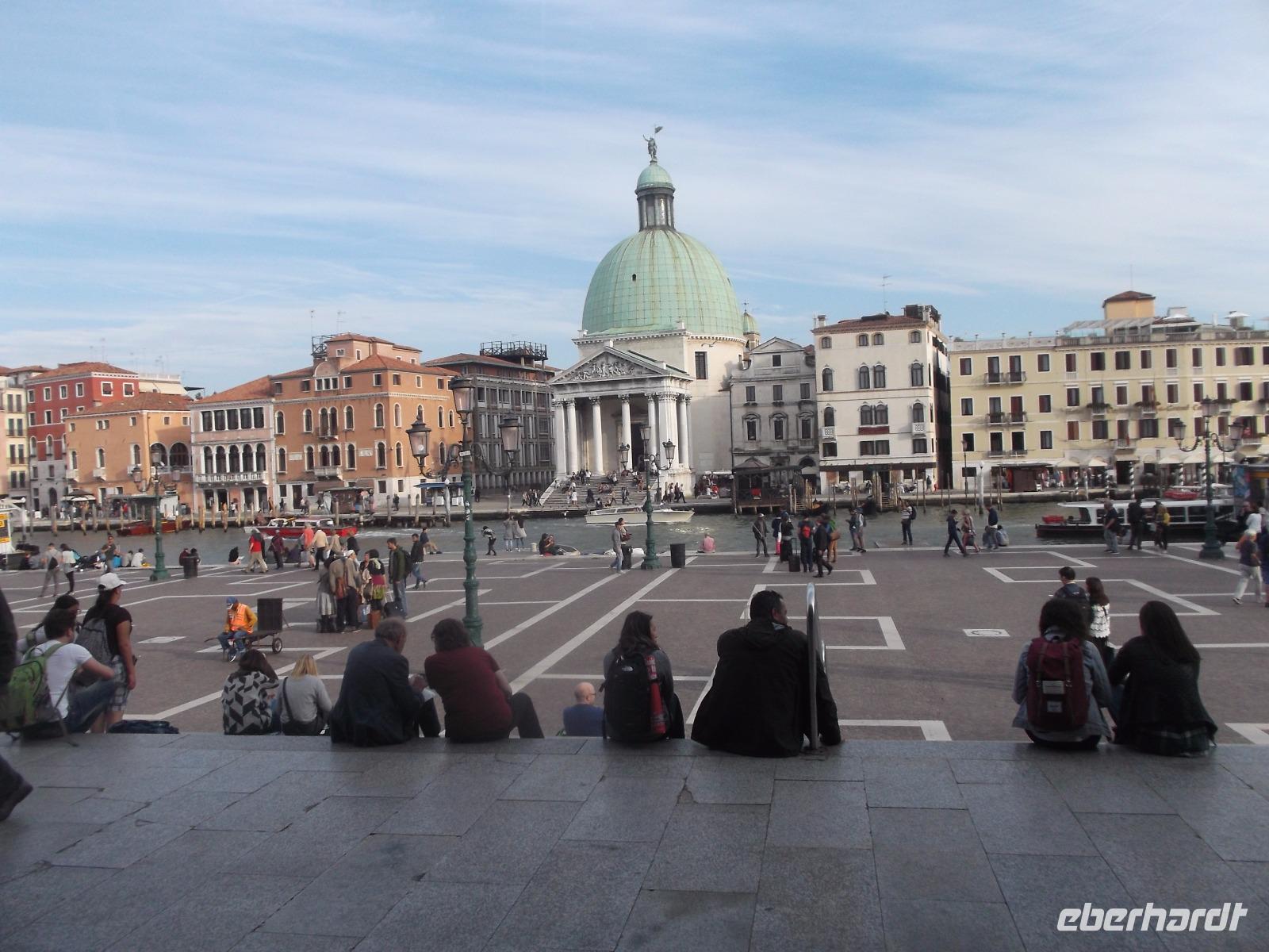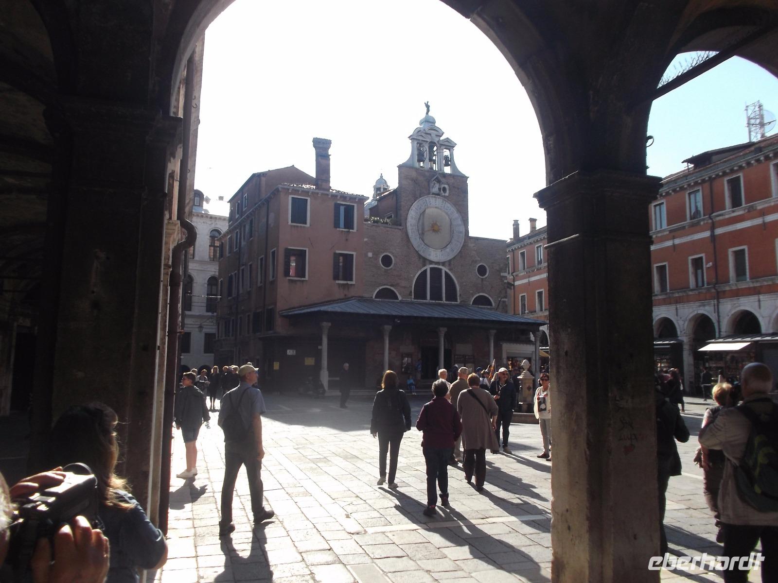 Die weltbekannte Lagunenstadt, auch sie UNESCO-Weltkulturerbe, war unser heutiges Ziel. Nach dem Frühstück brachte uns der Bus zum nahe dem Hotel gelegenen Regionalbahnhof, von dem aus wir mit dem Zug nach Venedig fuhren. Am Bahnhof St. Lucia erwartete uns Stadtführer Massimo, der uns sogleich durch Alt-Venedig zu führen begann, in Richtung Rialto-Brücke und Markusplatz.