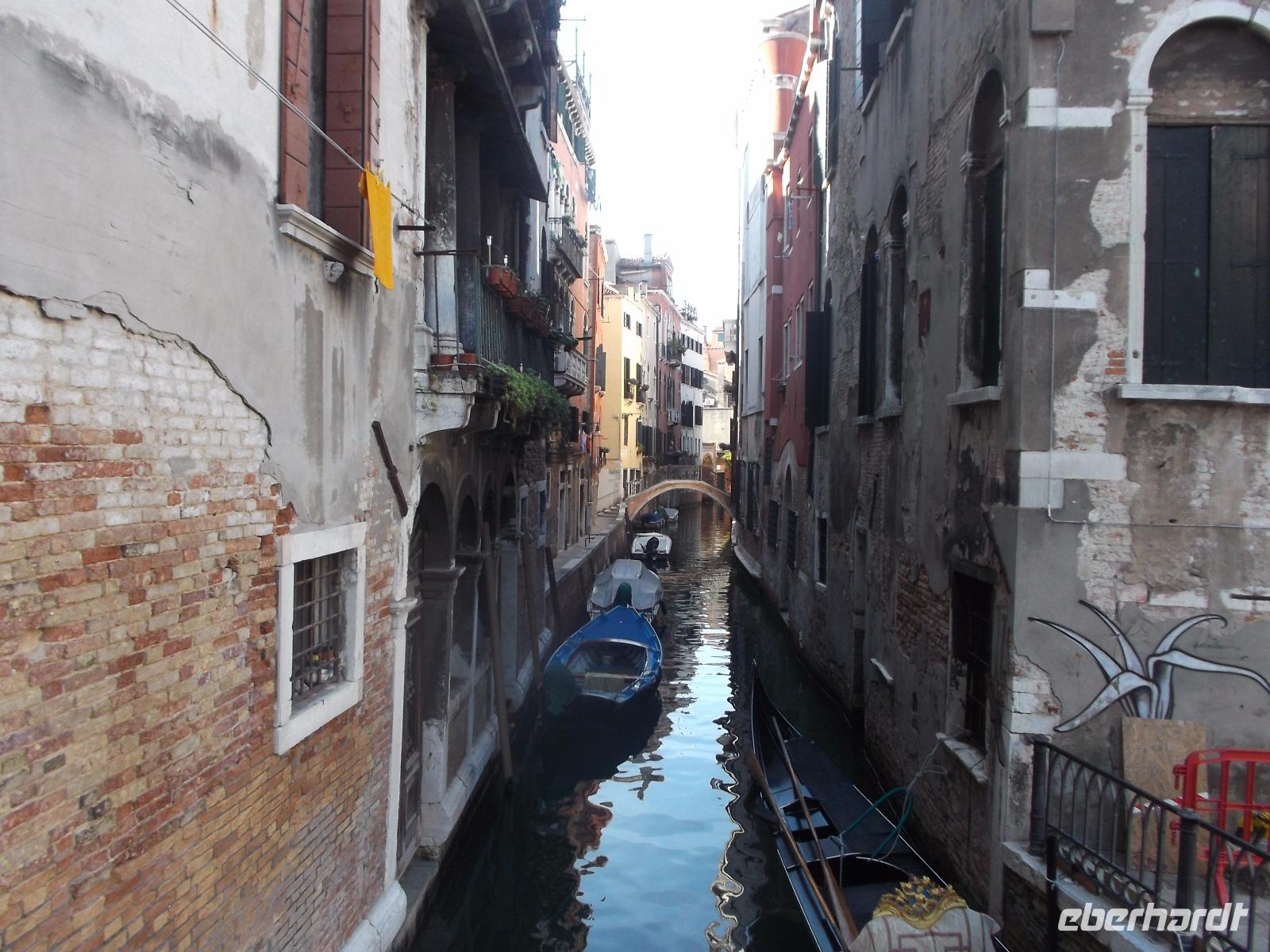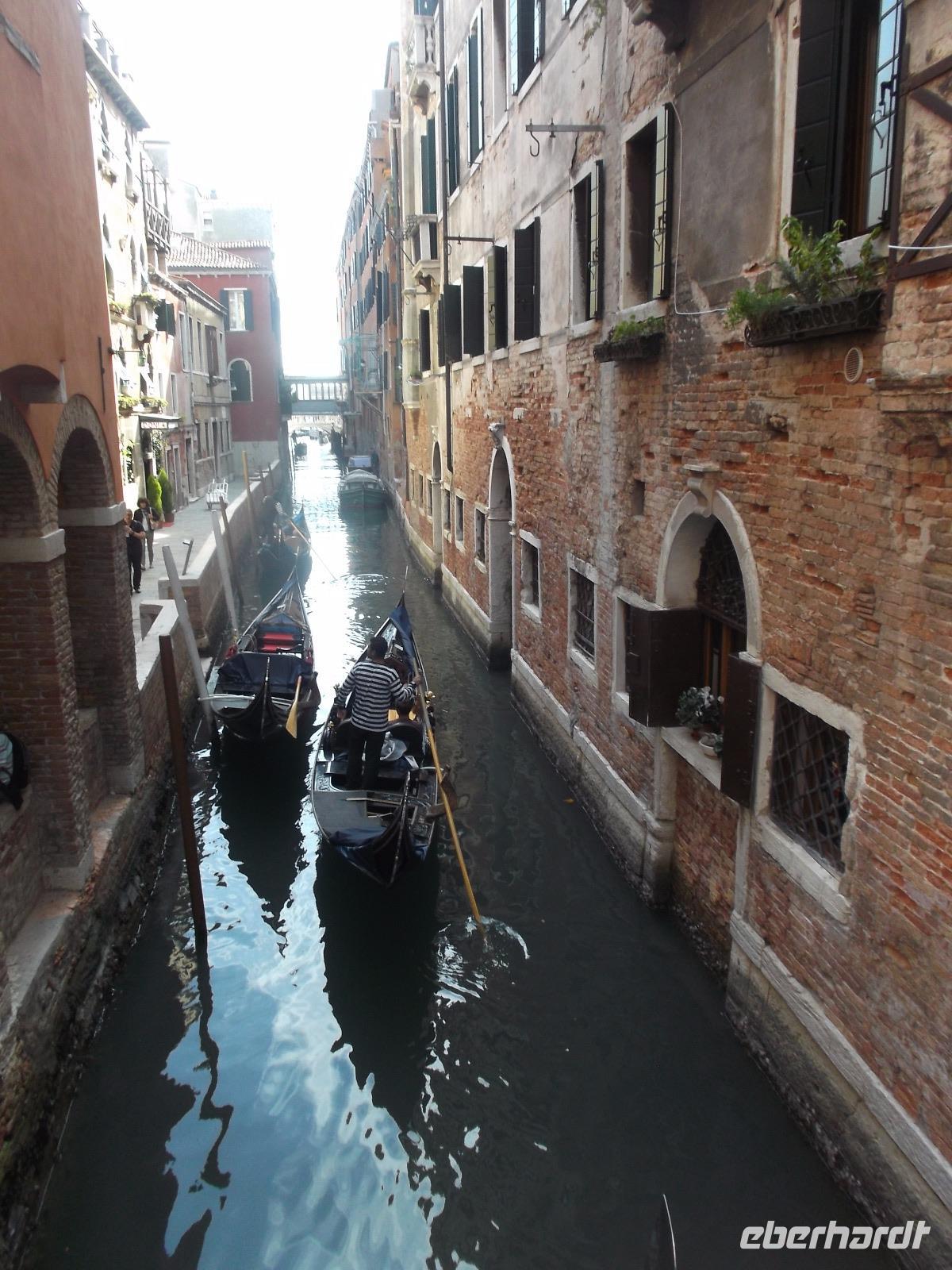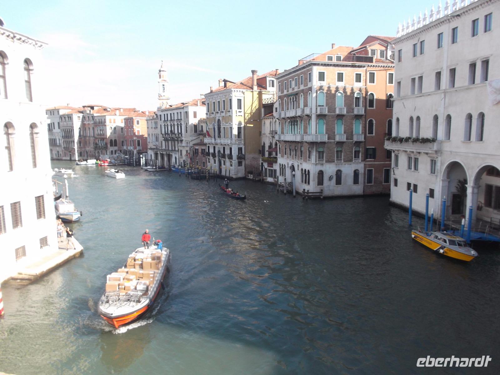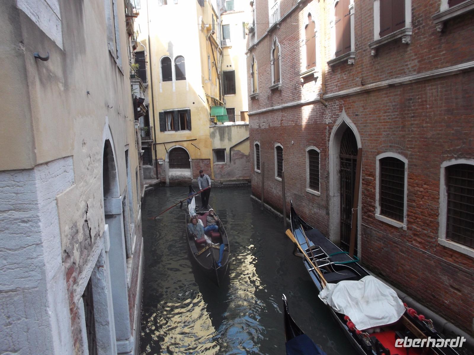 Die weltbekannte Lagunenstadt, auch sie UNESCO-Weltkulturerbe, war unser heutiges Ziel. Nach dem Frühstück brachte uns der Bus zum nahe dem Hotel gelegenen Regionalbahnhof, von dem aus wir mit dem Zug nach Venedig fuhren. Am Bahnhof St. Lucia erwartete uns Stadtführer Massimo, der uns sogleich durch Alt-Venedig zu führen begann, in Richtung Rialto-Brücke und Markusplatz.