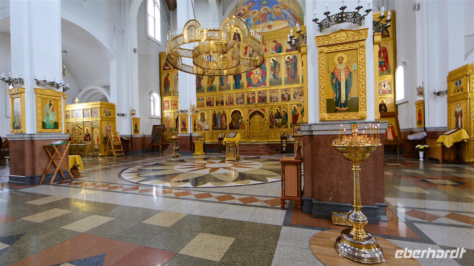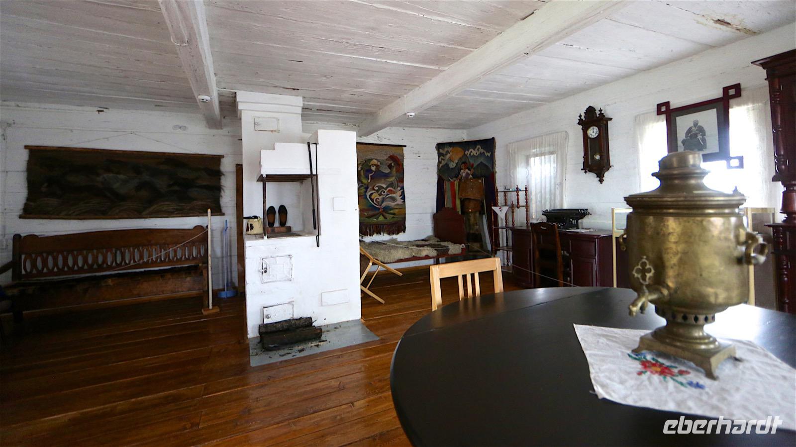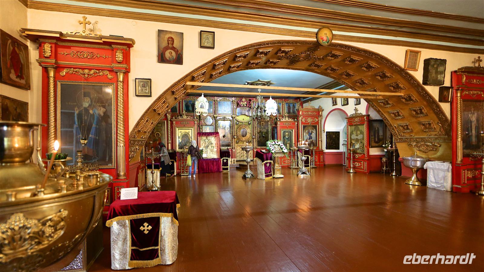 Wir werden den Tag mit einer Irkutsk-Exkursion füllen. Die Stadt bietet reichlich Höhepunkte: Holzarchitektur (ganze Quartale sind in Irkutsk noch erhalten), Dekabristen (wir besuchen das Gut der Wolkonskis, das heutige Dekabristen-Museum), Kunstsammlung und Markt, sind nur einige davon, jedoch können sie uns im Moment über den Verlust des Bahnerlebnisses nur schlecht hinwegtrösten. Wir besuchen noch die bedeutende Krestovosdwischenskaja-Kirche und den Babr.