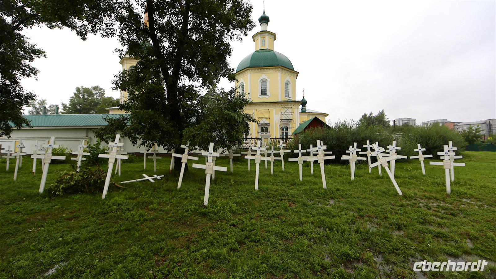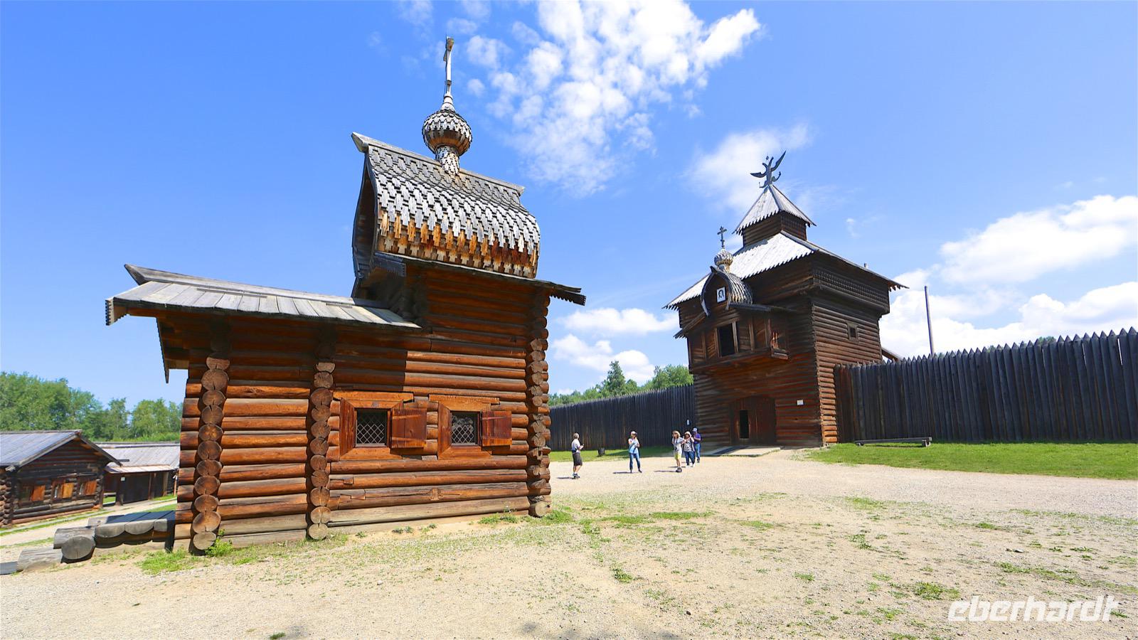 Bewölkt empfängt uns am Morgen zunächst auch Irkutsk. Am Baikal kann das Wetter ganz anders sein, versichert man uns. Wir als inzwischen erfahrene Sibirien-Klima-Experten können unsere Skepsis nicht verbergen. Nach dem guten Frühstück im komfortablen Marriott-Irkutsk-Hotel beginnen wir gegen 08:30 Uhr mit unserer Stadterkundung. Wir besichtigen die Erlöserkirche (Spasskaja Zerkow) - hier haben wir Gelegenheit, kurz einem Gottesdienst beizuwohnen und einige Takte des stets den orthodoxen Gottesdienst begleitenden beeindruckenden Kirchengesanges zu erlauschen - wir sehen die Erscheinung-Gottes-Kathedrale (Sobor Bogojawlenie), spazieren entlang der Angara, besichtigen das Kloster Zeichen-der-Mutter-Gottes (Snamenskij Monastyr) und das Denkmal für den mindestens streitbaren Koltschak auf dem Gelände des Klosters. Danach geht es quer durch die Stadt in Richtung Baikal, Victor erzählt über Sibirien und spaßt über dessen Bewohner, zu denen er selbst zählt: „Wir sind nicht nur einfach Russen, wir sind Sibirier!" In Talzy, unserem nächsten Stopp, werden wir von sonnigem Wetter begrüßt. Für eine Weile dürfen wir die in Sibirien örtlich typische Sommerhitze erleben. Der etwa einstündige Rundgang auf dem Gelände des großartigen Freilichtmuseums führt uns durch verschiedene Epochen sibirischer Baukunst, Kultur und Leben dieses Landstrichs. In einem der historischen Wehrtürme empfangen uns Burschen mit einem fantastischen a-capella-Gesang. Wir schauen noch kurz in einige Objekte und müssen leider schon weiter. In Listwianka wartet man mit dem Mittagessen auf uns. Nach kurzer Fahrt erreichen wir Listwianka und damit den Baikalsee. Endlos scheint er sich zu unserer Rechten zu breiten. Doch zunächst einmal speisen wir. Danach gibt es Zeit zum Souvenirerwerb auf dem Markt und in einschlägigen Geschäften. Vom Markt aus machen wir uns auf den Weg ins Baikal - Museum, ein Stopp an der örtlichen Post soll uns in den Besitz von Briefmarken für die geschriebenen und noch zu schreibenden Postkarten bringen. Vor dem Gang an den Schalter prüfe ich die Größenordnung des Interesses. Unsere schreibfreudige Gemeinde ergibt sich der Hoffnung auf 75 dieser Wertmarken. Listwiankas Poststelle verkauft mir 50.