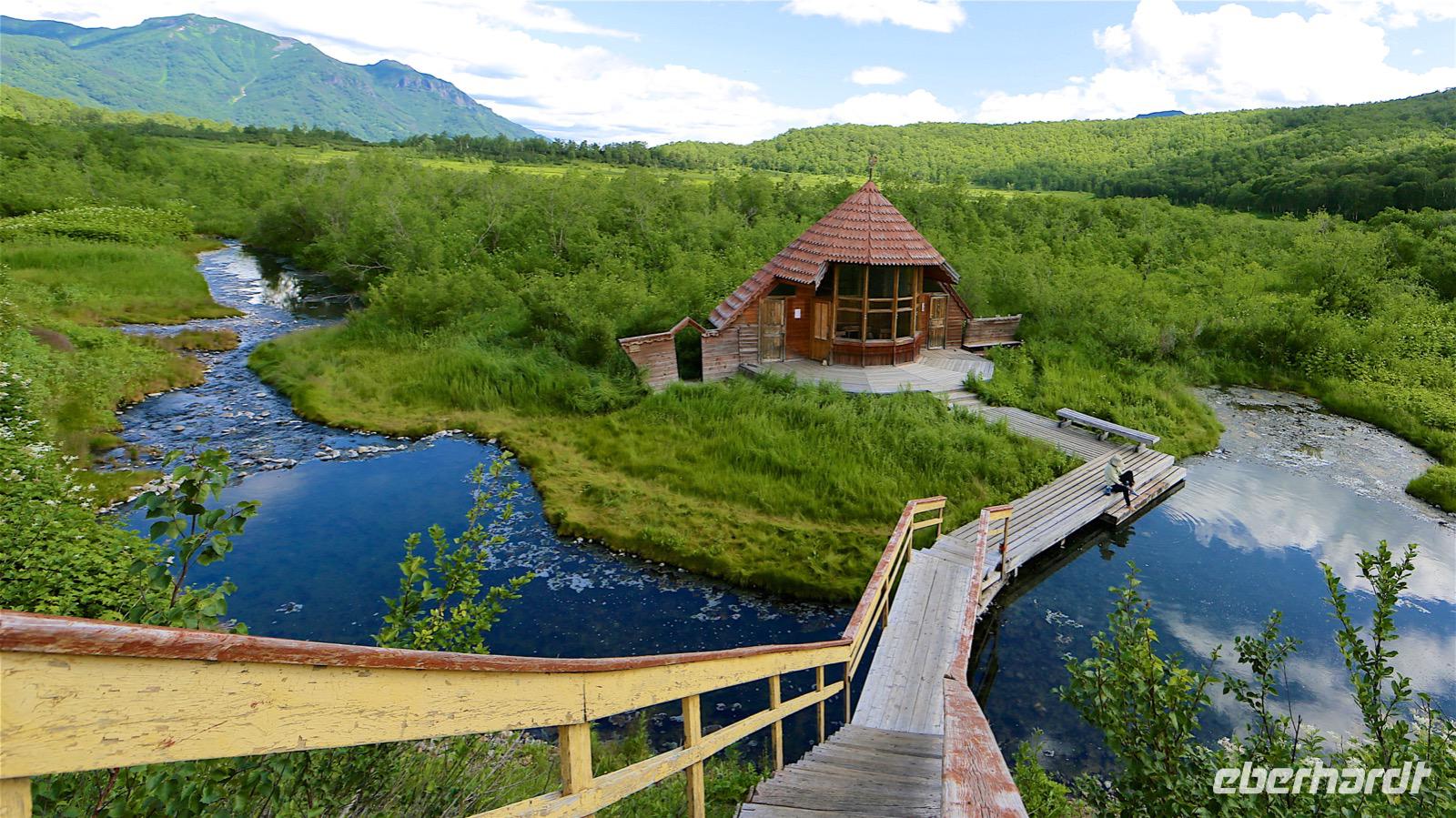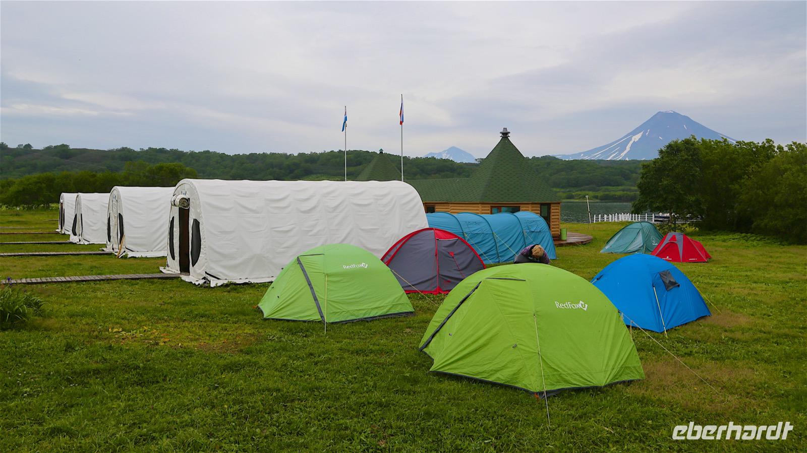 Wir prüfen die als komfortabel gelobte örtliche Toilette - wer die explizite Erwähnung an dieser Stelle für überflüssig hält, möge sich bitte selbst in Sibirien respektive Kamtschatka davon ein Bild machen - und können dies nunmehr uneingeschränkt bestätigen. Anschliessend geht es zu einer Bootsrundfahrt auf dem Kurilensee.