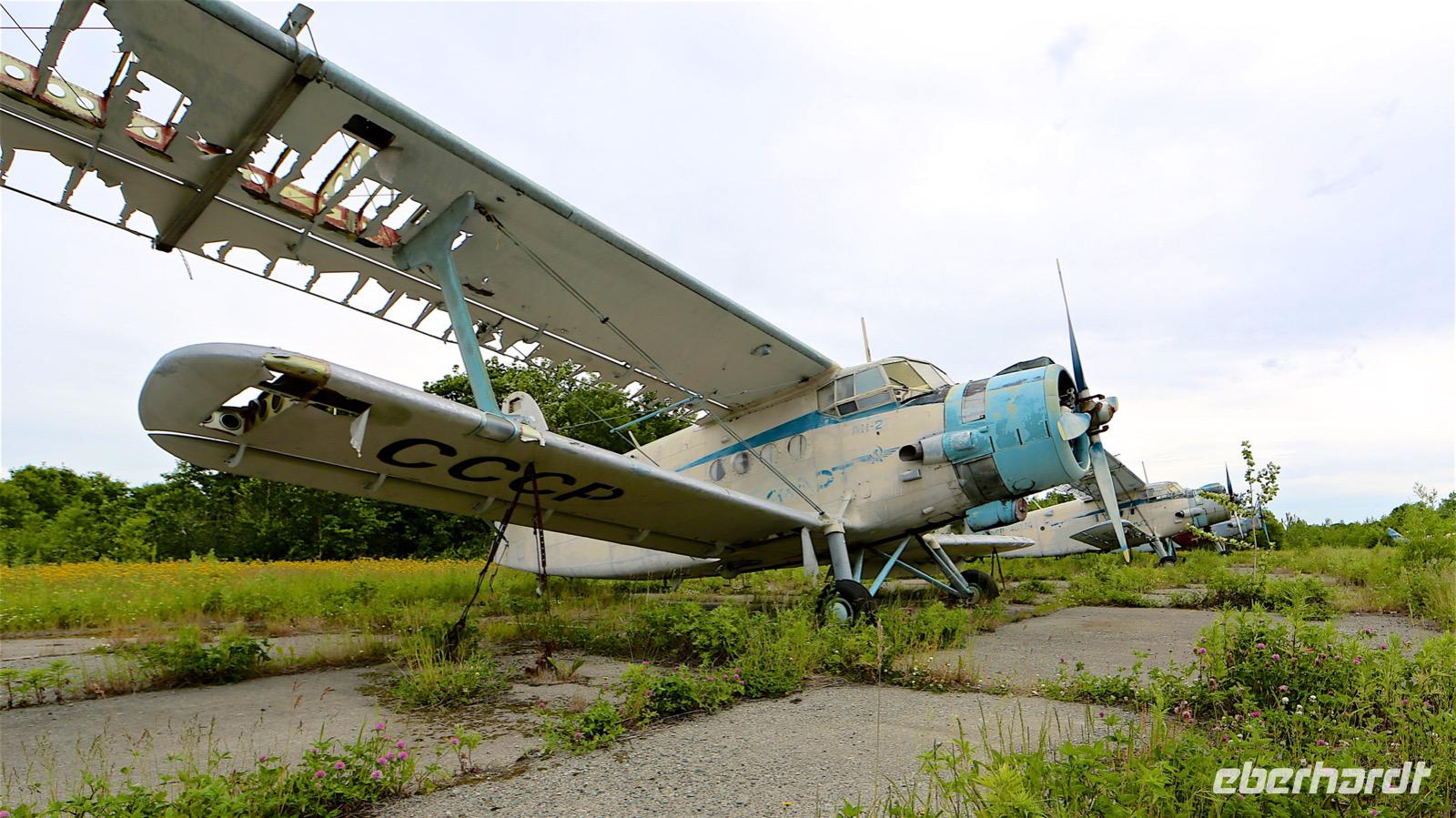 Wir unternehmen eine kurze Reise, zurück in die Zeit des sowjetischen Flug-Regionalverkehrs und besichtigen die vor vielen Jahren hier abgestellten Fluggeräte. Sie sind uns willkommenes Fotomotiv, selbst die Vulkane geben nun den Blick auf ihre Höhen frei.