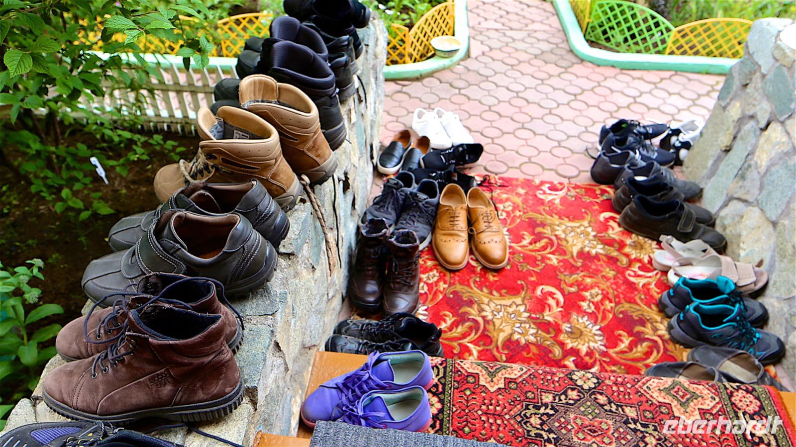 Nach dem Frühstück platzieren wir bereits unser Koffer in der Eingangshalle. Es geht heute zurück nach Irkutsk. Zunächst allerdings zu Fuß noch zum nahen Schamanenfelsen, dem Kap Burchan. Er liegt im Dunst, wie alles andere auch. Wir fahren in zwei Kleinbussen zu einer burjatischen Familie, noch einmal gibt regionales Brauchtum - Kultur, Leben, Traditionen, Tierwelt, Trachten, Tänze - für meinen Geschmack heute etwas zu bemüht. Ein burjatisches Mittagessen beschließt unseren Besuch - aufgetischt wird überaus reichlich, gegessen recht wenig. Zurück im Hotel, verladen wir unsere Koffer und fahren gen Irkutsk. Die Fahrer haben es, scheint es, eilig, zu eilig. Wir bremsen sie zu Gunsten des Fahrkomforts.