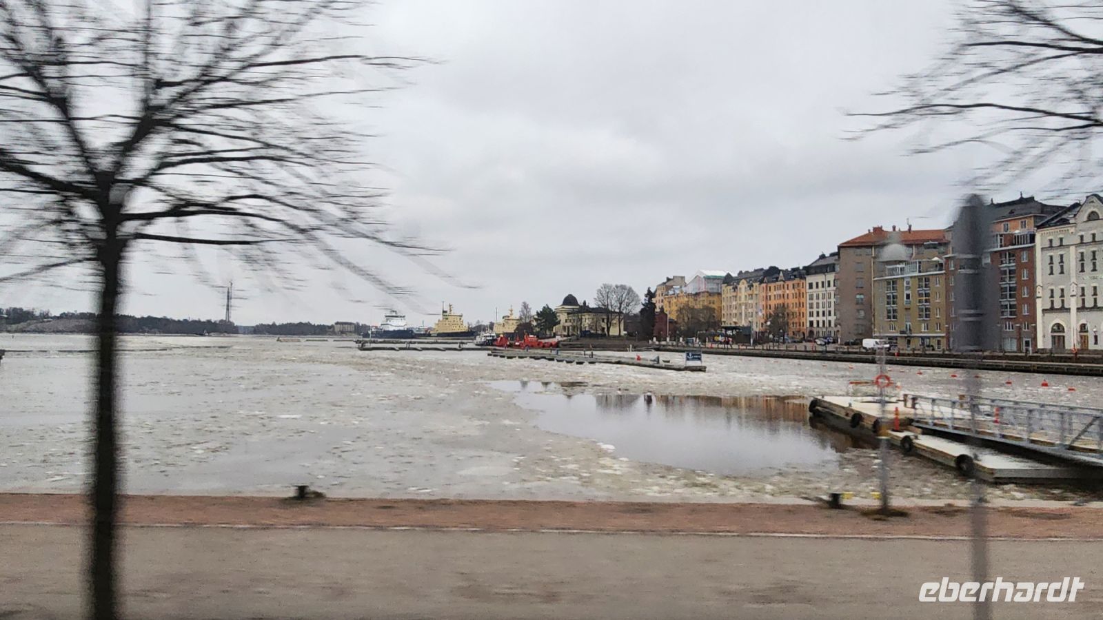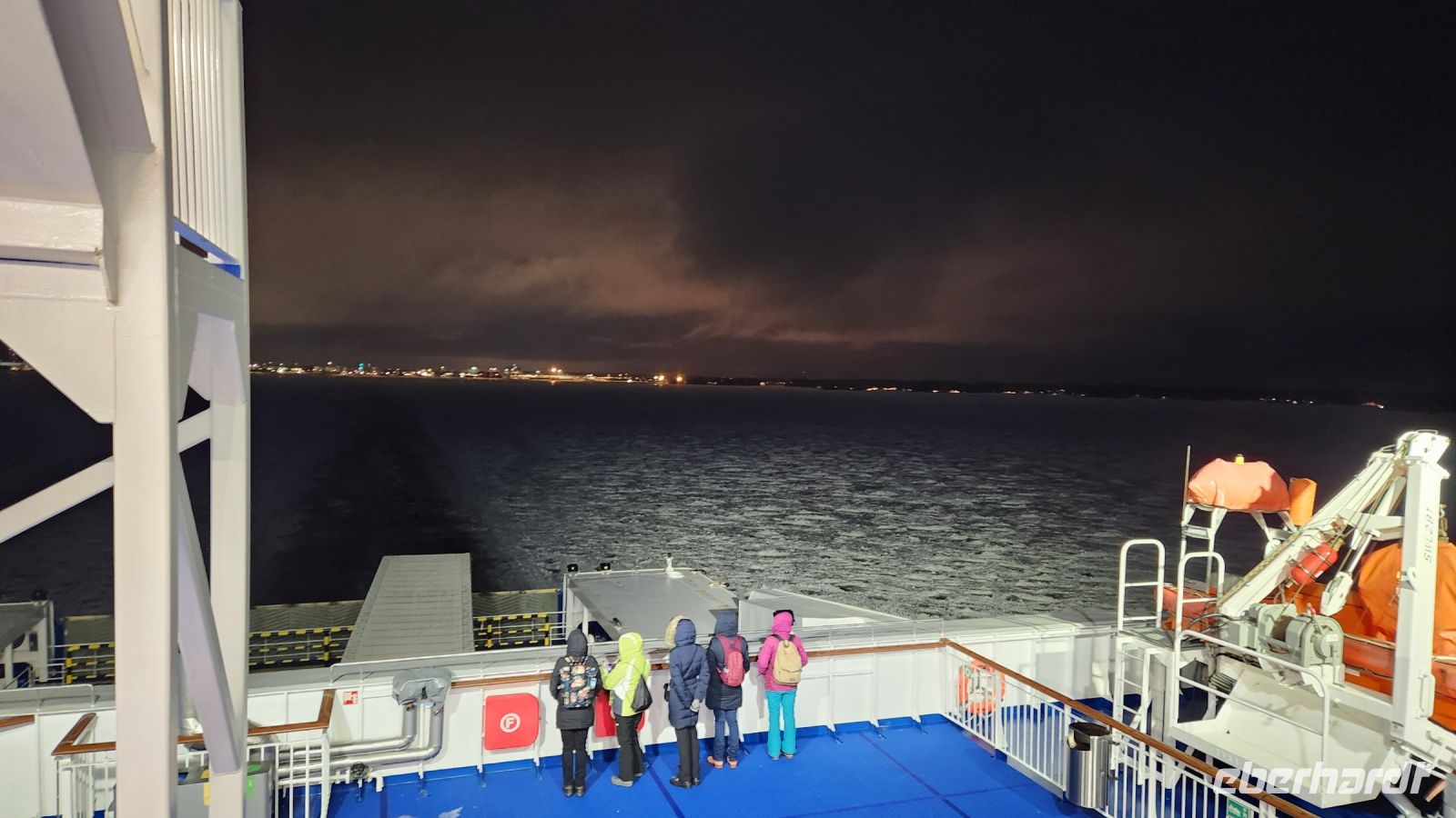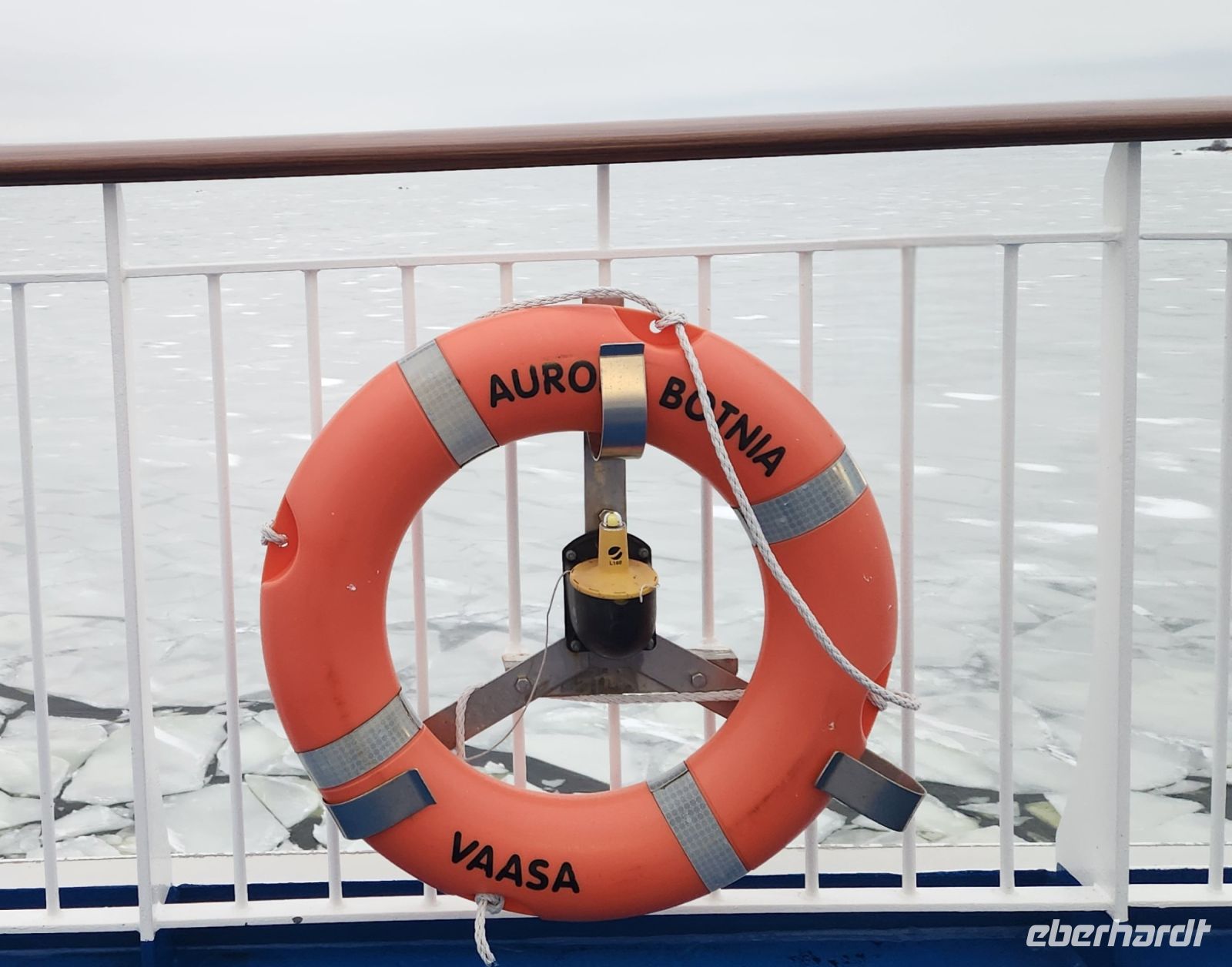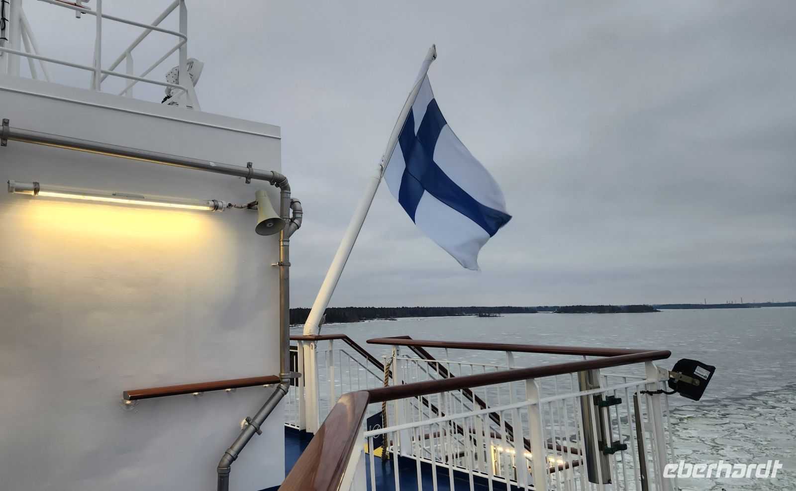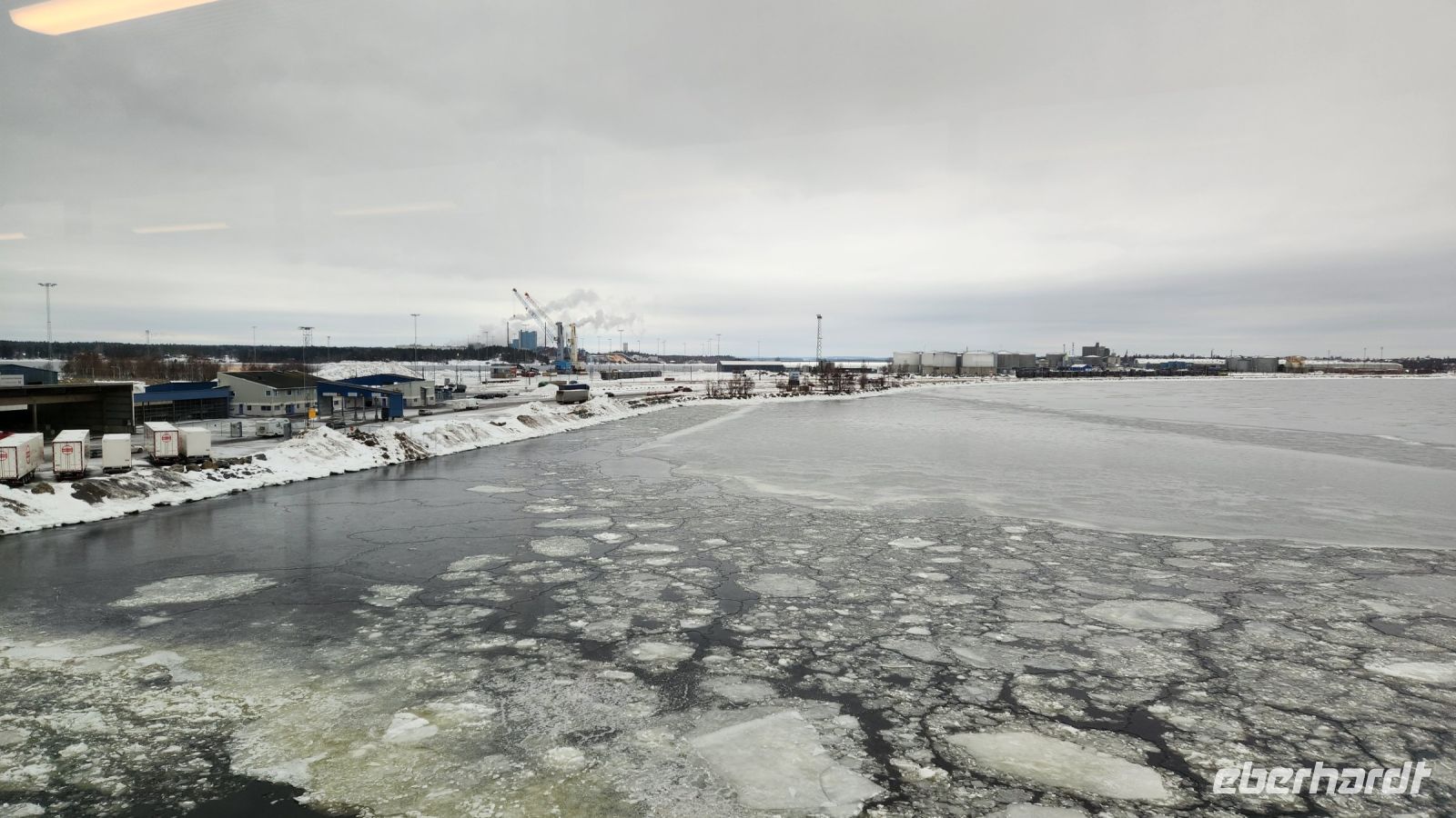 Zum Auslaufen stehen wir alle auf dem Oberdeck und bestaunen das Packeis. Da es zu warm für die Jahreszeit ist, ist nicht der gesamte Bottnische Meerbusen zugefroren. Jedoch in der Nähe vom Festland, sowohl auf der finnischen, als auch auf der schwedischen Seite kann man das Packeis bestaunen und der Eisbrecher muss sich erst seinen Weg durch die Eisschollen bahnen.