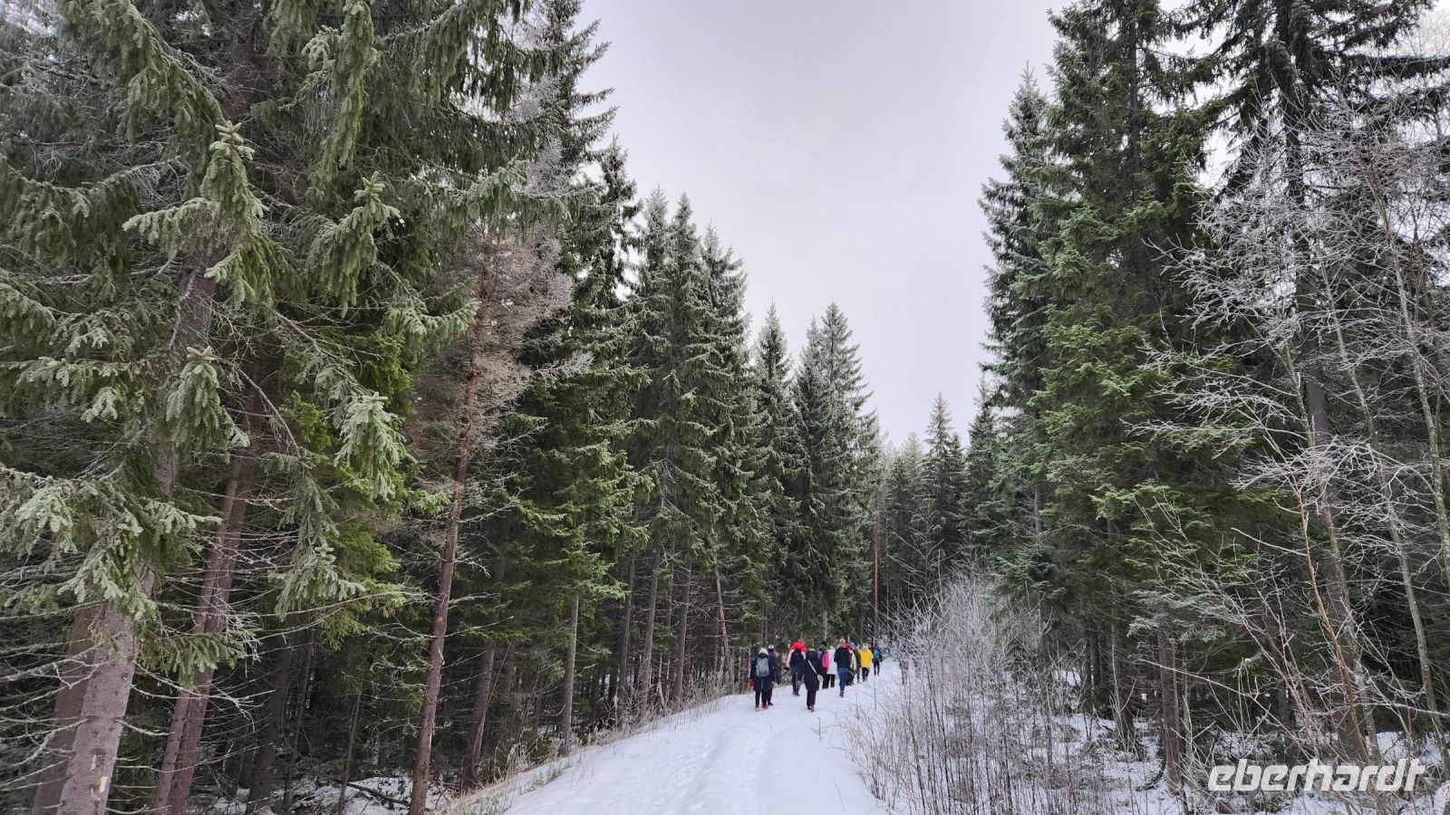 Auch heute werden wir einen erlebnisreichen und typischen Wintertag im verschneiten Finnland erleben. Wir starten mit einer Wanderung durch eine winterliche Landschaft, vorbei an hübschen Ferienhäusern und erreichen dann ein Waldstück mit hohen Tannen.