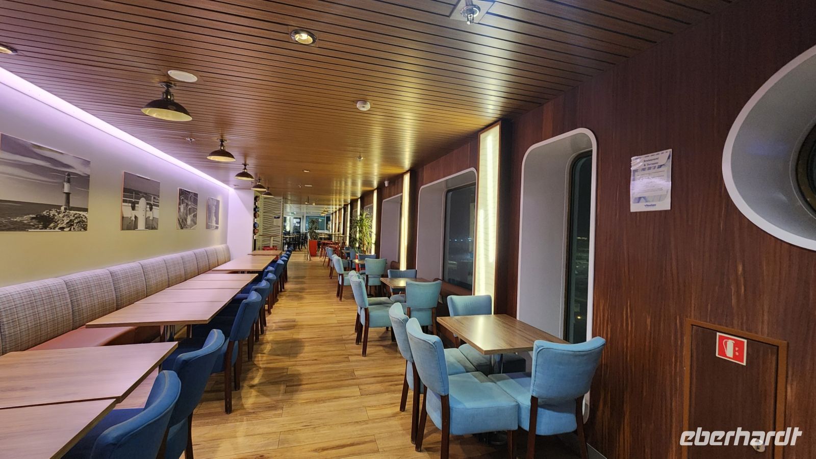 Wir haben alle ausgeschlafen und treffen uns zum ausgiebigen Frühstück, und da die meisten sehr lange sitzen bleiben, machen wir auch gleich einen Brunch daraus. Dann geht man wieder aufs Oberdeck, besucht die Sauna, spielt, liest oder macht ein Mittagsschläfchen.
