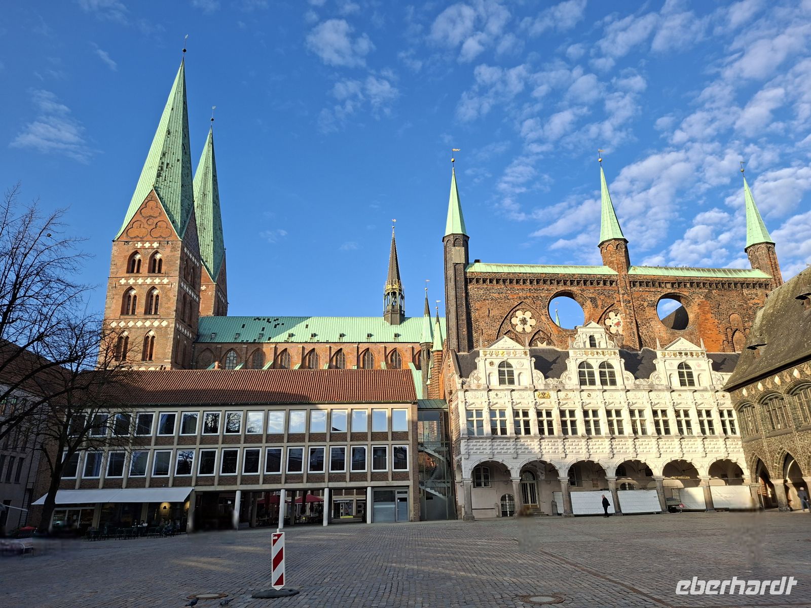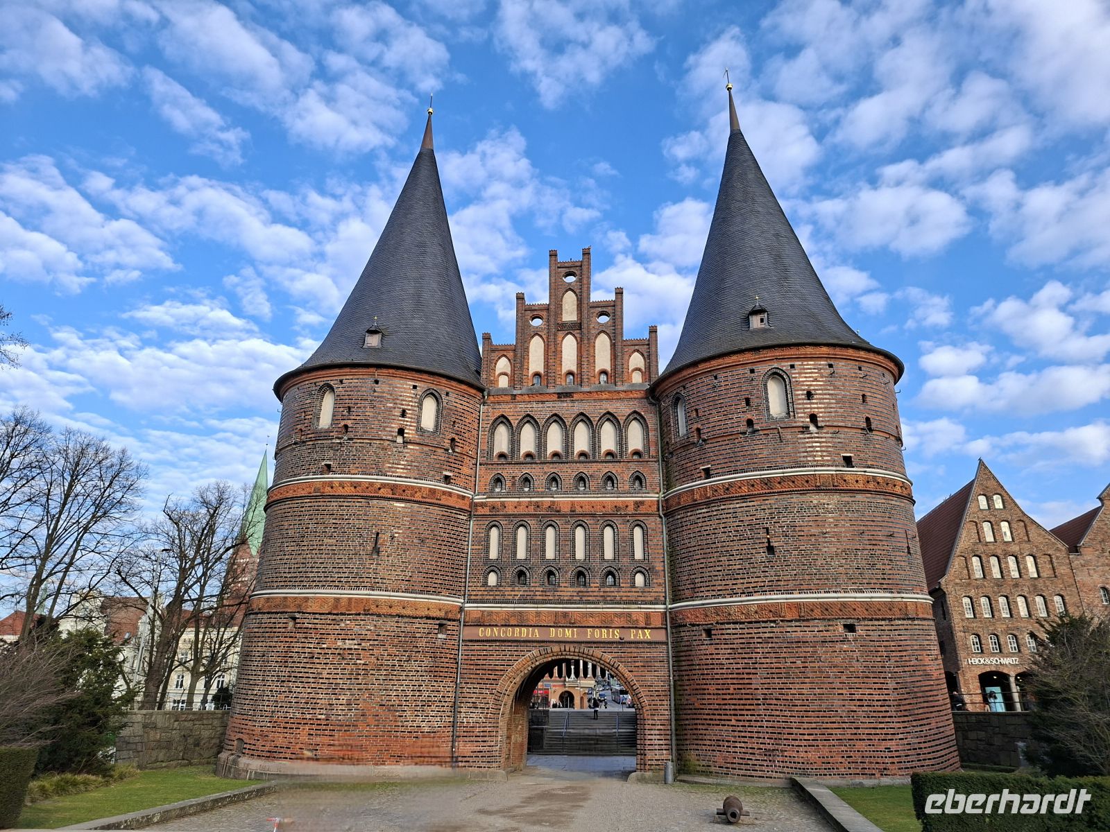 Unsere Reise begann im ersten Licht eines noch verschlafenen Morgens in Dresden. Voller Vorfreude und mit einem Hauch Abenteuerlust im Gepäck stiegen wir in den komfortablen Reisebus der Firma Leistner ein. Ein letztes Zurechtrücken der Taschen und schon konnte es losgehen. Während die Landschaft langsam an uns vorbeizog, erfüllten erste Gespräche und erwartungsvolle Blicke den Innenraum. Am Nachmittag erreichten wir schließlich die stolze Hansestadt Lübeck, wo die letzten zwei Reisegäste zu uns stießen. Nun war unsere Gruppe vollständig – 25 Personen, vereint durch die gemeinsame Lust am Entdecken. Kaum ausgestiegen, machten wir uns sofort zu Fuß auf den Weg zum Marzipan-Speicher-Café am Rande der historischen Altstadt. In stilvollem Ambiente erwartete uns dort eine süße Versuchung: Lübecker Marzipantorte – zart, aromatisch, unverwechselbar. Bei einer duftenden Tasse Kaffee oder Tee löste sich die Müdigkeit der Busfahrt ein wenig in Wohlgefallen auf. Ein kleiner Vortrag gewährte uns Einblicke in die Kunst der Marzipanherstellung – und plötzlich schmeckte jeder Bissen noch ein wenig kostbarer. Mit frischer Energie blieb anschließend Zeit, die ersten Eindrücke dieser wunderschönen Stadt zu sammeln. Kleine, liebevoll geführte Geschäfte luden zum Stöbern ein, und überall umgab uns die majestätische Backsteingotik. Die Sonne strahlte vom Himmel, bei frühlingshaften 15 Grad – als hätte Lübeck sich eigens für uns herausgeputzt. Wenig später versammelten wir uns vor dem berühmten Wahrzeichen der Stadt. Stolz und kraftvoll erhebt sich das Holstentor mit seinen wuchtigen Rundtürmen und der Inschrift „Concordia domi foris pax“ – Eintracht innen, Friede außen. Ein Bauwerk, das von der großen Zeit der Hanse erzählt und Geschichte atmet. Hier begann unsere abendliche Stadtführung. Kathrin, unsere freundliche Gästeführerin, nahm uns mit auf eine Reise durch die Jahrhunderte. Durch verwinkelte Gassen und vorbei an ehrwürdigen Kaufmannshäusern lauschten wir ihren lebendigen Erzählungen über Handel, Macht und das Leben im mittelalterlichen Lübeck.
