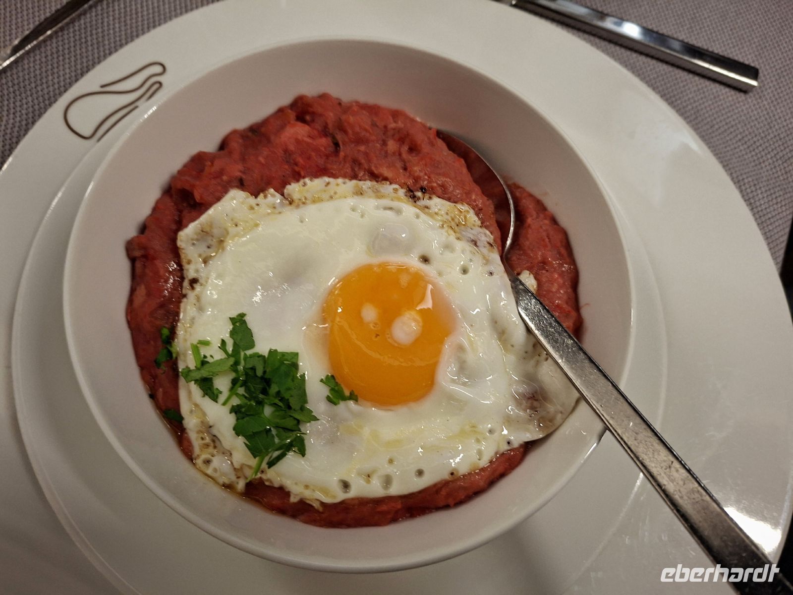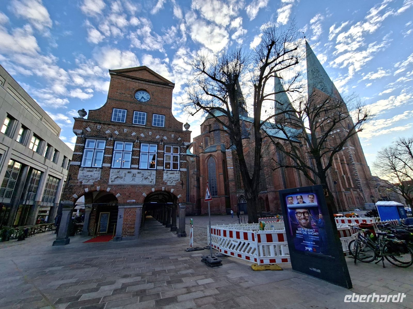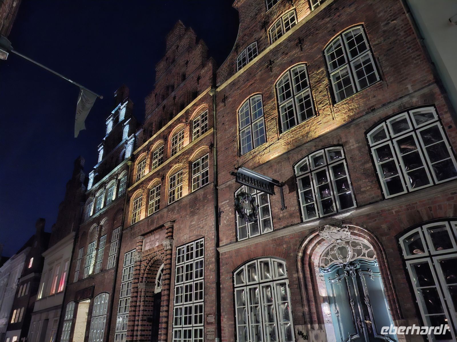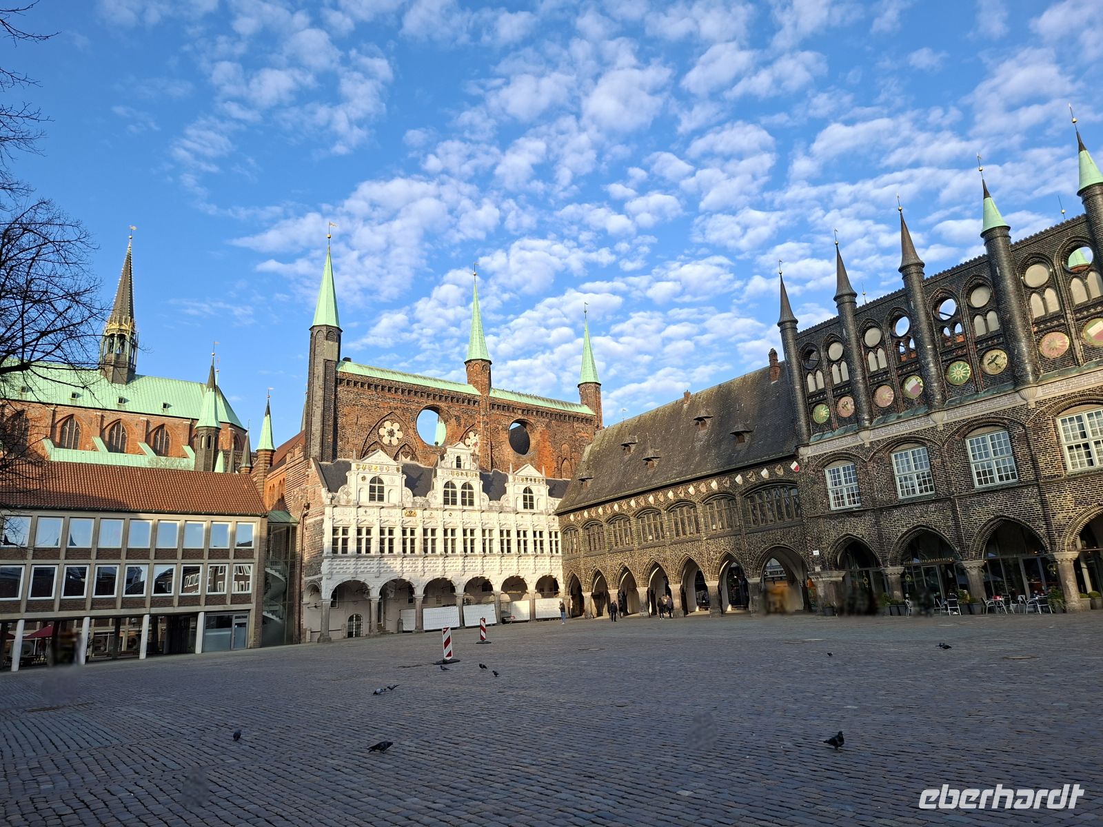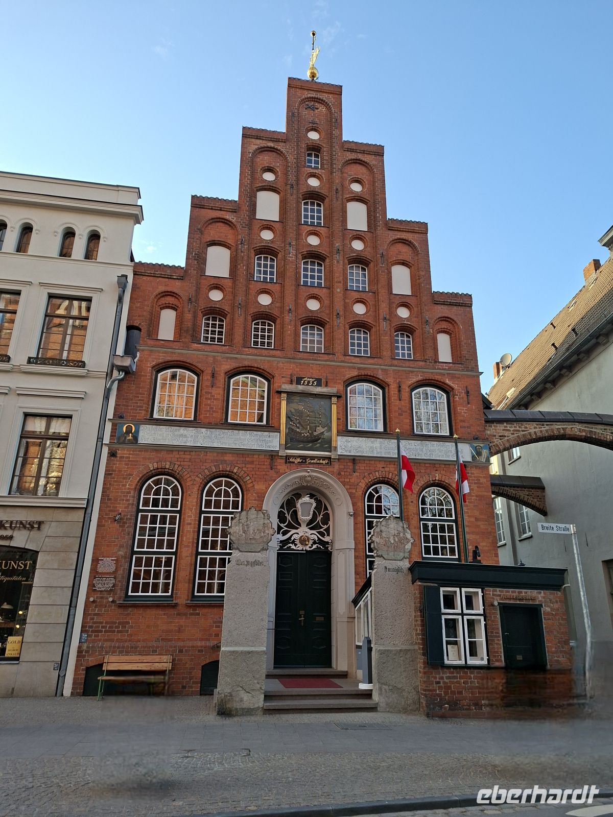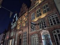 Schließlich öffnete sich der Marktplatz vor uns, und das prächtige Rathaus erhob sich in seiner beeindruckenden Backsteinarchitektur. Ein Moment zum Innehalten – zum Staunen. Man spürte förmlich den Atem der Geschichte. Den krönenden Abschluss unseres Tages bildete ein gemeinsames Abendessen im traditionsreichen Restaurant „Schiffergesellschaft“. Das historische Haus aus dem 16. Jahrhundert empfing uns mit dunklem Holz, kunstvollen Schnitzereien und Modellschiffen, die von der Decke hingen – als segelten sie über uns hinweg durch vergangene Jahrhunderte. Hier schmeckten wir ein Stück norddeutsche Tradition: Labskaus.