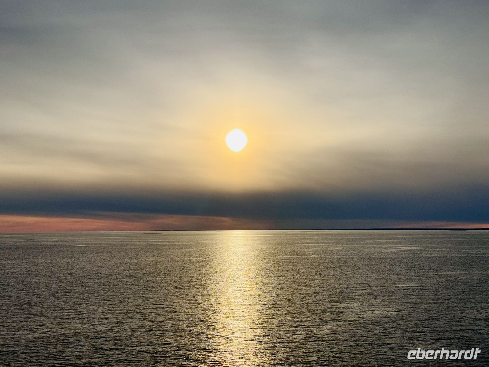 Der Tag beginnt sanft. Kein hektisches Treiben, keine Eile – nur das gleichmäßige Schaukeln der Finnlady, die uns ruhig über die Ostsee trägt. Als wir die Kabinen verlassen, empfängt uns frische Seeluft. Der Himmel strahlt in einem klaren Blau, die Sonne spiegelt sich auf der fast glatten Wasseroberfläche. Es ist windstill – das Meer zeigt sich heute von seiner sanftesten Seite. Unser erster Weg führt uns zum Brunch-Buffet, das mit einer großzügigen Auswahl an Leckereien lockt. Frisch gebackenes Brot, herzhafte Spezialitäten, süße Versuchungen – dazu eine dampfende Tasse Kaffee und der weite Blick auf die offene See. Es gibt kaum einen besseren Ort, um in diesen entspannten Tag zu starten. Nach dem ausgedehnten Frühstück erkunden wir die Annehmlichkeiten des Schiffes. Während einige in der Panorama-Lounge mit einem Buch zur Ruhe kommen, zieht es andere in die typisch finnische Sauna. Die Wärme tut gut, besonders in Kombination mit der frischen Seeluft, die uns nach dem Saunagang empfängt. Am Nachmittag verbringen wir viel Zeit an Deck. Die Ostsee liegt fast spiegelglatt vor uns – ein seltener Anblick. Leider ist es etwas diesig, der Horizont verschwimmt in der Ferne, doch immer wieder bricht die Sonne durch den Dunst und taucht das Meer in ein weiches Licht. Wir lehnen uns an die Reling, atmen tief ein und genießen die absolute Ruhe. Kein Motorenlärm, kein Wellenschlag – nur das sanfte Summen des Schiffes und das gelegentliche Kreischen einer Möwe. Die Zeit vergeht wie im Flug, und schon neigt sich der Tag dem Abend entgegen. Im Bordrestaurant erwartet uns ein skandinavisches Schlemmer-Buffet – fangfrischer Fisch, zartes Fleisch und köstliche nordische Spezialitäten. In geselliger Runde lassen wir uns das Essen schmecken und genießen den entspannten Ausklang unseres Tages auf See. Spät am Abend wagen wir noch einen letzten Gang an Deck. Der Himmel leuchtet tiefblau, das Meer bleibt unbewegt. Morgen werden wir Finnland erreichen – doch für diesen Moment zählt nur die Stille, die Weite und die Gelassenheit, die uns auf dieser Überfahrt begleitet. Ein Tag der Entschleunigung, an dem wir einfach nur das Hier und Jetzt genießen.