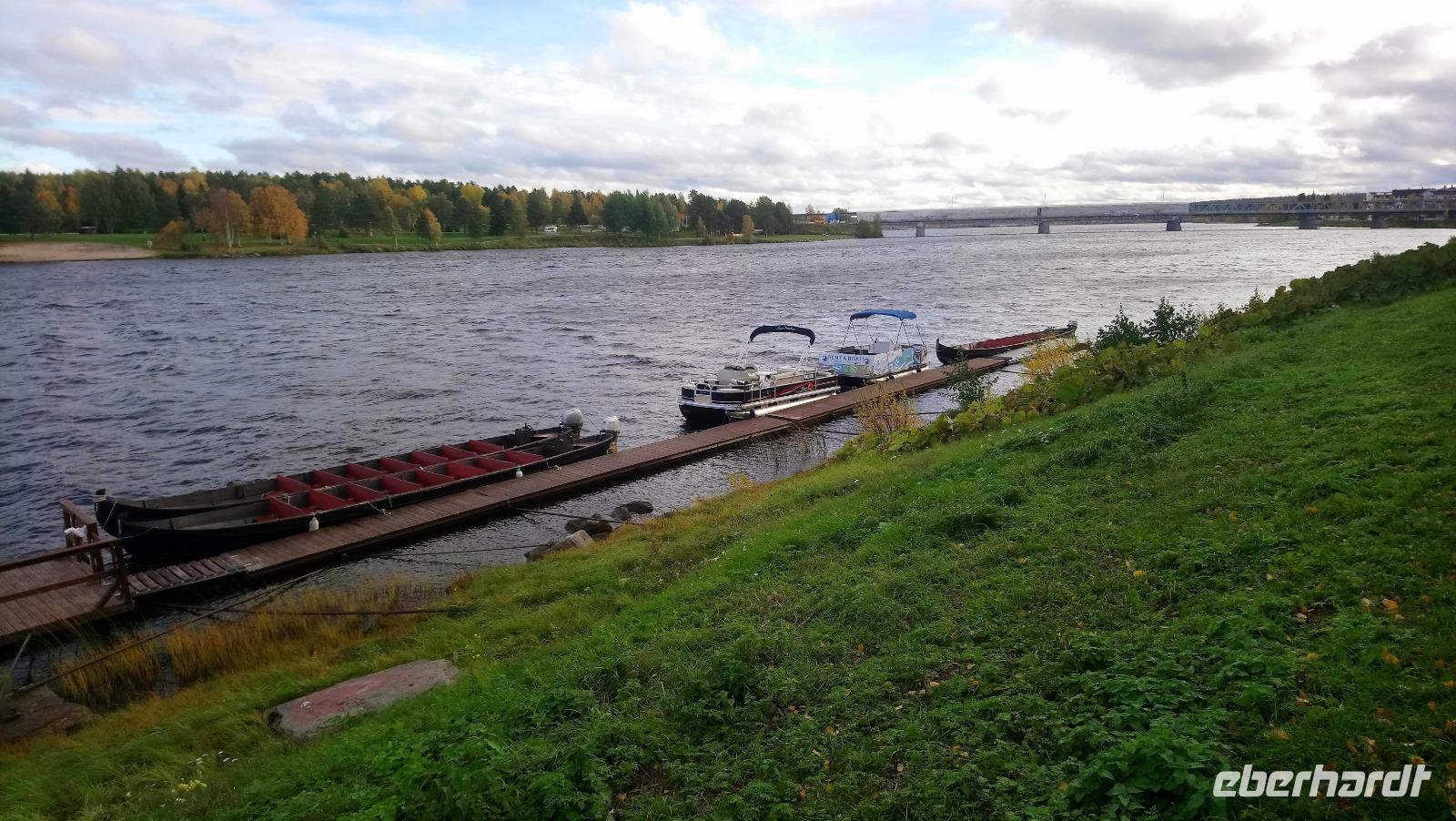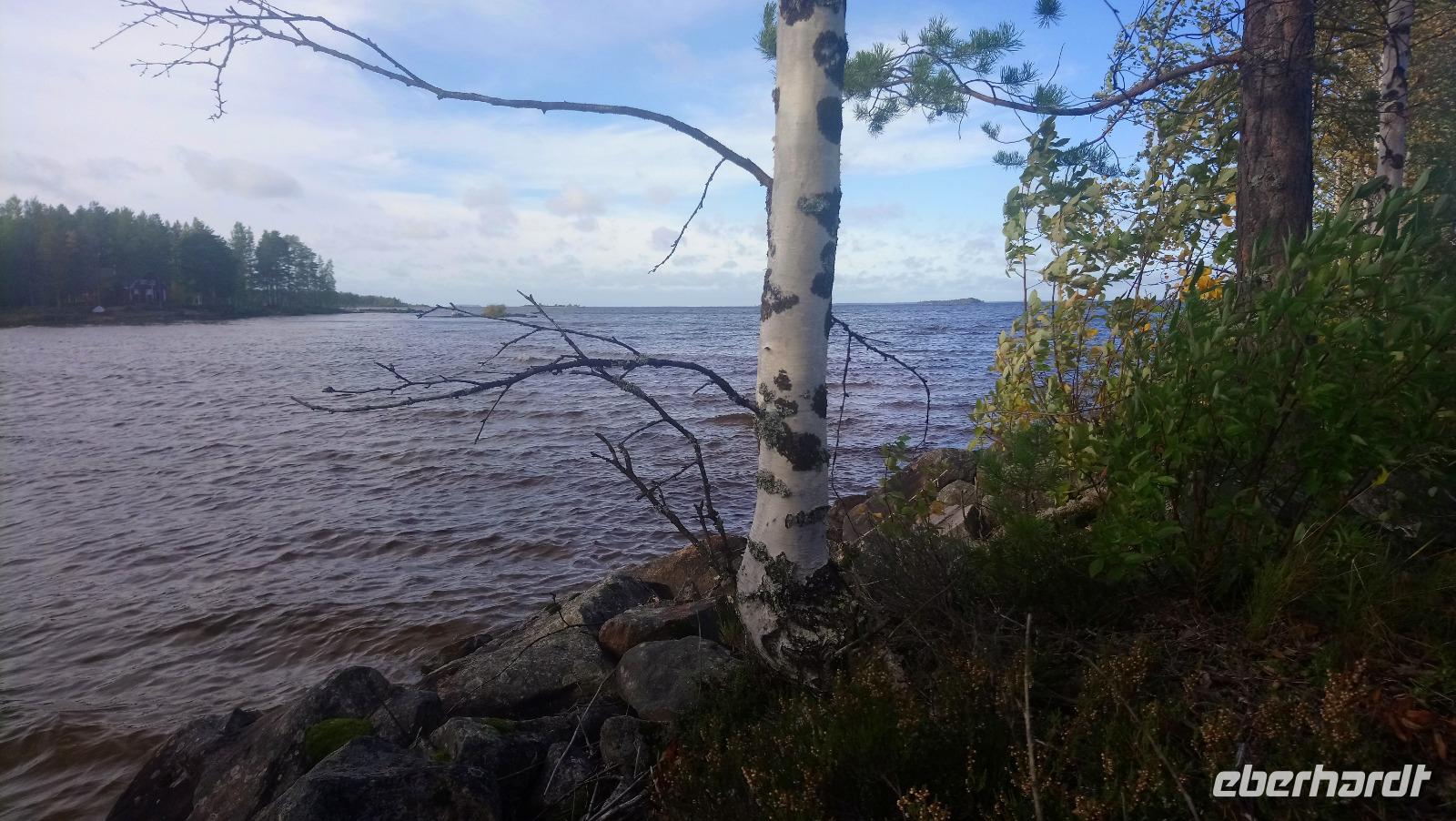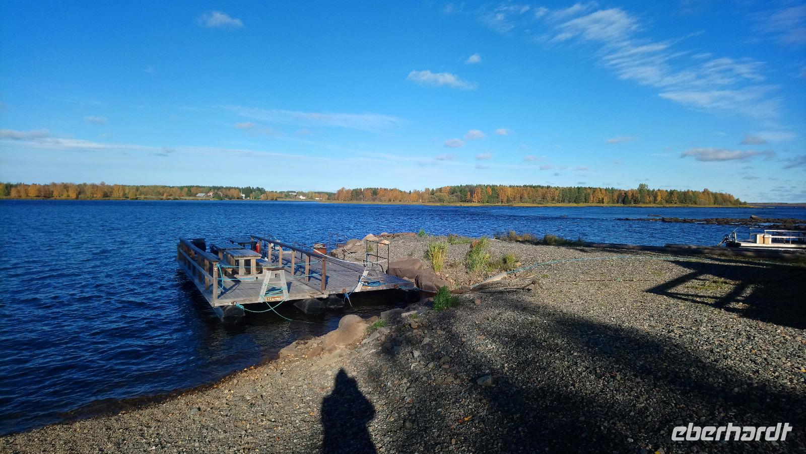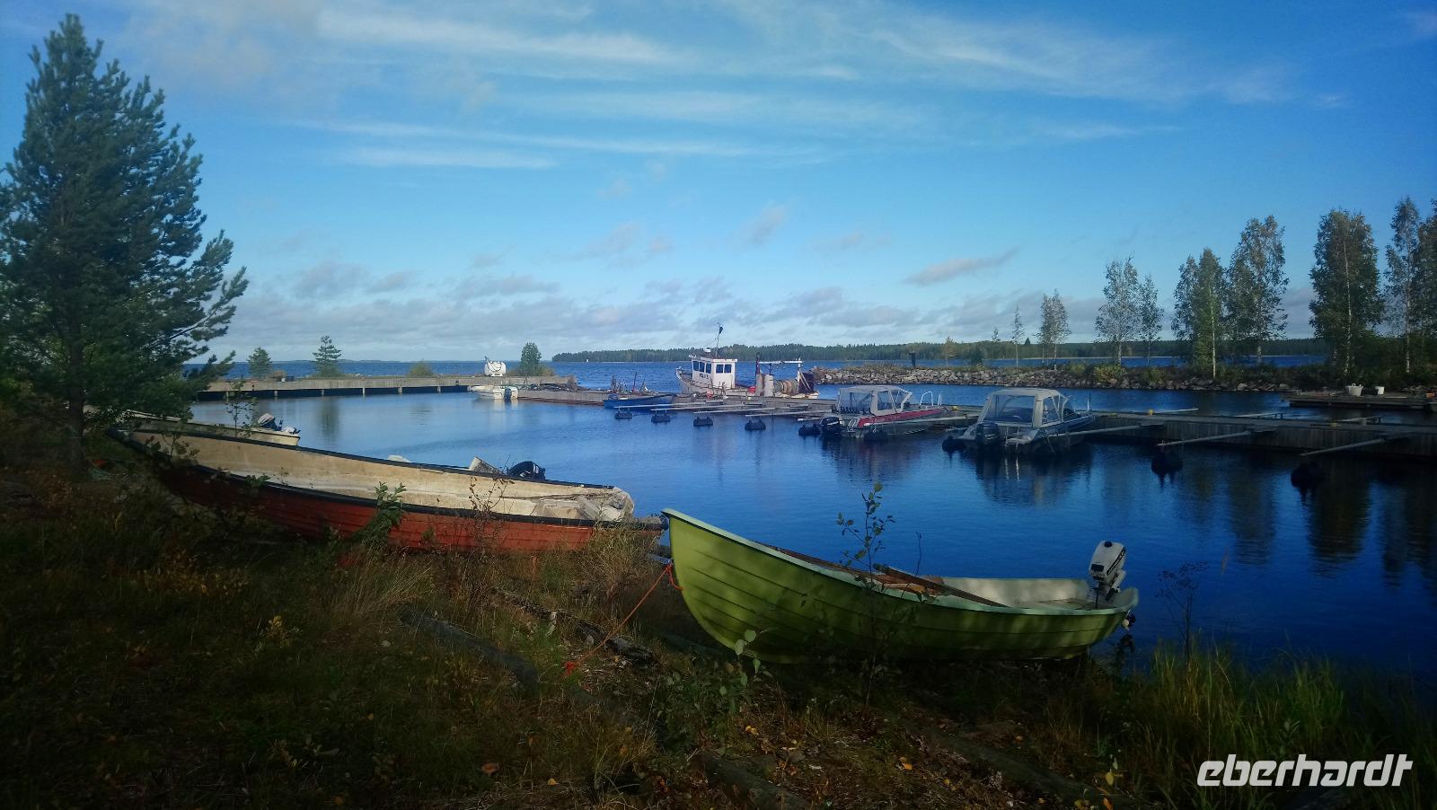 Bei strahlendem Sonnenschein und mit den ersten Herbststürmen ziehen wir weiter nach Torno. Nur wenige Kilometer nach der modernen Hafenstadt erreichen wir die Kukkoa Stromschnellen. Ein phantastischer Blick eröffnet sich uns. Das sprudelnde blaue Wasser, die farbigen Kleider der Fischer und die leuchtend roten Holzhäuser zeigen das Dorf von seiner schönsten Seite. Von Risto erfahren wir viel über die Tradition des Felchen Fischens in dieser Region in Lappland. Gegen Mittag dürfen wir diese am offenen Feuer gegrillte Fischspezialität auch probieren.