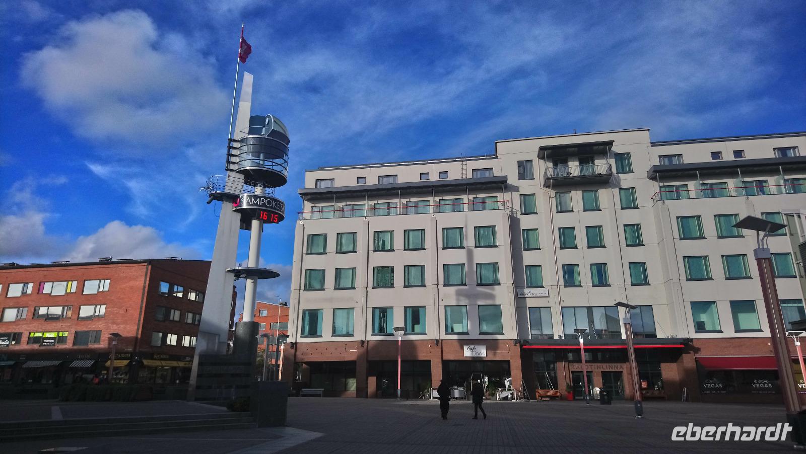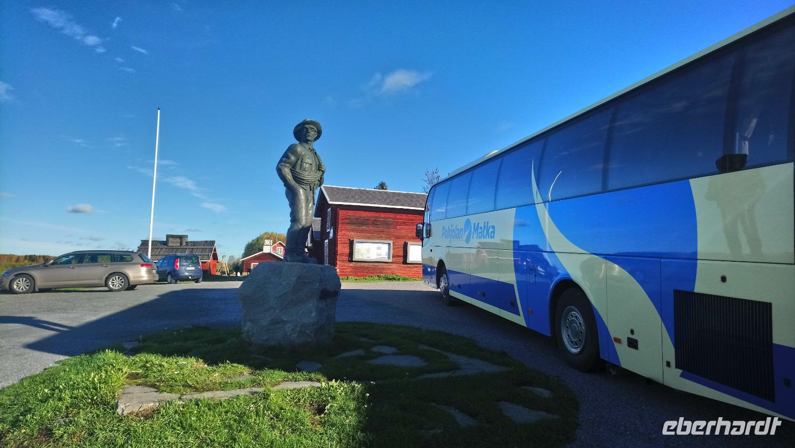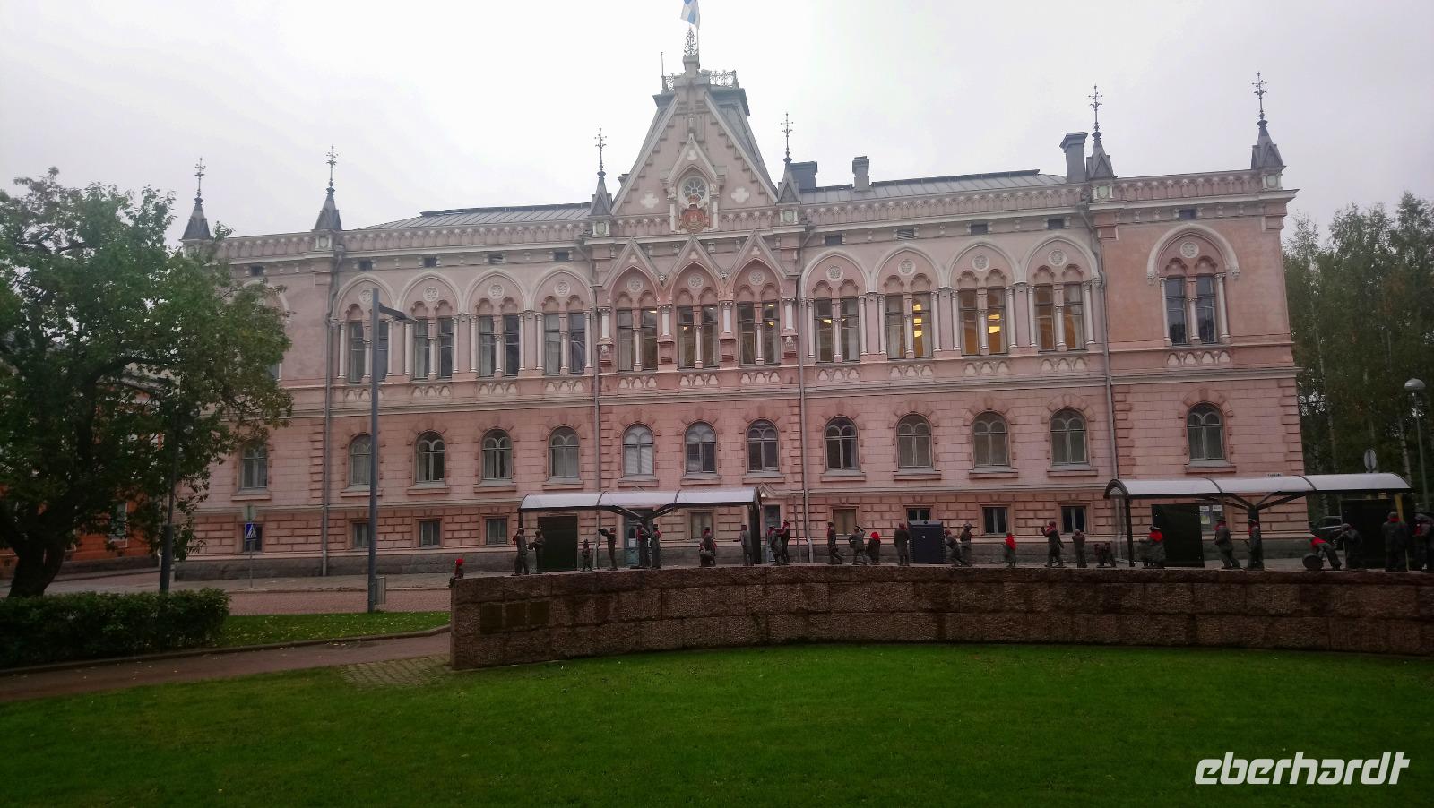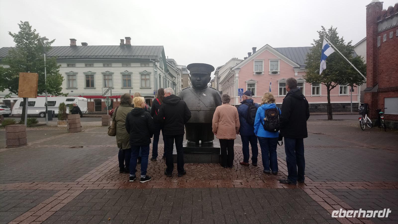 Auch unser zweiter Urlaubstag begann sonnig. Nach einem ausgezeichneten Frühstück spazierten wir gemeinsam durch die nördlichste Großstadt Europas: Oulu. Genau wie unser Präsident besuchten wir das Rathaus, den Dom und natürlich die Markthalle in Oulu. Auf dem Marktplatz gab es ein „Datenschutz konformes" Foto mit dem wohl berühmtesten Polizisten Oulus und anschließend verkosteten wir fein geräucherten Rentierschinken in der Markthalle. Nach der Dombesichtigung verließen wir Oulu in Richtung Strand. Leider begann es in Nallikari, dem Ostseebad Oulus zu regnen, so dass wir nur zu einem kurzen Fotostopp zum Strand an den Bottnischen Meerbusen spazierten. Weiter ging unsere Reise Richtung Kalajoki. Um die finnische Luft auch richtig genießen zu können legten wir einen Fotostopp an einer Holzkirche in Kempele ein. Am Nachmittag könnten wir uns eine Kaffeepause in Raahe, einer Stadt die von Per Brahe gegründet wurde und heute noch eine Vielzahl gut restaurierter Holzhäuser im Zentrum aufzuweisen hat. Wenig später erreichten wir unser modernes Ostseehotel. In einer großzügigen Hotelanlage werden wir den heutigen Abend ausklingen lassen. Bei einem exklusiven Menü mit finnischen Lachs und Topservice lassen wir einen erholsamen Tag ausklingen.