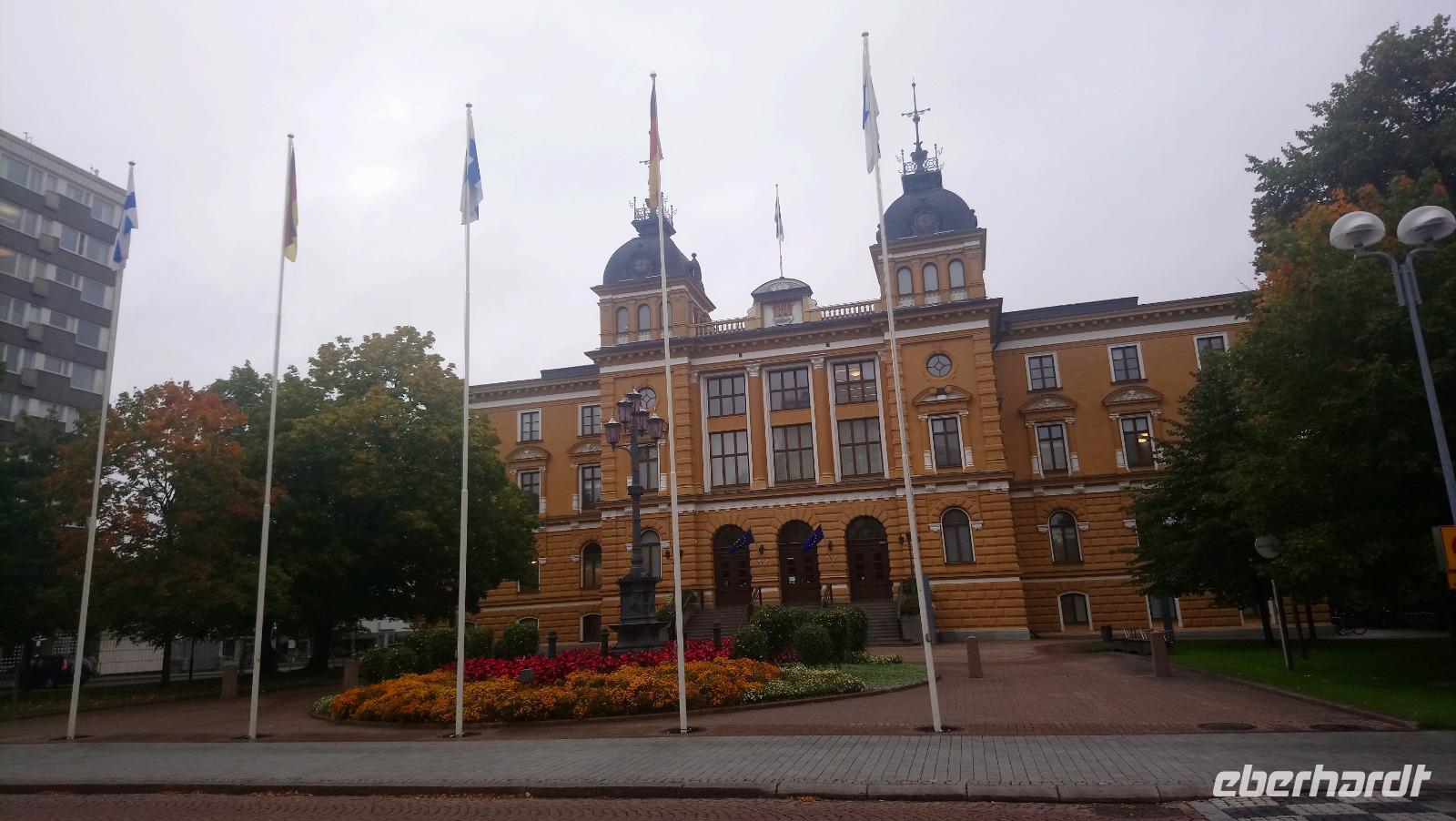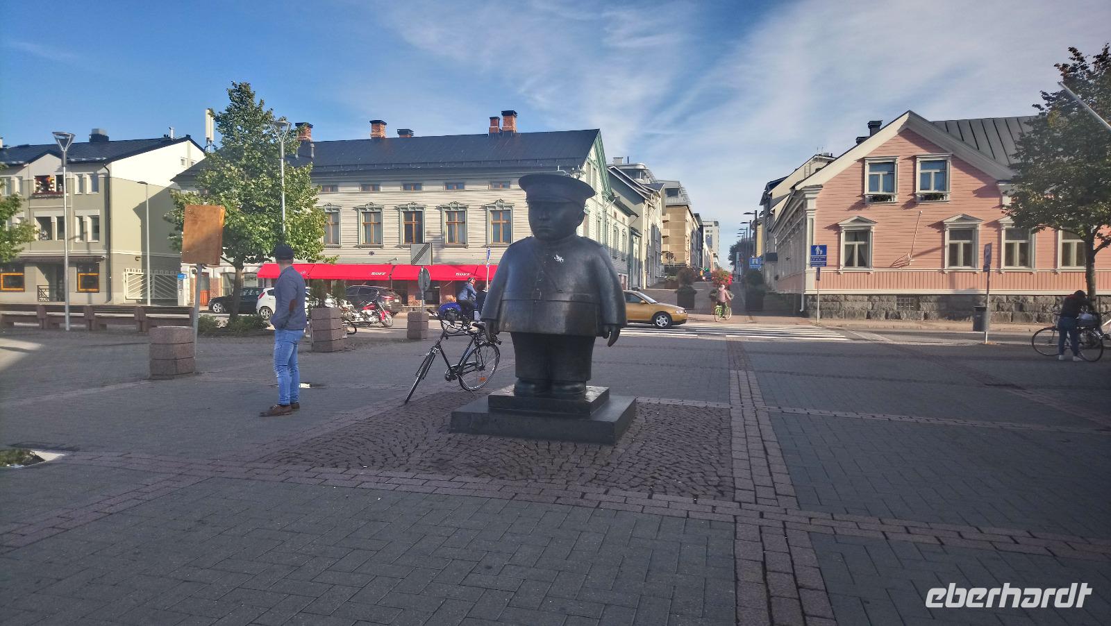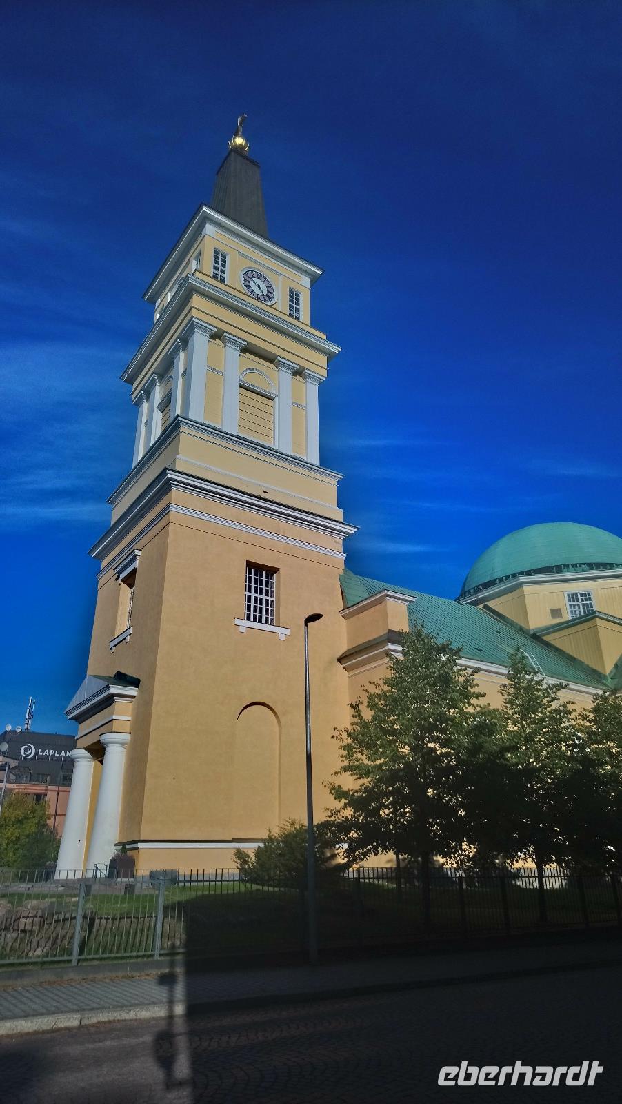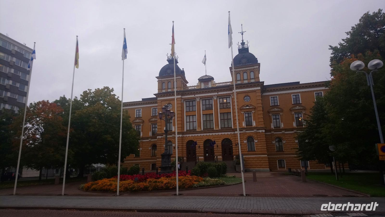 Auch unser zweiter Urlaubstag begann sonnig. Nach einem ausgezeichneten Frühstück spazierten wir gemeinsam durch die nördlichste Großstadt Europas: Oulu. Genau wie unser Präsident besuchten wir das Rathaus, den Dom und natürlich die Markthalle in Oulu. Auf dem Marktplatz gab es ein „Datenschutz konformes" Foto mit dem wohl berühmtesten Polizisten Oulus und anschließend verkosteten wir fein geräucherten Rentierschinken in der Markthalle. Nach der Dombesichtigung verließen wir Oulu in Richtung Strand. Leider begann es in Nallikari, dem Ostseebad Oulus zu regnen, so dass wir nur zu einem kurzen Fotostopp zum Strand an den Bottnischen Meerbusen spazierten. Weiter ging unsere Reise Richtung Kalajoki. Um die finnische Luft auch richtig genießen zu können legten wir einen Fotostopp an einer Holzkirche in Kempele ein. Am Nachmittag könnten wir uns eine Kaffeepause in Raahe, einer Stadt die von Per Brahe gegründet wurde und heute noch eine Vielzahl gut restaurierter Holzhäuser im Zentrum aufzuweisen hat. Wenig später erreichten wir unser modernes Ostseehotel. In einer großzügigen Hotelanlage werden wir den heutigen Abend ausklingen lassen. Bei einem exklusiven Menü mit finnischen Lachs und Topservice lassen wir einen erholsamen Tag ausklingen.