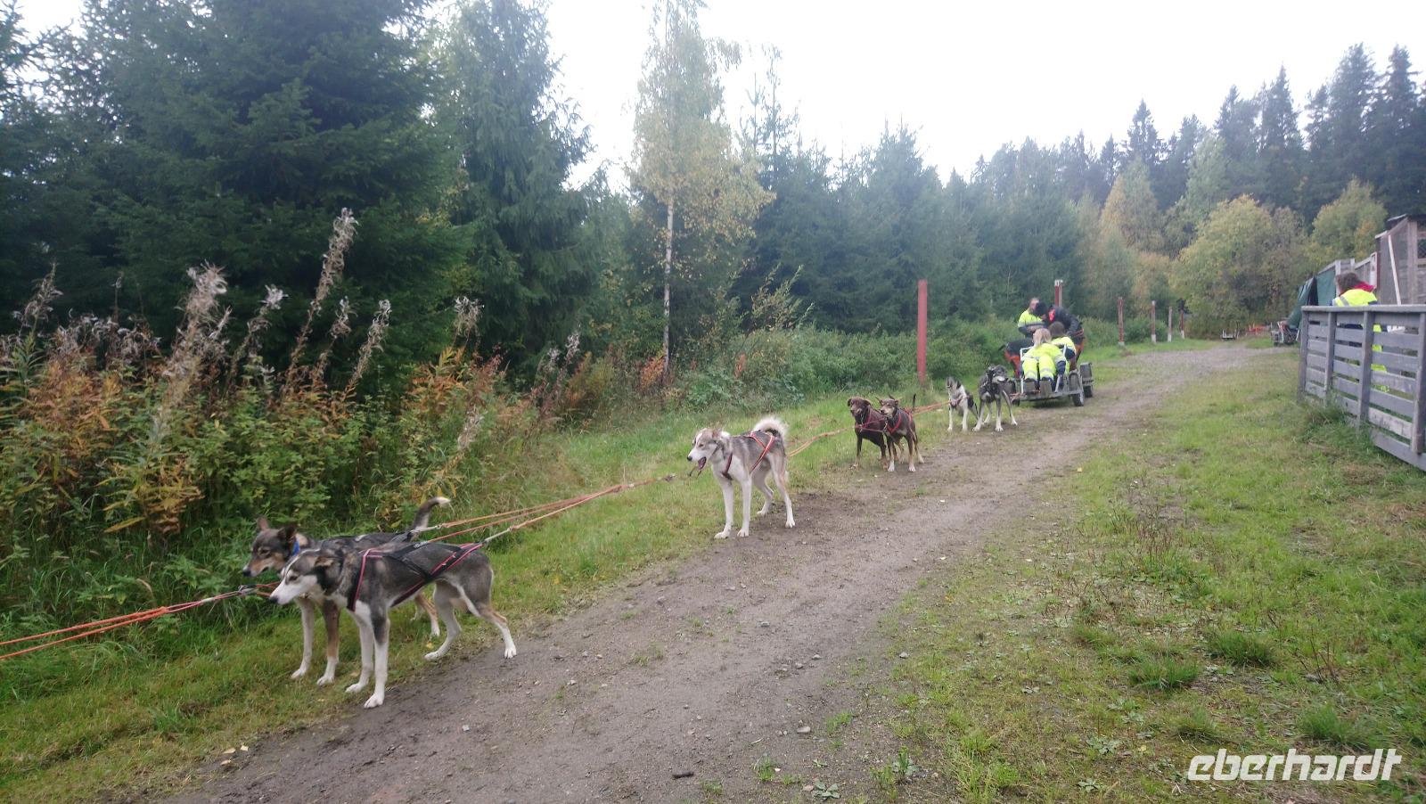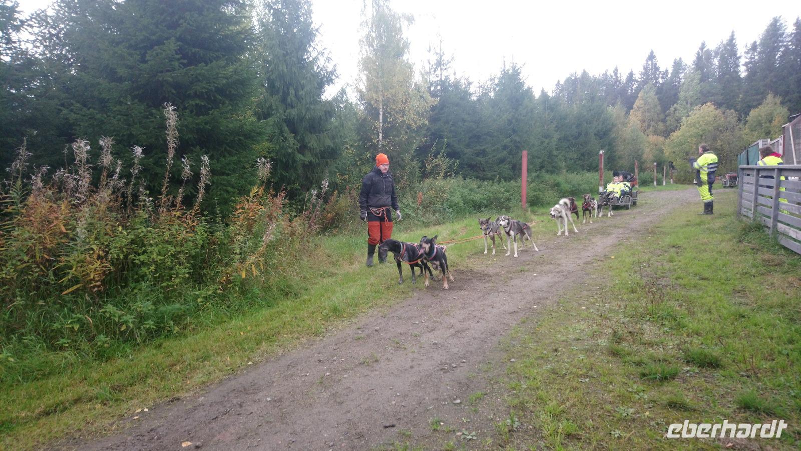 Nach dem ausgiebigen Frühstück wurde heute der Souveniershop der Hotelanlage in Vuokatti gestürmt. Vom Bären -T-Shirt bis zum Bärenfleisch gab es vielfältige Geschenke zu erwerben. Danach brachte uns Matti, unser freundlicher finnischer Chauffeur zur Huskyfarm. Einige Gäste nutzten die Möglichkeit Huskymercedes zu fahren. Danach besuchten wir die über 100 Huskys und erfuhren alles über die Zucht, die Besonderheiten dieser Hunderasse und lernten natürlich auch „finnische Champions" kennen. Da heute eine weitere Fahrt Richtung Lappland vor uns lag, sagten wir gegen Mittag zu den freundlichen Vierbeinern Good bye. Vorbei an Oulu reisten wir nach Kemi, einer kleinen Hafenstadt im Norden Finnlands. Das berühmte Snow Castle war noch im Aufbau aber einen Blick auf die „Glasvillen" am Bootnischen Meerbusen konnten wir trotz des Sturms erhaschen. Das Hotel in Kemi, in welchem einst der finnische Präsident verkehrte, wenn er zum Angeln nach Lappland reiste, empfing uns herzlich. Gern erinnern wir uns an das köstliche Menü, welches charmant serviert wurde.
