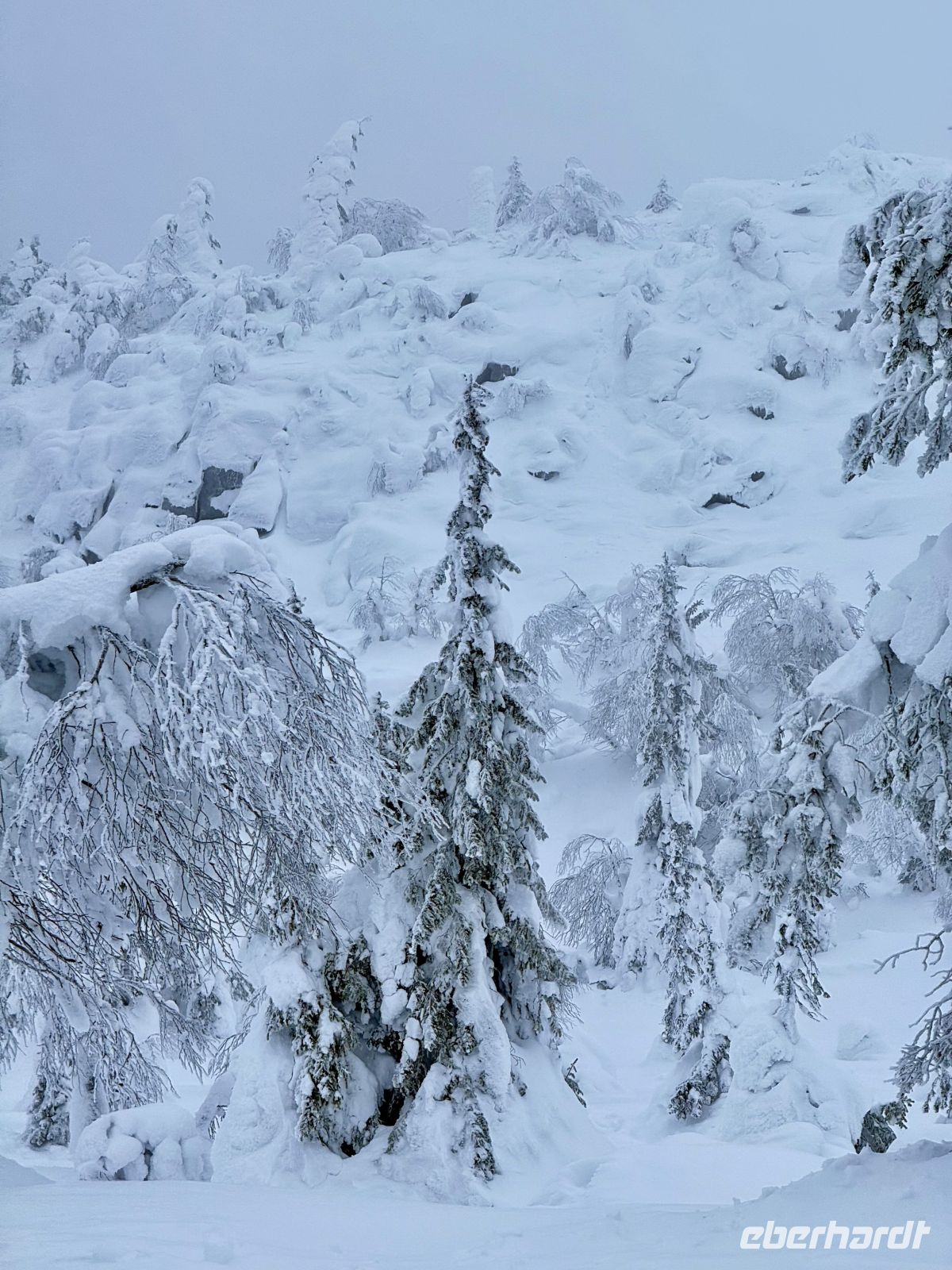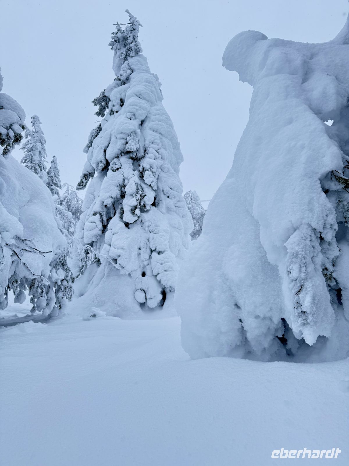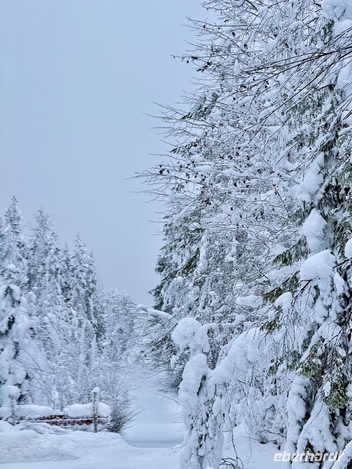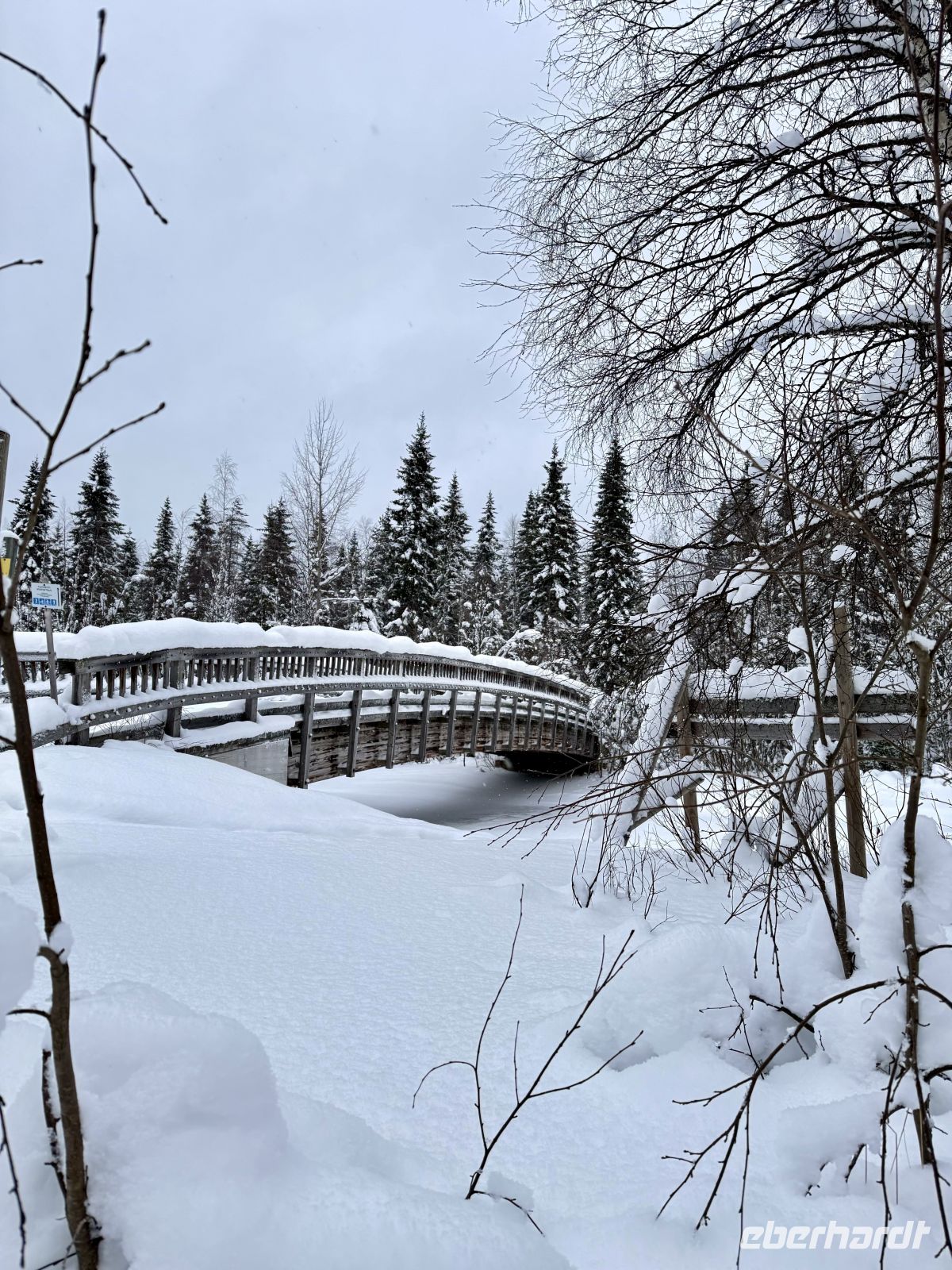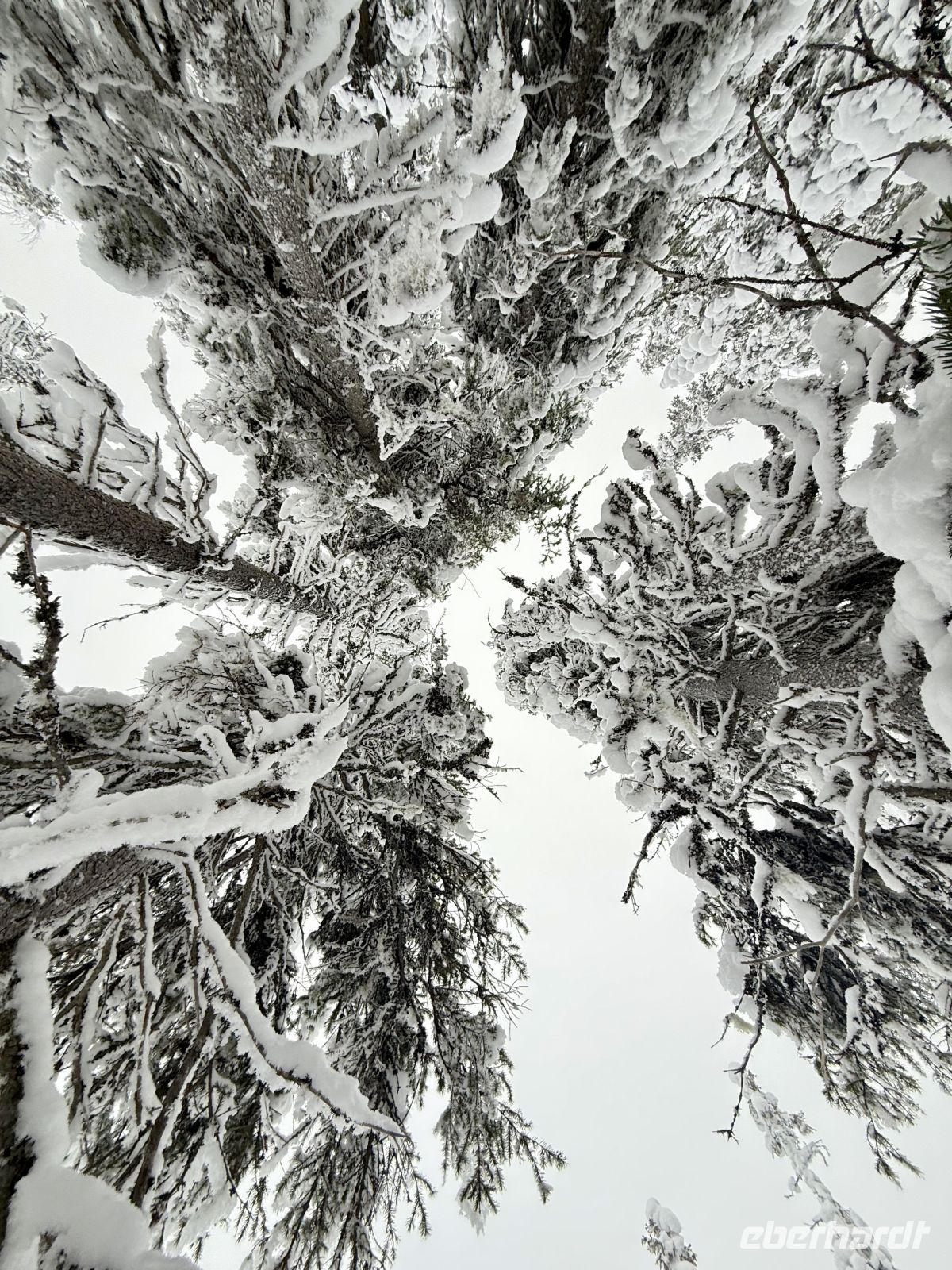 Mir schien es schon immer, dass eine Reise wie ein kurzes Leben innerhalb des ohnehin schon kurzen Lebens ist, das wir führen. Wo die Gegenwart nur ein Augenblick ist. Und das Überraschende an beiden „Leben“ ist ihre Fähigkeit, uns zu erstaunen. Wenn wir glauben, einen Gipfel der Euphorie erreicht zu haben, umgeben von wilder Natur, angenehmer Gesellschaft und Traumlandschaften, bricht ein neuer Tag an, der uns eine Lektion erteilen will, indem er die Schönheit des Vortages bei weitem übertrifft. Und genau so war unser Tag heute. Nachdem wir am Vortag die Hundeschlittenfahrt genossen hatten und dachten, das sei wohl das Schönste, was wir auf dieser Reise erleben würden, kam überraschend – zumindest für jene, die es nicht erwarteten – eine unvergleichliche Wanderung. Wenige Minuten genügten, um uns mit einer Panorama-Seilbahn auf den Berg zu bringen, eine Fahrt, die wir jede Minute genossen. Doch die größte Überraschung erwartete uns auf dem Gipfel: eine völlig andere Landschaft, buchstäblich wie aus einem Märchen. Die Arktis fühlte sich in diesem Moment nah an, denn vor unseren Augen lag ein Wald, der fast vollständig unter dem Schnee begraben war. Die Unwirtlichkeit und zugleich die Schönheit des Klimas spiegelten sich in einer Postkarte wider, die sich vor uns enthüllte. Voller Emotionen wagten wir uns in diesen magischen Wald, natürlich mit Schneeschuhen, damit wir nicht ein paar Meter tief im Schnee versinken würden, der weiß und geduldig alles mit seinem weichen Mantel bedeckte. Hier und da unglaubliche Ausblicke, „schlafende Riesen“, die wie Bäume unter einem ewigen Mantel wirken, in dieser neuen magischen Welt, die wir gerade erst entdeckt haben. Wir stahlen mit einem „Klick“ bereitwillig Bilder, immer in der Hoffnung, dass die Erinnerung so länger anhält oder dass dieses Bild bezeugen kann, was für einen gewöhnlichen Sterblichen sonst wie eine verrückte Beschreibung klingen mag. Die Stunden vergingen; die zweite Hälfte des Tages war ebenso schön, aber in verschiedene Richtungen verteilt: einige auf dem Fahrrad, andere zu Fuß, an dem einen oder anderen Punkt trafen wir uns wieder und entdeckten dieses kleine weiße Stück Erde, das uns so viel zu zeigen hatte.
