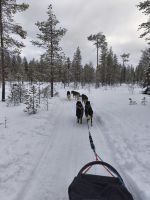 Weiter ging es durch die wunderschöne Landschaft durch Wälder, über zugefrorene Seen und entlang Tundra ähnlicher Landschaft. Aber auch dieses Abenteuer ging viel zu schnell vorbei, nach 5 Stunden und 30 km erreichten wir wieder die Huskyfarm. Anschließend besuchten wir noch die Anlage, lernten noch einiges über die Haltung und das Training der Siberian und Alaskan Huskys. Auch das jüngste, ein 4 Wochen alter Welpe wurde uns gezeigt. Bald darauf ging es wieder zurück zum Hotel - leider ohne Husky :(