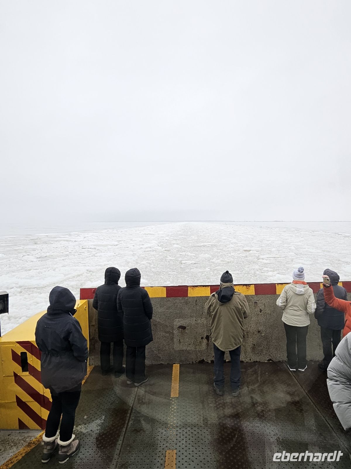 Dieser Tag stand ganz im Zeichen eines echten Abenteuers: Wir gingen an Bord des Eisbrechers Sampo, der sich seit 1961 durch das gefrorene Meer kämpft. Die pure Kraft des Schiffes, das sich unaufhaltsam durch das Eismeer frisst, war beeindruckend. Während der geführten Tour erkundeten wir die Brücke, die Maschinenräume und bekamen spannende Einblicke in die Technik des Eisbrechers. Der Höhepunkt war das Ice Floating – mit speziellen Thermoanzügen ließen wir uns im eiskalten Wasser treiben. Ein unglaubliches Gefühl, das jeder von uns mit Begeisterung genoss! Es ist schon ein Erlebnis im Wasser zu planschen während große Eisbrocken an die vorbeitreiben.