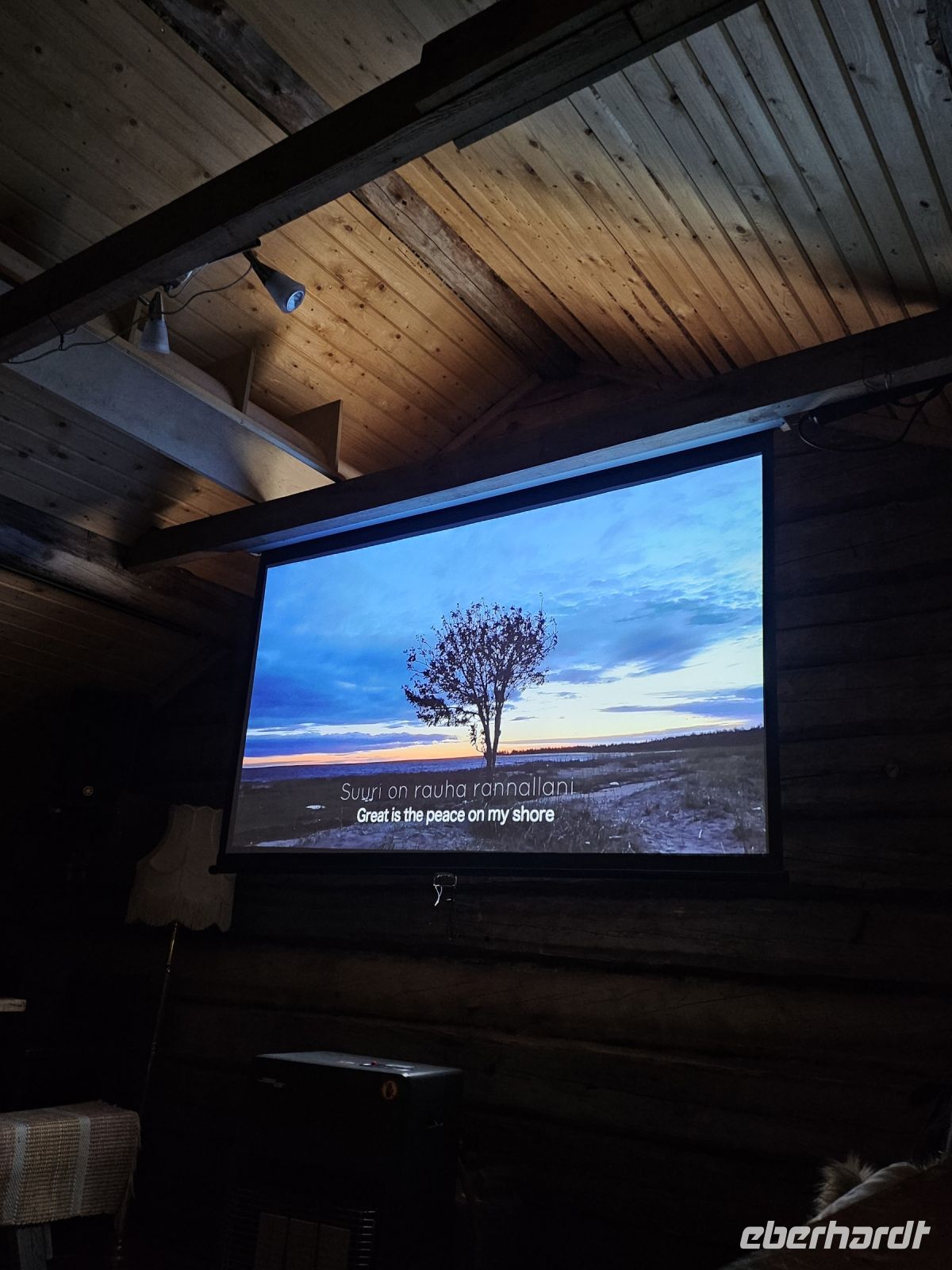 Am Abend war die Nordlicht-Jagd geplant und gemäß dem Motto der Finnen ließen wir "Sisu" walten - auch wenn das Wetter nicht mitspielte und es eigentlich eine aussichtslose Mission war, gaben wir den Kampfgeist nicht auf. Wir verbrachten also einen gemütlichen Abend in einer traditionellen Hütte bei Lagerfeuer und lernten viel über die Entstehung der Polarlichter, während die Reiseleitung Mariele sich reichlich Mühe gab die physikalischen Fachbegriffe sinnvoll zu übersetzen. Mit Elchschinken und heißen Getränken, wie Kakao und Hagebuttensuppe, beendeten wir den langen Tag.