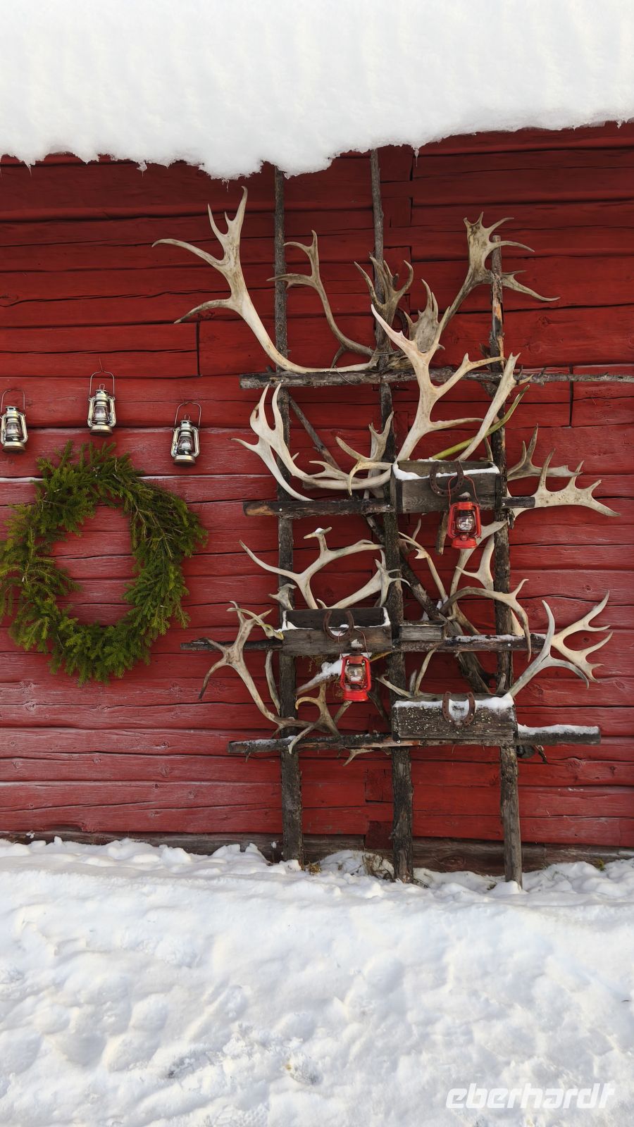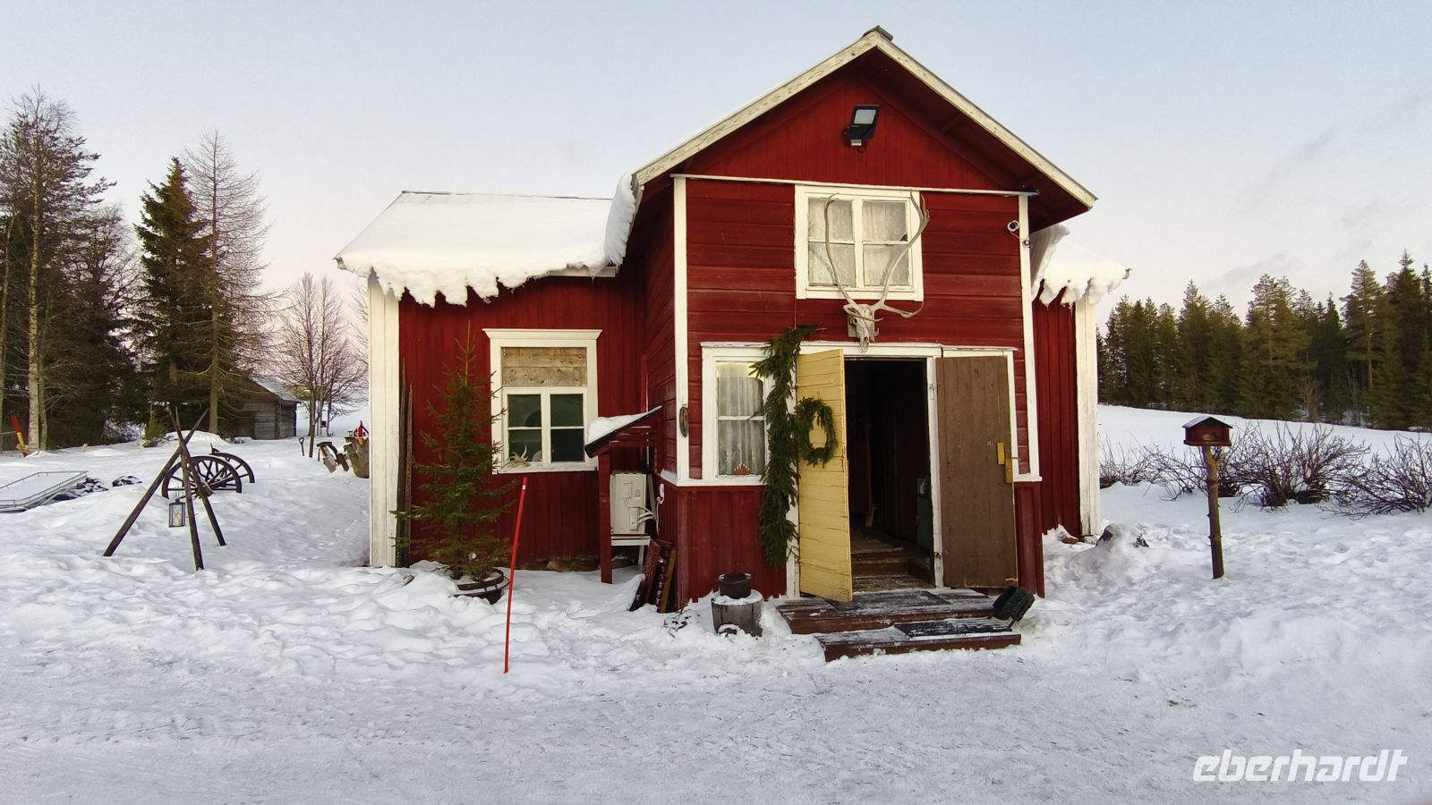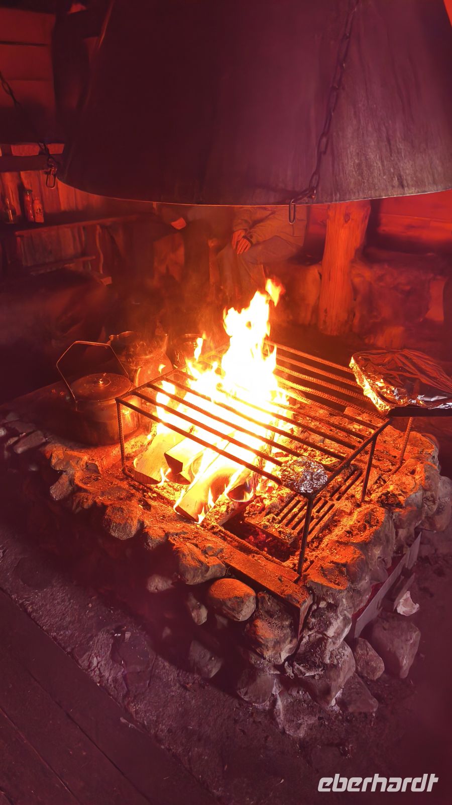 Nachdem wir uns schweren Herzens von den Tieren verabschiedet haben, wurden wir eingeladen in eine authentische Hütte mit einer Feuerstelle in der Mitte. Versorgt mit einer gegrillten Rentierwurst, heißem Glögi (traditionell hergestellt aus Beerensaft mit Zimt, Kardamom und Nelken gewürzt) und kurzweiligen Geschichten vom Leben auf der Farm. Zum Nachtisch gab es die besten Kekse, wie Niclas uns versicherte, da gebacken von der eigenen Oma. Recht hatte er. Sie schmeckten köstlich.